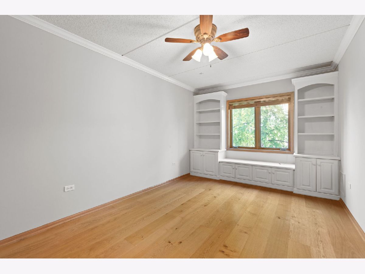 Rarely available "Waterford Place" 3 bedroom, 2 bath, 2 indoor parking spaces and 2 storage units in desirable downtown Wheaton. Newer county French kitchen with stainless steel appliances, under counter lighting. High end window treatments with remote control window shade for balcony door, wood blinds and planation shutters. Crown moldings and custom built-in book cases. Lots of closet space including two generous walk in closets in two of the three bedrooms. Primary suite features soaking whirlpool tub with separate walk in shower. In unit laundry room with monthly assessments including water, gas, heat, scavenger, exterior maintenance. The two parking spaces and storage units are next to the lobby door in the heated garage. Elevator building with extra wide ADA compliant doors within the condo. Enjoy the shopping and the many dinning options within downtown Wheaton just outside your door!