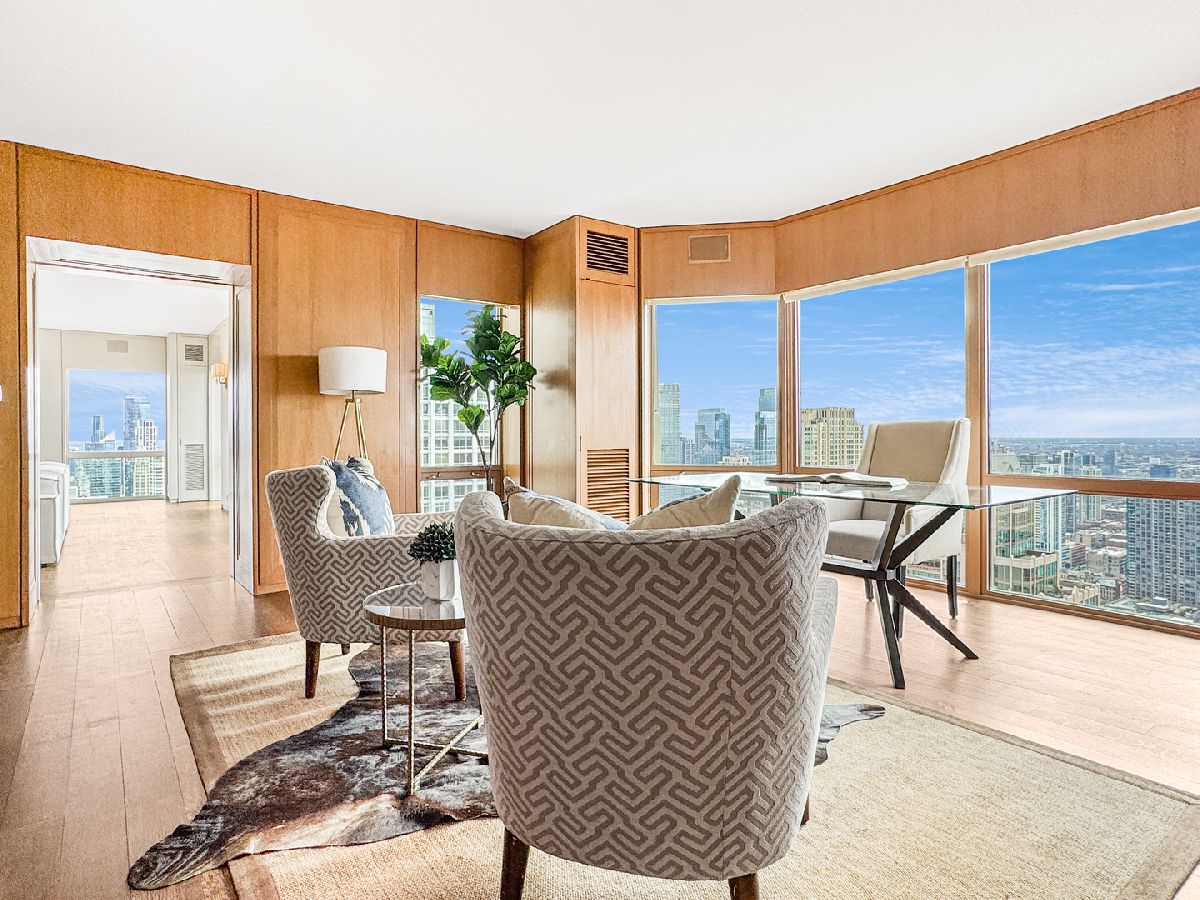 This stunning Marvin Herman-designed 5,500-square-foot, two-story penthouse offers the best of all worlds -- expansive living space that rivals a luxurious single-family home, sweeping lake and skyline views, and access to premier amenities in a top-tier condominium building. Offered for just over $450 per sqft, this home is also a TREMENDOUS VALUE! The custom finishes are truly exceptional, featuring two wood-burning fireplaces (a rarity in a modern high-rise), large-format book-matched marble slab floors and bath walls, wide-plank and herringbone-patterned white oak flooring, designer lighting, custom built-ins and millwork, and beautifully outfitted walk-in closets. The main level wraps three sides of the building, delivering spectacular views in every direction from floor-to-ceiling windows. Generously scaled living spaces include a grand entry foyer with a walk-in closet, formal living and dining rooms, a richly paneled library/office, a media room with bar and projection system, a top-tier kitchen/breakfast room, a butler's pantry, a full laundry room, and two elegant powder rooms. Upstairs, a private retreat awaits with two en suite bedrooms and a comfortable family room. The luxurious primary suite features a wood-burning fireplace, dual marble baths, two walk-in closets, and a bonus room perfect for a nursery, yoga, exercise, office, or dressing room. A third en suite bedroom is located on the main level, thoughtfully positioned apart from the main living spaces. Both levels are elevator accessible. ### The Huron at 100 East offers an exceptional array of amenities, including 24-hour door and maintenance staff, a 54-foot indoor lap pool, fitness center, sundeck with grills, community rooms, monthly and guest garage parking, on-site management, and dry cleaning services. Ideally located near Northwestern Hospital, Michigan Avenue, Millennium Park, and the Loop, this one-of-a-kind penthouse combines the space, comfort, and privacy of a single-family residence with the convenience and security of full-service condominium living.