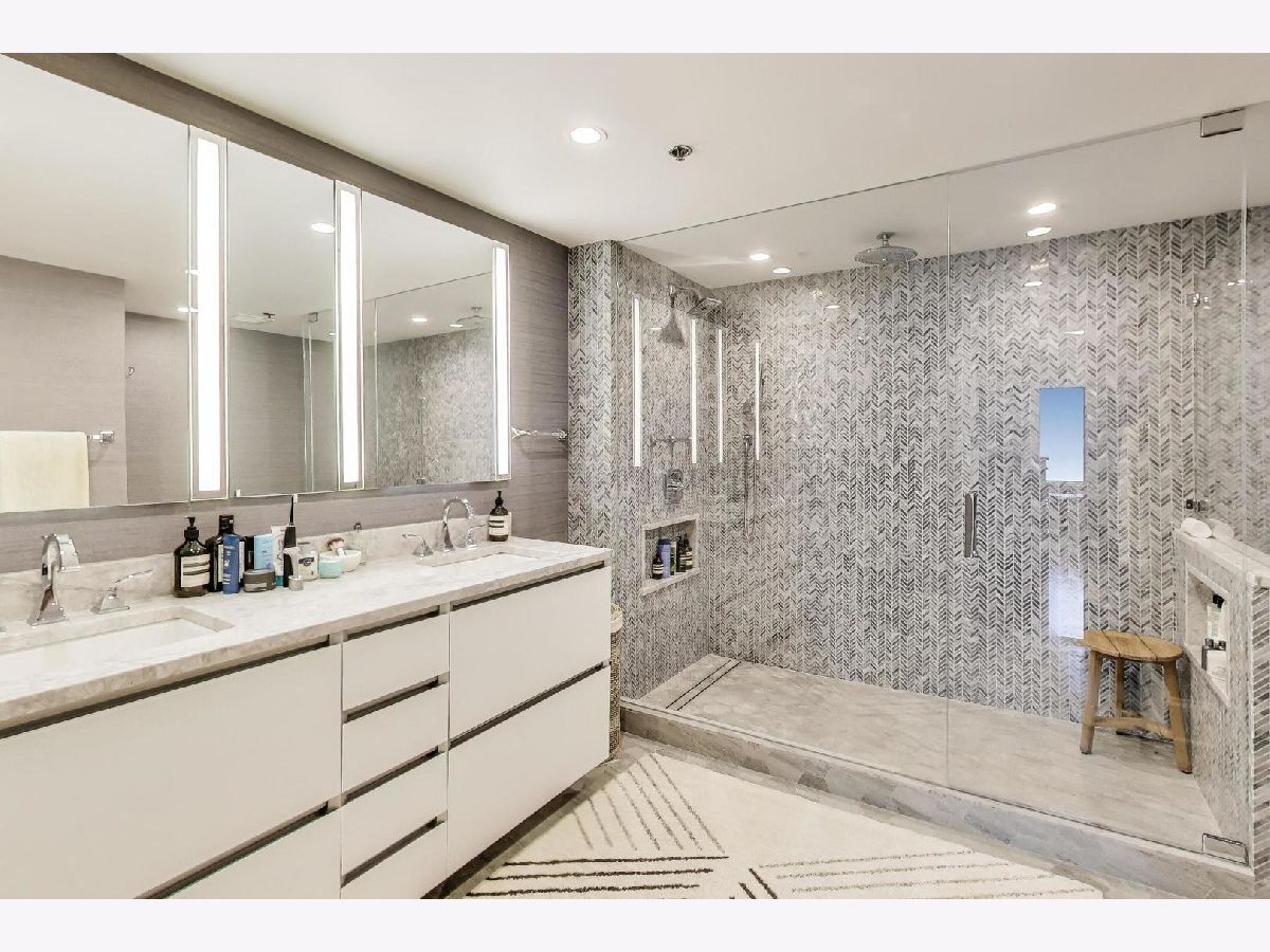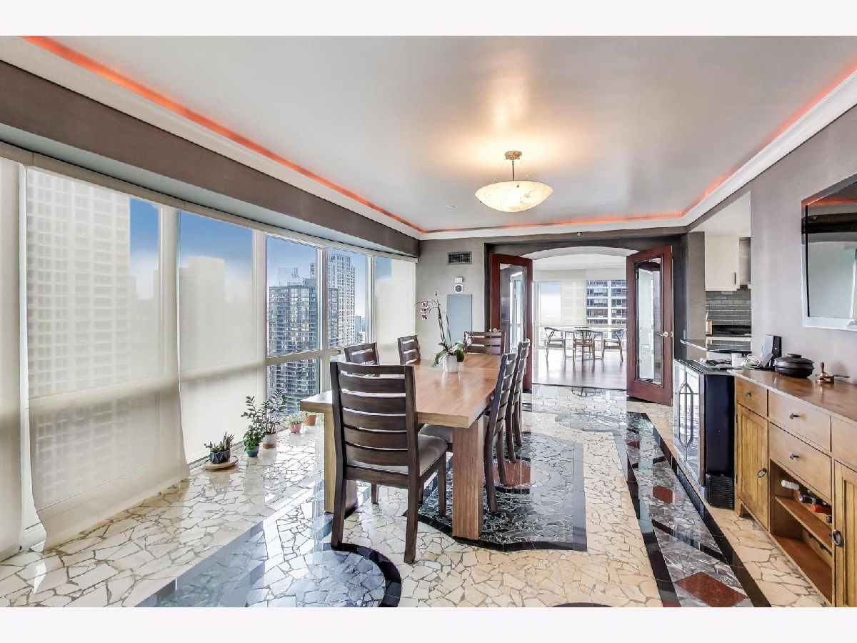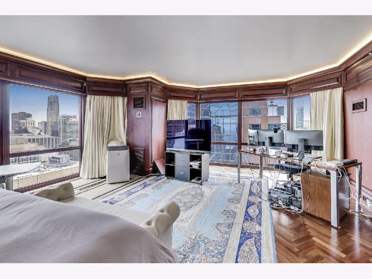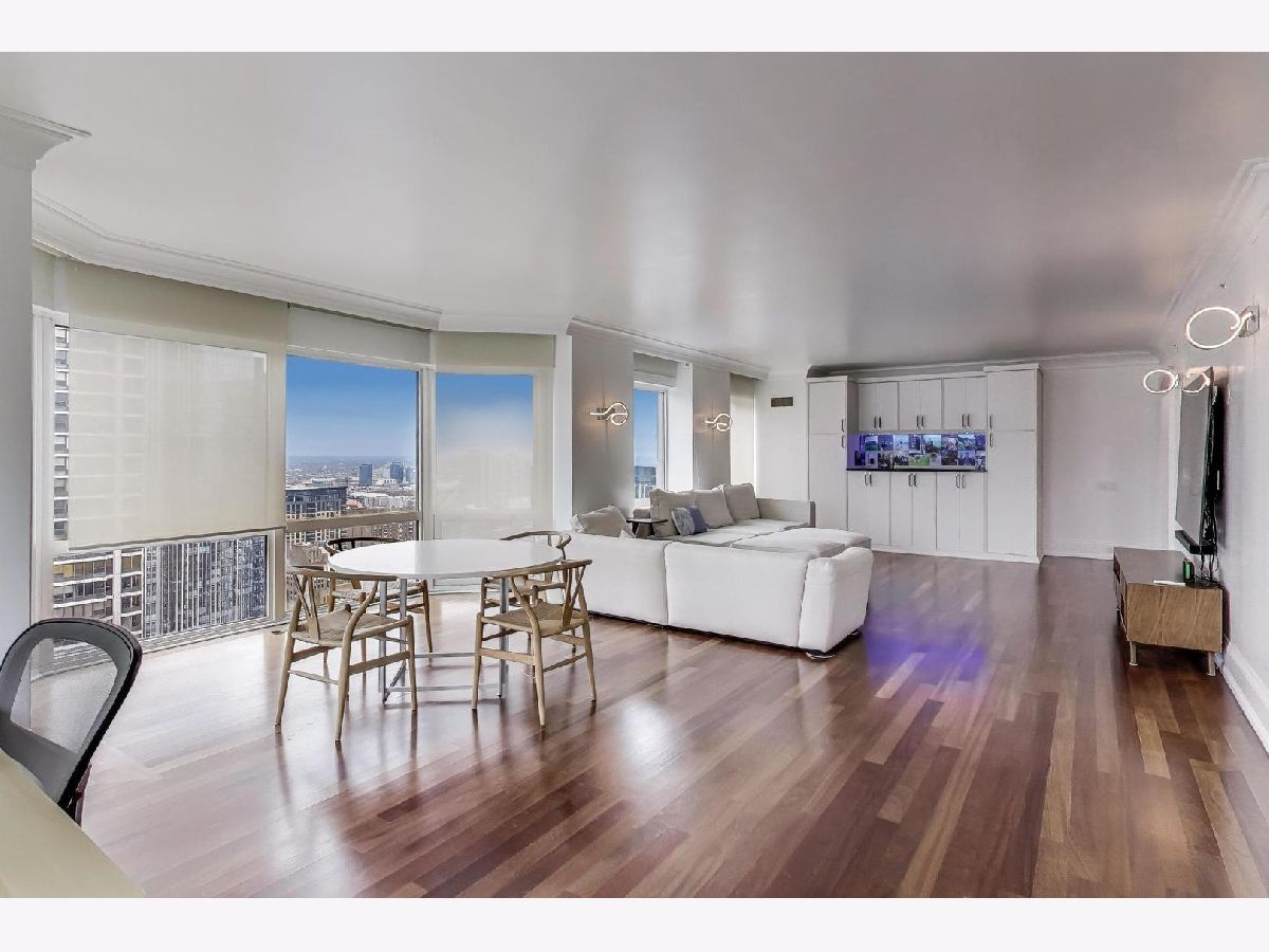 Sky-high River North 3 bedroom, 3 1/2 bath residence offering sweeping south, east, and west views of Lake Michigan and the iconic Chicago skyline. One of the largest floor plans! Each of the spacious bedrooms features its own ensuite bath -perfectly balancing comfort and privacy. The thoughtfully designed floor plan offers generous communal spaces alongside well-separated private retreats. Expansive living and dining areas are framed by floor-to-ceiling windows and showcase abundant natural light, automatic shades, hardwood floors, elegant Tuscan marble, newly repainted walls, and surround sound speakers-ideal for both entertaining and everyday living. Custom built-ins by California Closets add both style and smart storage. The open kitchen is both stylish and functional, featuring newer stainless-steel appliances, a designer backsplash, EuroCave wine refrigerator, and a full hood vented to the exterior. All bathroom have been fully renovated with timeless finishes. The spacious primary suite boasts a custom walk-in closet, while the versatile third bedroom with south and east exposures works beautifully as a guest room, home office, or flex space. This full-service building offers 24-hour door staff, an indoor lap pool, fitness center, sauna, sundeck, hospitality room, business center, private meeting rooms, and on-site dry cleaning. Fee parking is available, with convenient guest parking as well. Unbeatable location with Michigan Avenue just outside your door-walk to Lake Michigan, Oak Street Beach, Northwestern Hospital, world-class museums, premier shopping, restaurants, coffee shops, public transit, Whole Foods, Trader Joe's, and Eataly.
