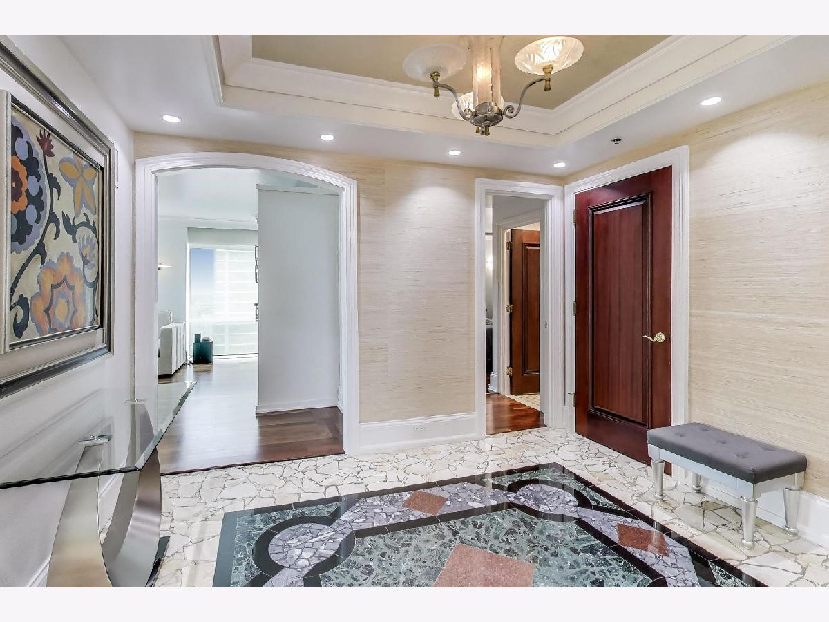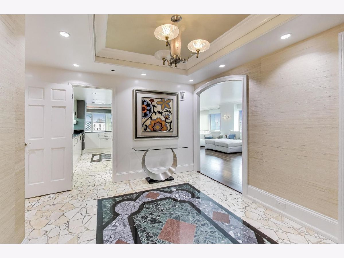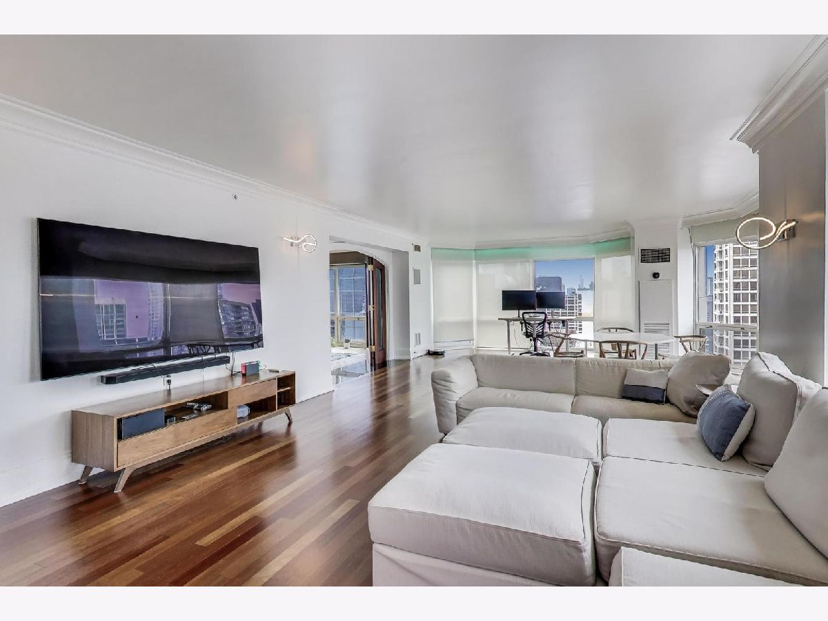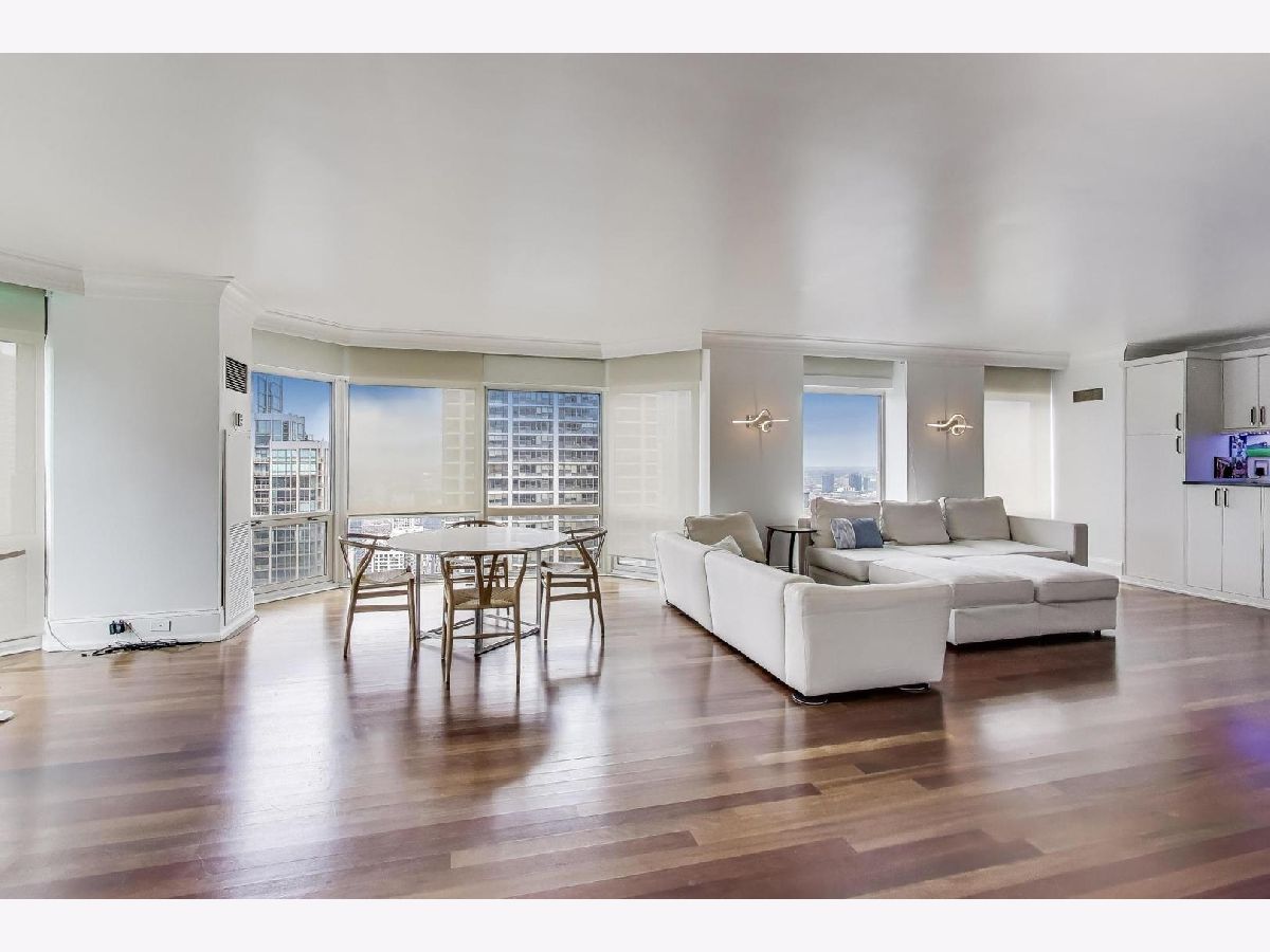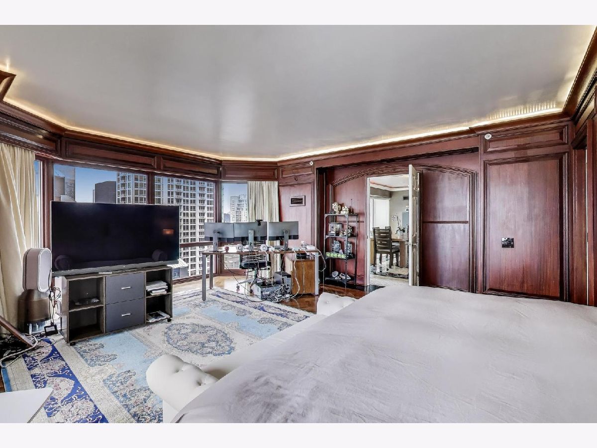 Sky-high River North 3 bedroom, 3 1/2 bath residence offering sweeping south, east, and west views of Lake Michigan and the iconic Chicago skyline. One of the largest floor plans! Each of the spacious bedrooms features its own ensuite bath -perfectly balancing comfort and privacy. The thoughtfully designed floor plan offers generous communal spaces alongside well-separated private retreats. Expansive living and dining areas are framed by floor-to-ceiling windows and showcase abundant natural light, automatic shades, hardwood floors, elegant Tuscan marble, newly repainted walls, and surround sound speakers-ideal for both entertaining and everyday living. Custom built-ins by California Closets add both style and smart storage. The open kitchen is both stylish and functional, featuring newer stainless-steel appliances, a designer backsplash, EuroCave wine refrigerator, and a full hood vented to the exterior. All bathroom have been fully renovated with timeless finishes. The spacious primary suite boasts a custom walk-in closet, while the versatile third bedroom with south and east exposures works beautifully as a guest room, home office, or flex space. This full-service building offers 24-hour door staff, an indoor lap pool, fitness center, sauna, sundeck, hospitality room, business center, private meeting rooms, and on-site dry cleaning. Fee parking is available, with convenient guest parking as well. Unbeatable location with Michigan Avenue just outside your door-walk to Lake Michigan, Oak Street Beach, Northwestern Hospital, world-class museums, premier shopping, restaurants, coffee shops, public transit, Whole Foods, Trader Joe's, and Eataly.