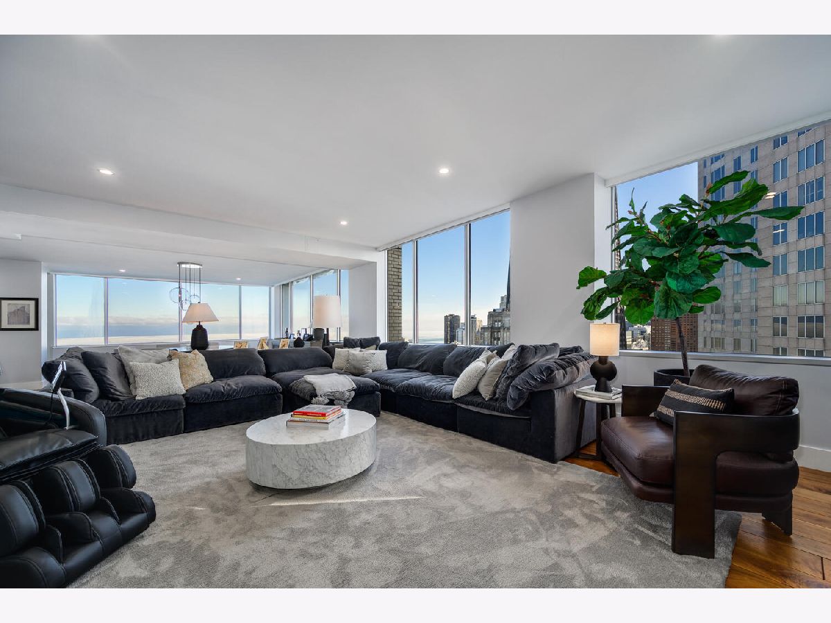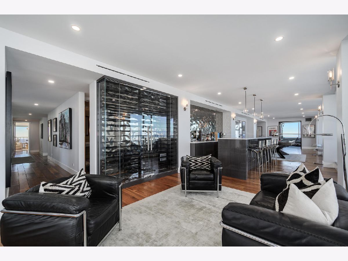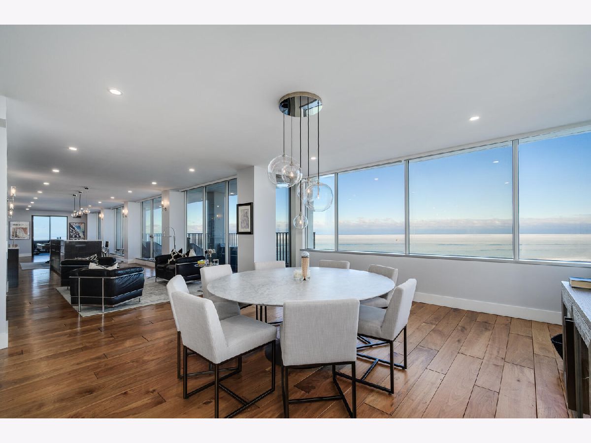Perched on the 47th floor at the iconic intersection of Lake Shore Drive and Oak Street, this full-floor luxury condominium for sale in Chicago's Gold Coast offers a rare combination of scale, privacy, and unobstructed views. Spanning approximately 6,600 square feet, the residence delivers refined, high-rise living in one of Chicago's most prestigious neighborhoods. This exceptional home features two expansive 50-foot private terraces with 360-degree panoramic views of Lake Michigan and the Chicago skyline, creating an extraordinary indoor-outdoor living experience seldom found in Gold Coast condominiums. The residence includes five bedrooms, four full bathrooms, and two powder rooms, all within a fully renovated smart home outfitted with luxury finishes throughout. Design highlights include hand-scraped walnut hardwood floors, curated designer lighting, and meticulous craftsmanship in every room. The oversized primary suite functions as a private sanctuary, complete with a dramatic walk-in closet and dressing room, a dedicated office, and a spa-inspired white marble bathroom designed for comfort and retreat. The Bulthaup chef's kitchen is both sculptural and functional, featuring gorgeous countertops, a full Sub-Zero wall of refrigerators and freezers, premium integrated appliances, and custom cabinetry. The layout is ideal for everyday living as well as large-scale entertaining. Located within a full-amenity luxury building, residents enjoy an unbeatable Gold Coast lifestyle just steps from Oak Street Beach, the lakefront, world-class shopping, and renowned dining. This is a rare opportunity to own a full-floor luxury condo in Chicago's Gold Coast, offering iconic views, premier amenities, and an irreplaceable Lake Shore Drive address.