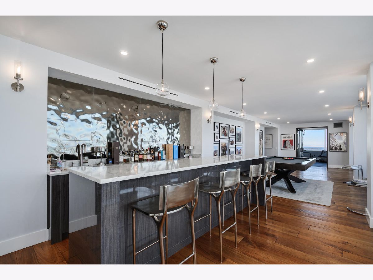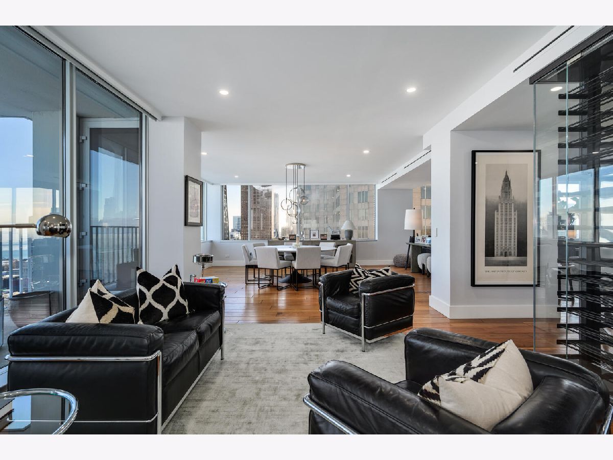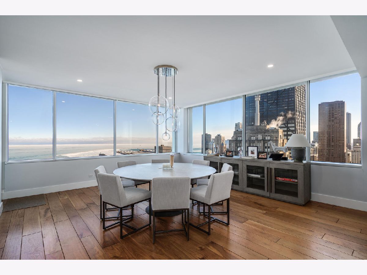 Perched on the 47th floor at the iconic intersection of Lake Shore Drive and Oak Street, this full-floor luxury condominium for sale in Chicago's Gold Coast offers a rare combination of scale, privacy, and unobstructed views. Spanning approximately 6,600 square feet, the residence delivers refined, high-rise living in one of Chicago's most prestigious neighborhoods. This exceptional home features two expansive 50-foot private terraces with 360-degree panoramic views of Lake Michigan and the Chicago skyline, creating an extraordinary indoor-outdoor living experience seldom found in Gold Coast condominiums. The residence includes five bedrooms, four full bathrooms, and two powder rooms, all within a fully renovated smart home outfitted with luxury finishes throughout. Design highlights include hand-scraped walnut hardwood floors, curated designer lighting, and meticulous craftsmanship in every room. The oversized primary suite functions as a private sanctuary, complete with a dramatic walk-in closet and dressing room, a dedicated office, and a spa-inspired white marble bathroom designed for comfort and retreat. The Bulthaup chef's kitchen is both sculptural and functional, featuring gorgeous countertops, a full Sub-Zero wall of refrigerators and freezers, premium integrated appliances, and custom cabinetry. The layout is ideal for everyday living as well as large-scale entertaining. Located within a full-amenity luxury building, residents enjoy an unbeatable Gold Coast lifestyle just steps from Oak Street Beach, the lakefront, world-class shopping, and renowned dining. This is a rare opportunity to own a full-floor luxury condo in Chicago's Gold Coast, offering iconic views, premier amenities, and an irreplaceable Lake Shore Drive address.