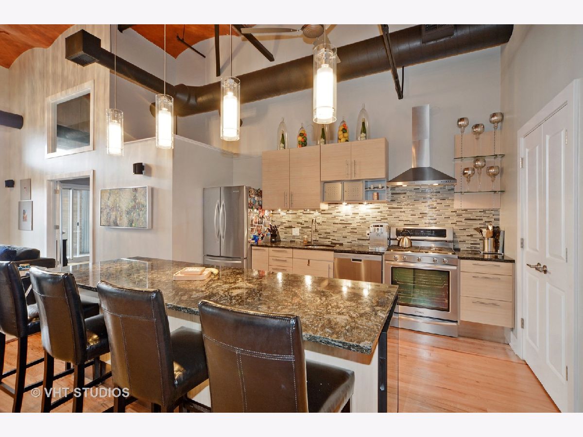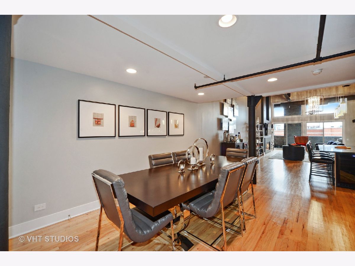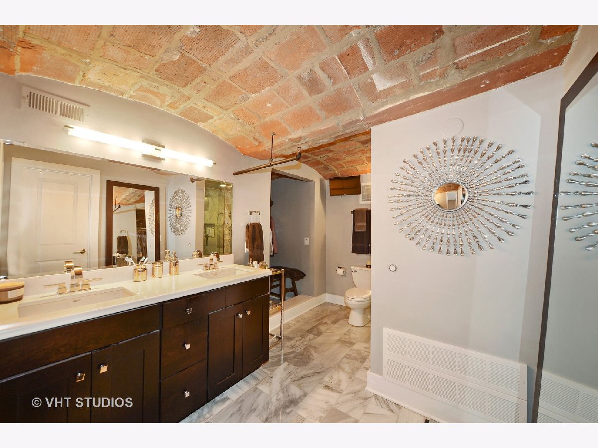 One of a kind, Sky penthouse with fully intact and restored exposed terra cotta tiled ceiling throughout in this 1910 originally built former Nabisco baking plant. Exposed 20' ceiling height, incredible open living, dining and kitchen space with gracious foyer, all real oak hardwood ("tongue and groove") floors through this Residence. Exposed brick, brick and concrete 27' wide terrace which spans the width of the unit accessible from the family room and second bedroom suite. Exposed steel girder and support columns. Central kitchen with large island, 1.25" rare, straight edge granite counters, Built-in cabinetry Panasonic microwave, Kitchen Aid appliance package including French door fridge, dishwasher, 5-burner range and culinary hood. Built-in pantry. Wide stainless steel baseboard around custom contemporary cabinetry. Separate dining, living and family room areas. Gas ventless fireplace. First floor featuring two fully enclosed bedrooms, second with ensuite bathroom with mitered straight edge myriad grey granite stone, rectangular, ivory undercount sinks, wall hung mirrors, contemporary lighting, and wall plumbing fixtures. Dressed in stone, shower and soaking tub with air jets combination. Built-in surround sound speakers. Second first floor full bathroom room with adjacent linen closet, also functions as convenient powder room for guests, dressed in Italian porcelain, elegantly designed wallpaper, frameless glass, rain shower, stand alone furniture piece vanity. Sumptuous primary suite on second level with terra cotta tile ceilings, all wood riser stairs, enormous floor space easily accommodates a California King, two large nightstands, large bureau, highboy and sideboard for additional folded clothing storage. Amazing bathroom with built-out walk in closet, additional walk-in storage for overflow and toiletries and supplies. Rectangular cut marble flooring, dual vanity with mitered edge stone counter, rectangular, ivory under mount sinks, heated floors, shower with bench, steam, rain shower, floor to ceiling stone, hexagon stone shower basin. Deeded, heated parking within the same building, PD-52, available for $25,000. 1000 West is in the heart of the West Loop and steps to all of its splendor of restaurants, retail, shopping, grocery, nightlife, etc. Residence 517 will not disappoint.