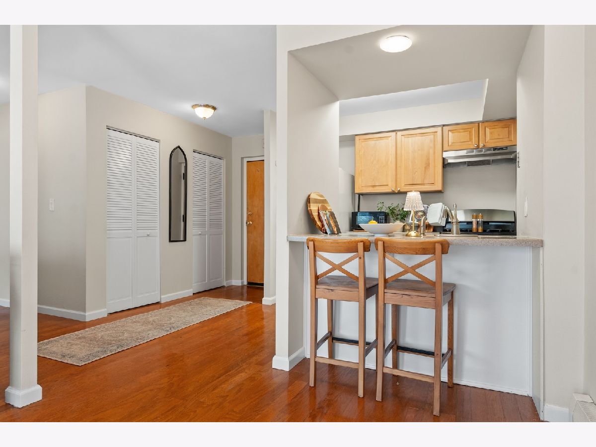 This bright, top-floor south-facing condo is ideally located in prime North Naperville. Filled with natural light from its warm southern exposure, this well-maintained unit offers comfortable living in one of the area's most convenient neighborhoods. Wood laminate flooring runs throughout, and the spacious bedroom features a full wall of closets, providing excellent storage. Two window A/C units, one in the living area and one in the bedroom, ensure efficient cooling. The building's affordable monthly assessment includes heat, water, cooking gas, a storage locker, a bike room, and access to outstanding community amenities, including an in-ground pool, tennis courts, and beautifully maintained grounds! Residents enjoy being just minutes from vibrant downtown Naperville, with its endless shopping, dining, Metra access, and the scenic Riverwalk. Mill Street Park, featuring a playground, baseball diamond, and basketball court, is only a few blocks away, adding even more appeal to this fantastic location! A wonderful opportunity to enjoy low-maintenance living in a highly desirable neighborhood. NEW - Stove (2025) Dishwasher (2025)
