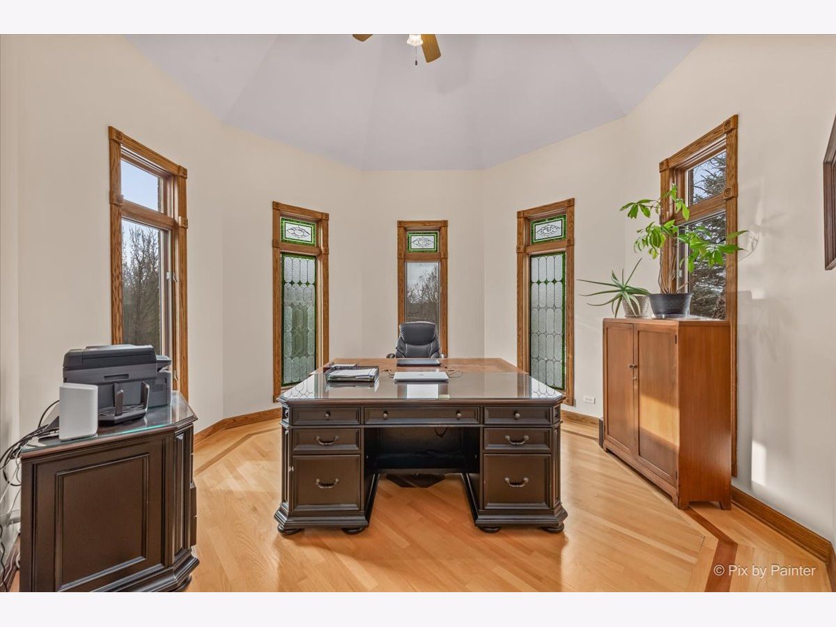 Privately positioned in prestigious North Haegers Bend, this custom estate offers refined interiors designed for luxury living and entertaining. Highlights include a chef's kitchen with Sub-Zero and Viking appliances, a primary suite with wood-burning fireplace, custom stained glass throughout, hardwood floors, and thoughtfully curated living spaces. Professionally designed and manicured grounds feature a pool, Jacuzzi, outdoor kitchen, fire-pit, cabana, pond, and mature landscaping, just minutes from Fox River access and top-rated schools.