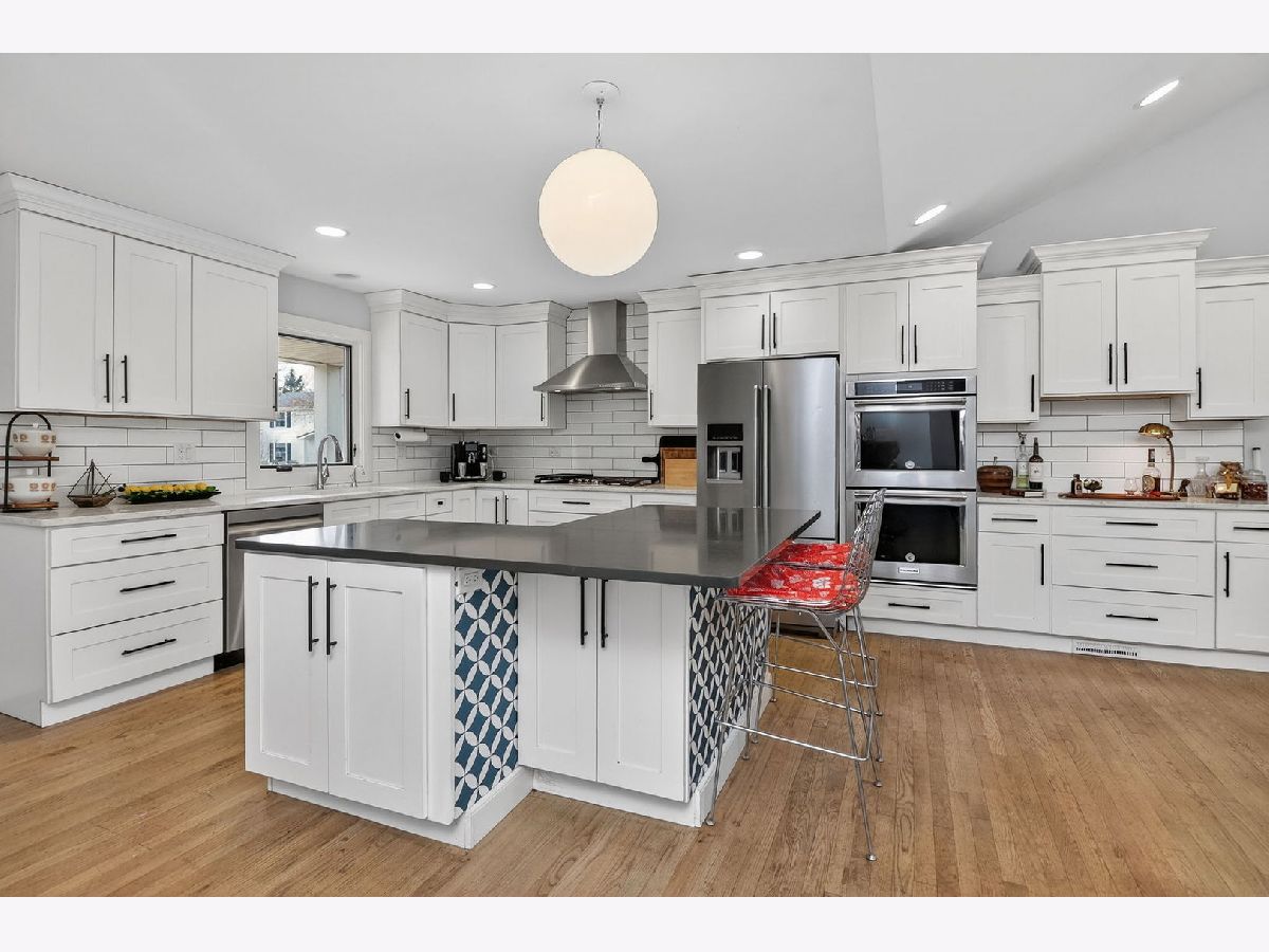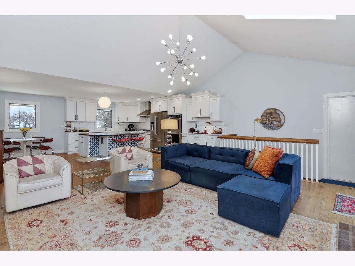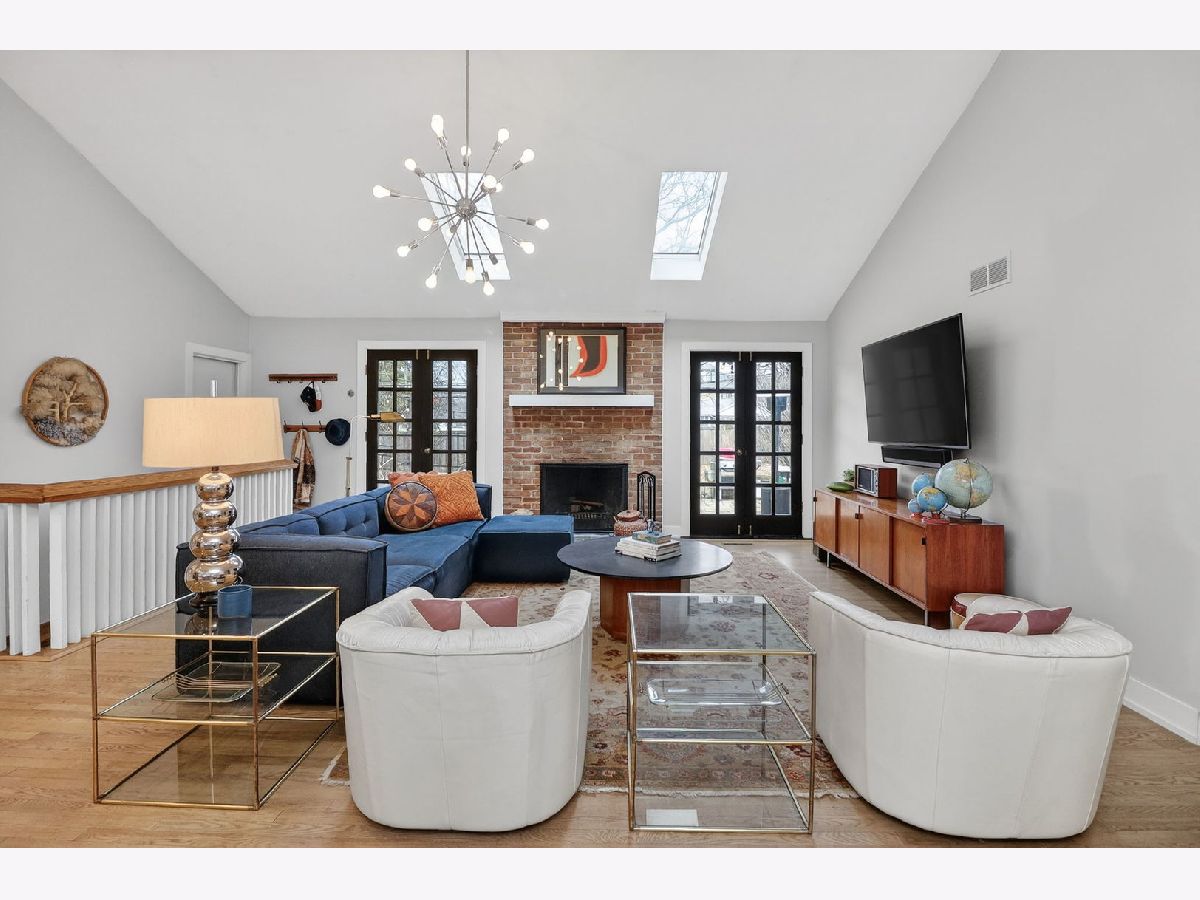 Completely reimagined in 2019 with a full renovation and 2nd story addition, this exceptional Ridgewood home is ideally situated on a spacious lot within a welcoming cul-de-sac. The open floor plan centers around an updated kitchen featuring a double oven, center island, and abundant counter and cabinet space. The family room showcases two skylights in the vaulted ceiling, a brick fireplace, and custom French doors leading to the expansive backyard and paver patio. The main level includes a spacious bedroom and office (could also be a craft room), a full bath, and a powder room - ideal for ranch-style living. Upstairs, you'll find 3 additional bedrooms and 2 full baths, including a private en suite for the 2nd primary bedroom. The partially finished basement adds even more living space with luxury vinyl plank flooring, a large dry bar, second brick fireplace, expansive recreation area, dedicated workout room (also ideal as an office or guest room), plus storage and laundry/utility areas. Nearly everything is new or newer since the renovation in 2019 including big ticket items: roof, windows, dual zoned HVAC, 200-amp electrical panel, and kitchen appliances, with dishwasher replaced in 2024 and HWH in 2022. Original solid hardwood floors and custom French doors add warmth and character. Additional features: Hardie Board and Board & Batten siding and a beautifully designed paver brick front walk and large back patio perfect for grilling and entertaining. Short distance to Ridgewood Park for community events, playground and baseball field. Highlands elementary and middle school/Lyons Township HS districts.