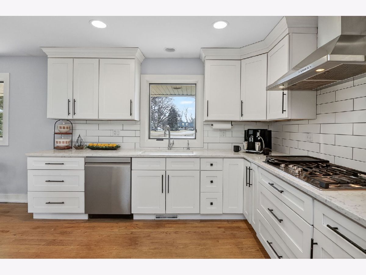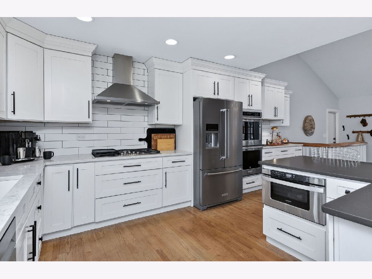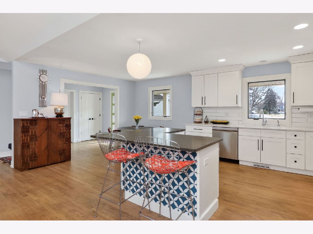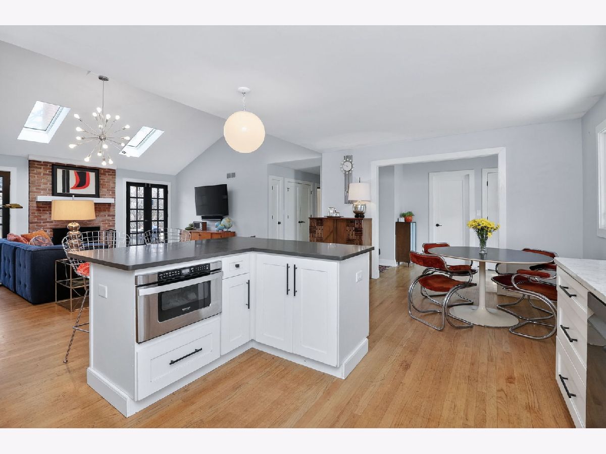 Completely reimagined in 2019 with a full renovation and 2nd story addition, this exceptional Ridgewood home is ideally situated on a spacious lot within a welcoming cul-de-sac. The open floor plan centers around an updated kitchen featuring a double oven, center island, and abundant counter and cabinet space. The family room showcases two skylights in the vaulted ceiling, a brick fireplace, and custom French doors leading to the expansive backyard and paver patio. The main level includes a spacious bedroom and office (could also be a craft room), a full bath, and a powder room - ideal for ranch-style living. Upstairs, you'll find 3 additional bedrooms and 2 full baths, including a private en suite for the 2nd primary bedroom. The partially finished basement adds even more living space with luxury vinyl plank flooring, a large dry bar, second brick fireplace, expansive recreation area, dedicated workout room (also ideal as an office or guest room), plus storage and laundry/utility areas. Nearly everything is new or newer since the renovation in 2019 including big ticket items: roof, windows, dual zoned HVAC, 200-amp electrical panel, and kitchen appliances, with dishwasher replaced in 2024 and HWH in 2022. Original solid hardwood floors and custom French doors add warmth and character. Additional features: Hardie Board and Board & Batten siding and a beautifully designed paver brick front walk and large back patio perfect for grilling and entertaining. Short distance to Ridgewood Park for community events, playground and baseball field. Highlands elementary and middle school/Lyons Township HS districts.
