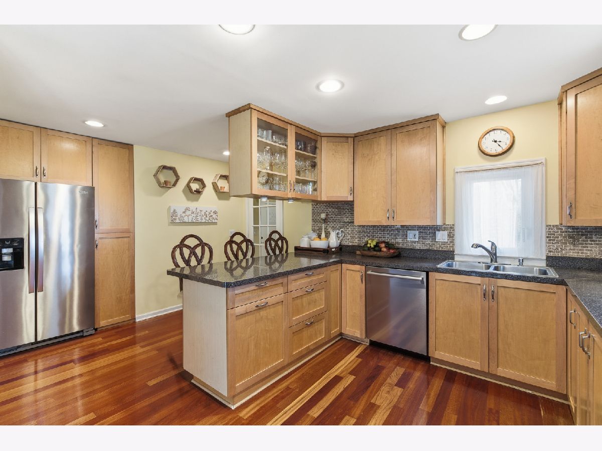 A true ranch with NO stairs. Sprawling brick and vinyl sided ranch nestled on a 79.8 x 133.5 lot on a quiet, serene, dead end street. Totally rehabbed over the last 10 years with a thoughtfully designed layout and attention to detail. The perfect blend of modern comfort and timeless charm. Cherry wood flooring throughout. 3 bedrooms 2.5 baths. Open concept floor plan that is bright and inviting for everyday living and entertaining. The kitchen flows into the dining room. It has plenty of wood shaker style cabinets with under cabinet lighting, double bin stainless steel sink, breakfast bar, stone backsplash and all of the appliances included. Samsung 5 burner gas stove, Whirlpool side by side stainless steel refrigerator with outside water/ice dispenser, dishwasher, Magic Chef microwave, and LG washer and dryer. Windows, doors, and insulation replaced 10 to 12 years ago. Furnace and central air 7 to 8 years old. Master bedroom has his and hers closets. Master bath offers a walk in shower with stone tile and cutouts for shampoo and soap. Double sinks and ceramic floor. Sliding glass doors from the living room to the wood deck....a seamless extension of entertaining space. The yard provides lots of privacy and separate areas to entertain, enjoy the firepit, or do your gardening. Lots of colorful perennials to enjoy. Shed for extra storage. 2.5 car attached garage with an asphalt side drive and cement apron provides ample parking and ease of access. Move-in ready. Easy access to I-294, I-190 and I-90 expressways to go downtown or the airport. Close to shopping, public transportation, and and the Metra train. 10 to 15 minutes to Allstate Arena, Rosemont restaurants and activities, Fashion Outlets of Chicago and Rivers Casino. This home is a must see!
