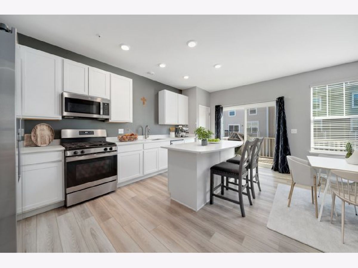 STUNNING NEWLY BUILT HOME WITH BEAUTIFUL FRONT YARD VIEWS! This beautiful Park Pointe tri-level townhome boasts a premium lot overlooking beautifully landscaped open space which may one day be converted into a park. As you enter this home note the airy 2-story foyer, modern staircase, and open concept main level. Entertain with ease in the sun-filled living room, dining area, and stylish eat-in-kitchen boasting quartz countertops, stainless steel appliances, a large center island, & white cabinetry. Sliding glass doors from the kitchen open to the private deck; the perfect place to enjoy summer grilling. The primary suite is a retreat with its spacious walk-in closet, private bath with dual vanities, and tranquil views of the landscaped grounds. Two additional bedrooms and a full bath complete the second floor, offering comfort and convenience for family or guests. The English basement provides bonus the ideal space for your home office, gym, or rec room. As the second owner of this property you will enjoy thoughtful upgrades including bonus recessed lighting, freshly painted interior, a whole-home water system, etc. Park Pointe offers not only modern living but also unmatched access to recreation and convenience. The community offers waterfront trails, nearby park views, easy access to Metra, and is across the street from Dunkin Doughnuts ~ the perfect stop for your morning coffee. Quick commute to downtown South Elgin's riverfront trails & Downtown Bartlett restaurants. Just a short distance away is Koehler Fields, a recreational complex with ball fields, football and soccer fields. Enjoy plenty of nearby options for shopping, dining, and entertainment all just minuets from home! Need a lower interest rate or closing cost assistance? Ask the listing agent about available programs.