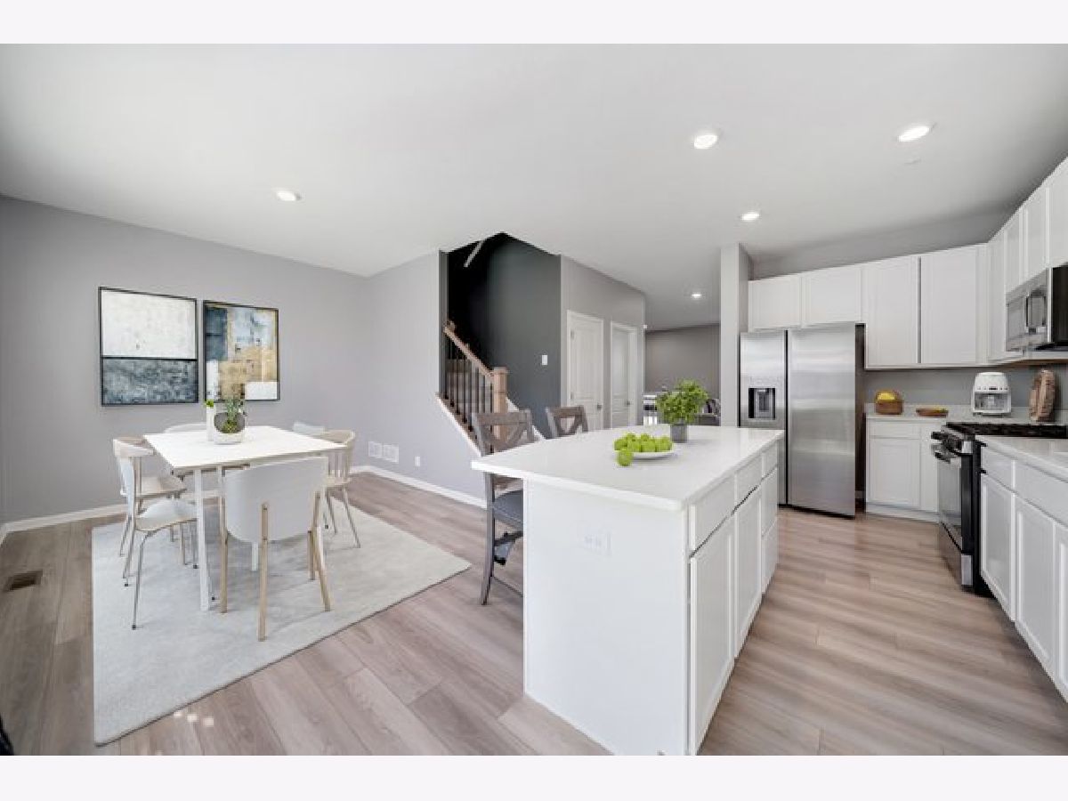 STUNNING NEWLY BUILT HOME WITH BEAUTIFUL FRONT YARD VIEWS! This beautiful Park Pointe tri-level townhome boasts a premium lot overlooking beautifully landscaped open space which may one day be converted into a park. As you enter this home note the airy 2-story foyer, modern staircase, and open concept main level. Entertain with ease in the sun-filled living room, dining area, and stylish eat-in-kitchen boasting quartz countertops, stainless steel appliances, a large center island, & white cabinetry. Sliding glass doors from the kitchen open to the private deck; the perfect place to enjoy summer grilling. The primary suite is a retreat with its spacious walk-in closet, private bath with dual vanities, and tranquil views of the landscaped grounds. Two additional bedrooms and a full bath complete the second floor, offering comfort and convenience for family or guests. The English basement provides bonus the ideal space for your home office, gym, or rec room. As the second owner of this property you will enjoy thoughtful upgrades including bonus recessed lighting, freshly painted interior, a whole-home water system, etc. Park Pointe offers not only modern living but also unmatched access to recreation and convenience. The community offers waterfront trails, nearby park views, easy access to Metra, and is across the street from Dunkin Doughnuts ~ the perfect stop for your morning coffee. Quick commute to downtown South Elgin's riverfront trails & Downtown Bartlett restaurants. Just a short distance away is Koehler Fields, a recreational complex with ball fields, football and soccer fields. Enjoy plenty of nearby options for shopping, dining, and entertainment all just minuets from home! Need a lower interest rate or closing cost assistance? Ask the listing agent about available programs.