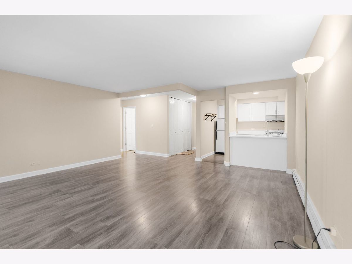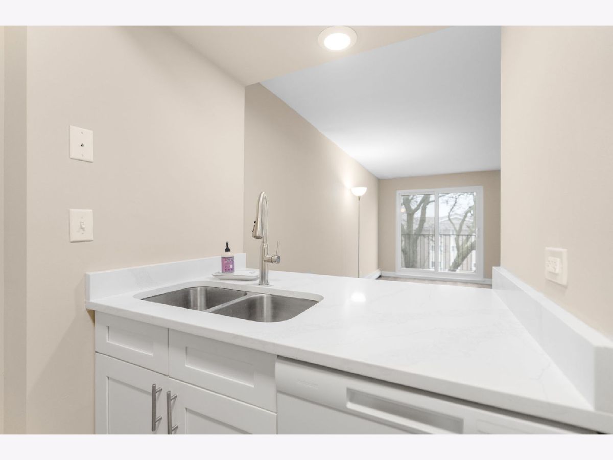Wonderful one bedroom, one bath third floor unit in desirable Mill Crossing community. Southern exposure keeps the unit bright and sunny! Generously sized living room/dining room combination features luxury vinyl flooring and new slider to balcony. Remodeled kitchen appointed with white cabinetry and quartz countertops. Bedroom has wall of closets for ample storage. Updated bath with white vanity and tile shower completes the unit. Community amenities include pool and tennis courts. Building features 1st floor laundry room, locker for additional storage, easy parking and elevator with ramp access. HOA includes common insurance, water, heat, gas, parking, lawn maintenance/snow removal and garbage. All this with Fantastic Northside spot near downtown, Metra train, minutes to expressway, shopping, restaurants, recreational activities and more! This condo is a perfect balance of space, efficiency and locale for the peaceful lifestyle you deserve!