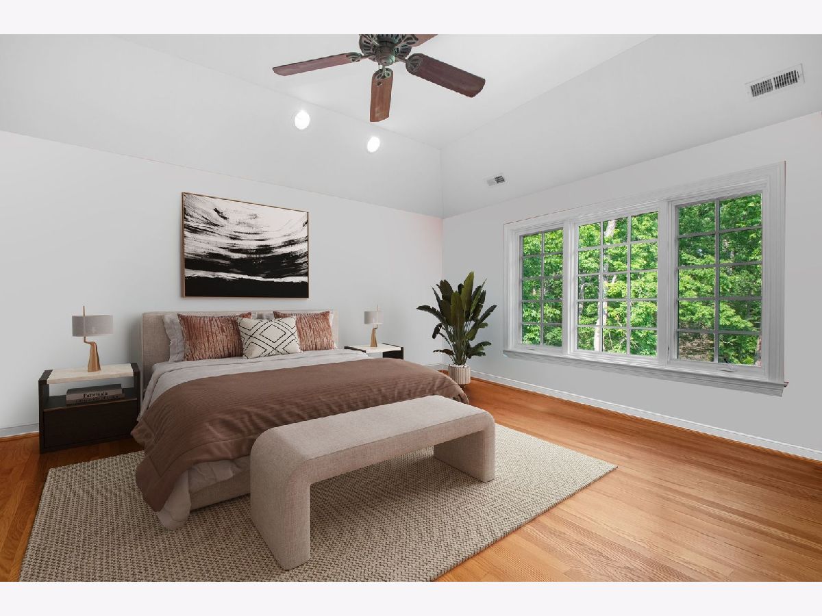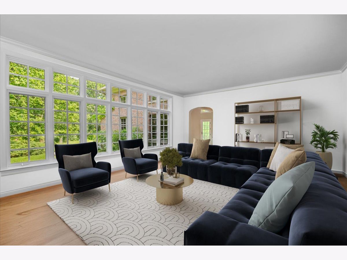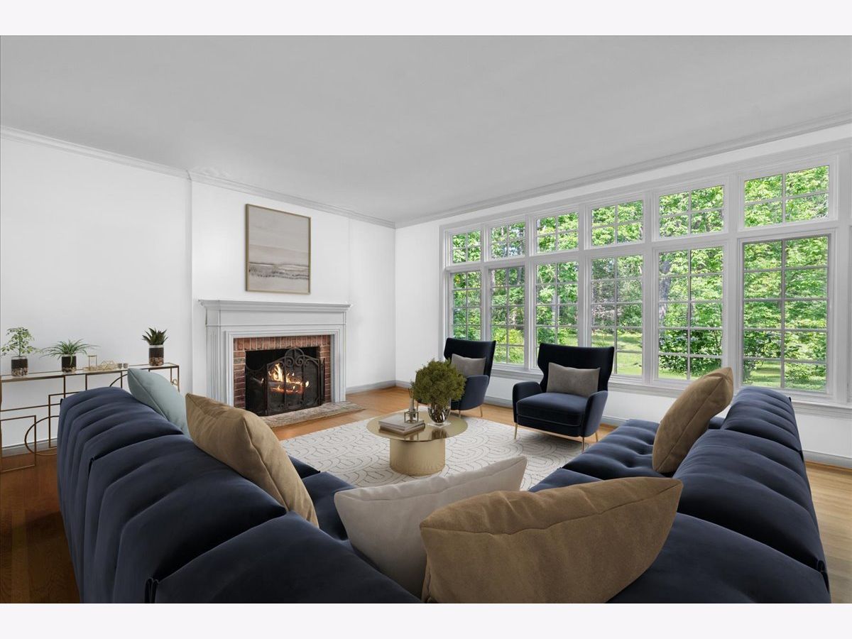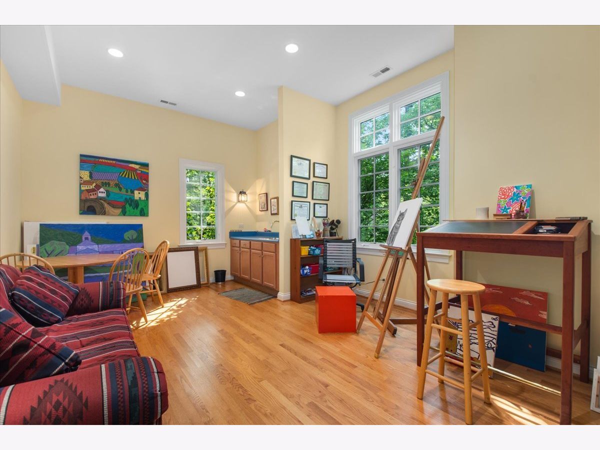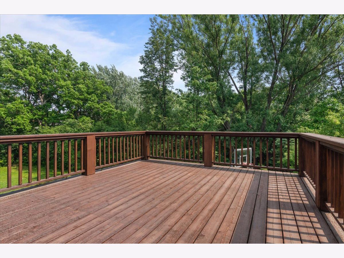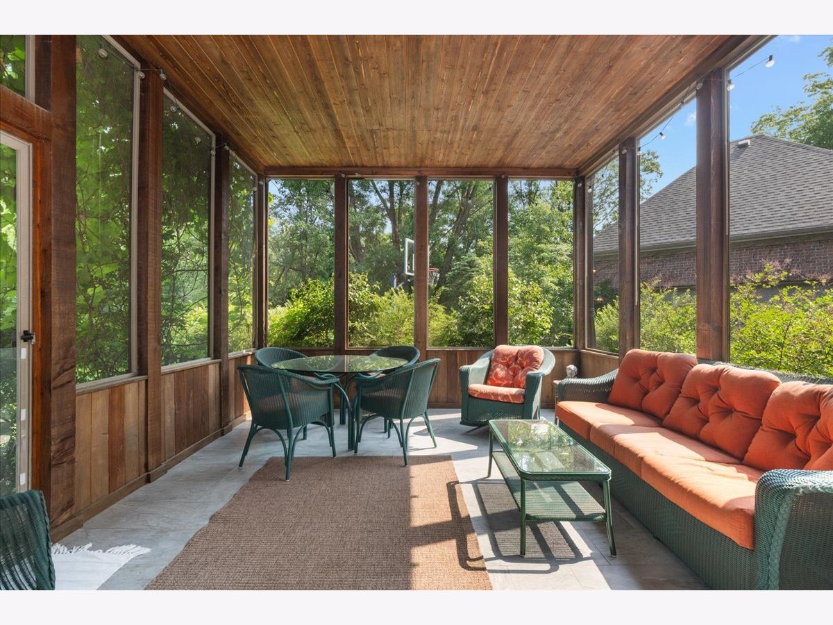 Fabulous opportunity to own this custom-built 5-bedroom, 4 full and 2 half bath home in Riverwoods, perfectly situated on over an acre of private, wooded land surrounded by nature and wildlife. With charming curb appeal, the home features a striking brick exterior, turret and porte-cochere. Designed with elegance and functionality in mind, this residence boasts high-end finishes, soaring ceilings and expansive windows that fill the home with natural light. The grand center-entry foyer with double height ceiling opens to a beautifully appointed dining room with a wall of windows overlooking the front yard and access to a butler's pantry. The spacious living room with a wood-burning fireplace provides serene views of the pristine backyard, while the inviting great room impresses with faux wood-beamed vaulted ceilings, built-ins, a stone fireplace, transom windows and a door leading out to the bluestone patio and lush yard. The open-concept kitchen is a chef's dream, featuring wood cabinetry, granite countertops, high-end stainless steel appliances, custom backsplash, an expansive island with seating and a sunlit breakfast area with oversized windows. The adjacent screened-in porch with wood paneling is the perfect spot to unwind and enjoy the surrounding landscape. A large sunlit home office with French doors plus a mudroom with built-in storage, a half bath, laundry room and access to the oversized 2-car garage enhance the functionality of the main level. A bonus room next to the garage offers ideal space for an art studio, gym or second office. The second floor features a bridal staircase that leads to a generous landing overlooking the foyer. The luxurious primary suite features a tray ceiling, professionally organized walk-in closet and a spa-like bath with a marble-topped double vanity, Kohler soaking tub, oversized shower and private commode room. Four additional spacious bedrooms with walk-in closets, 2 with en-suite baths and the other 2 share a Jack and Jill bath. A large bonus room is perfect for a kids' lounge or study area. Access to a private deck that overlooks yard is the ideal place to relax. A second laundry room completes the upper level. Unfinished lower level has endless possibilities with over 3,400 sq ft of additional space, including roughed-in plumbing for a bathroom. The beautifully landscaped yard with mature trees, bluestone patio with an outdoor fireplace, and total privacy offers a tranquil outdoor oasis. Additional highlights include hardwood floors throughout most of the home, abundant storage and a new roof (2023). This meticulously maintained and thoughtfully designed home is move-in ready. A rare gem!