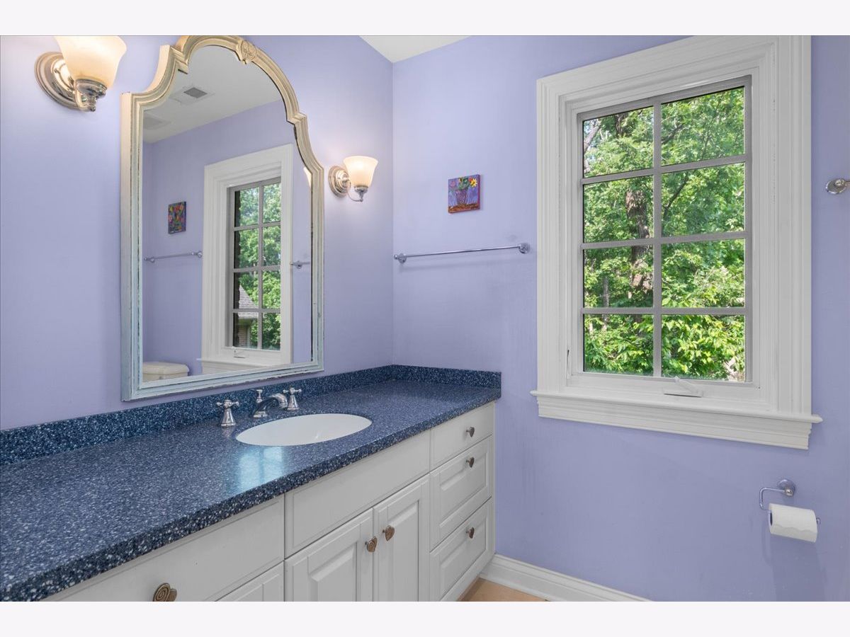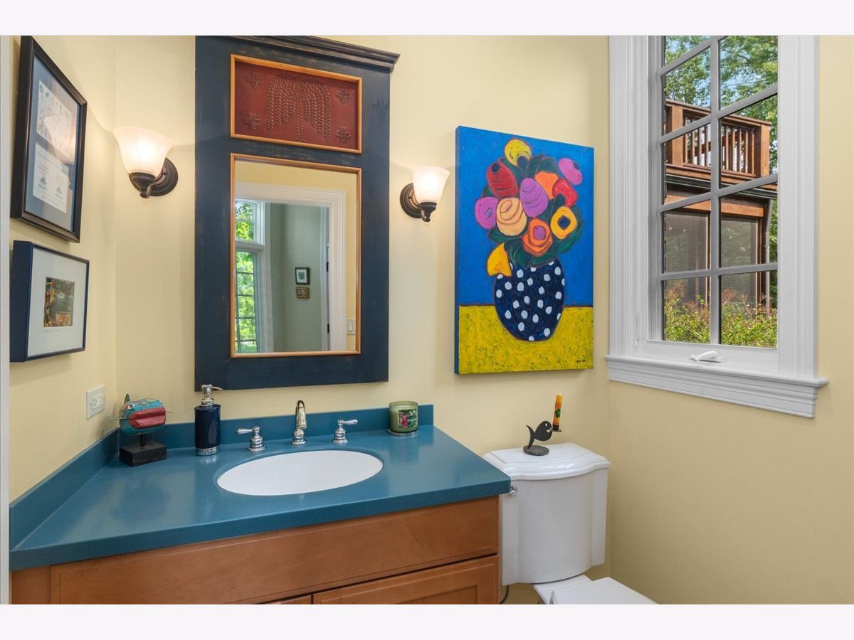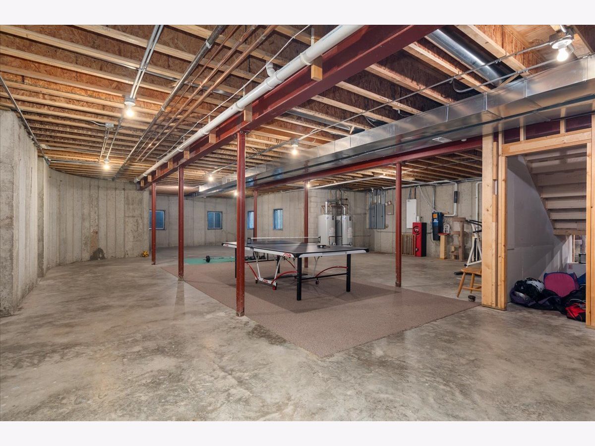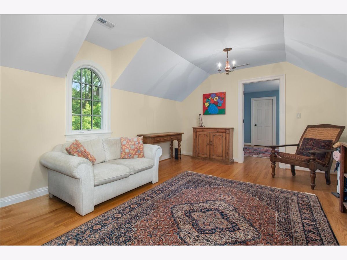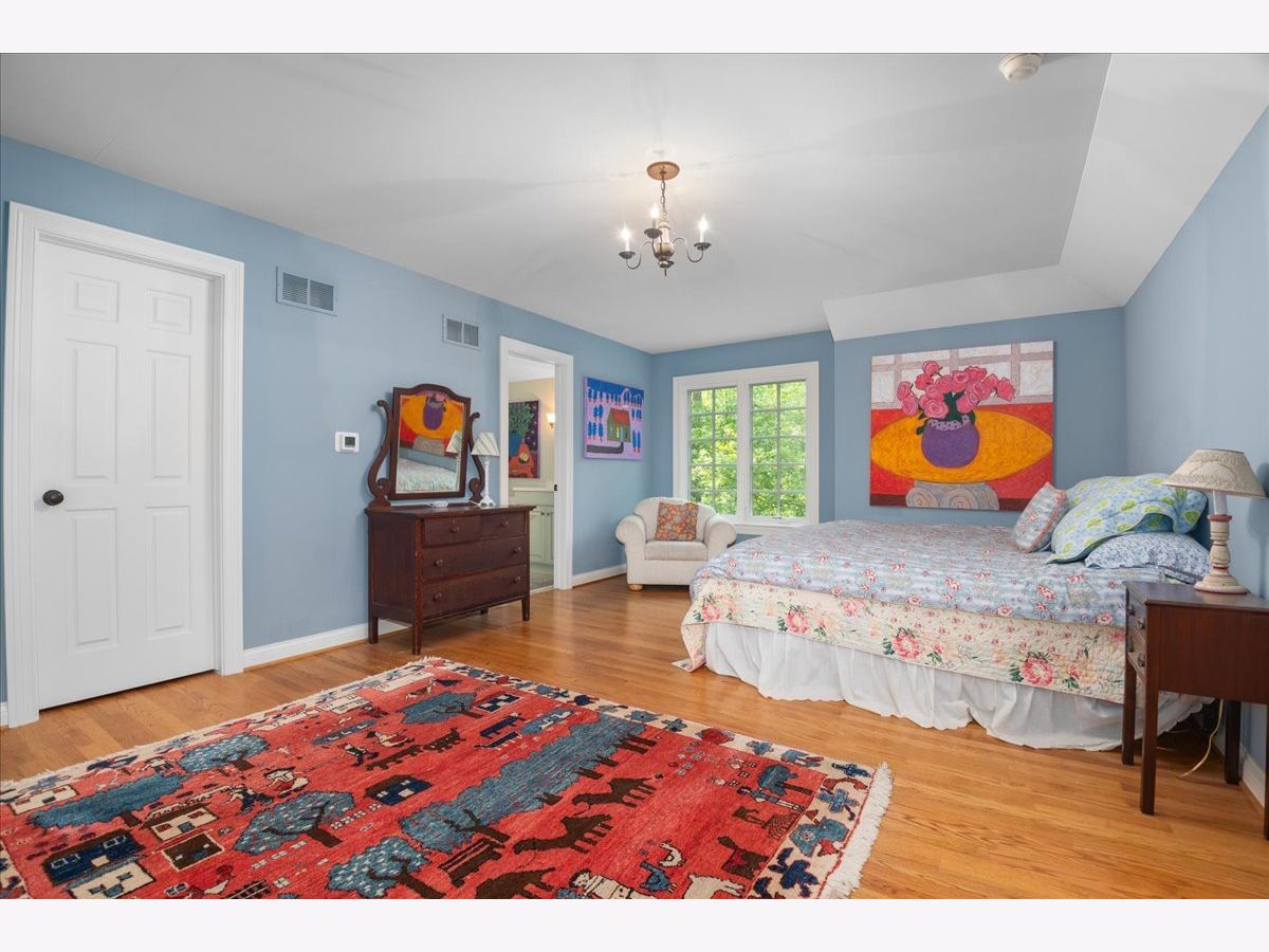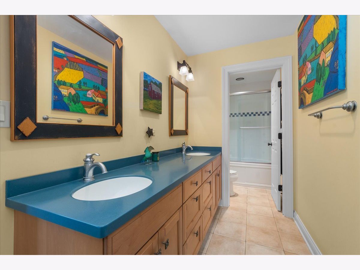 Fabulous opportunity to own this custom-built 5-bedroom, 4 full and 2 half bath home in Riverwoods, perfectly situated on over an acre of private, wooded land surrounded by nature and wildlife. With charming curb appeal, the home features a striking brick exterior, turret and porte-cochere. Designed with elegance and functionality in mind, this residence boasts high-end finishes, soaring ceilings and expansive windows that fill the home with natural light. The grand center-entry foyer with double height ceiling opens to a beautifully appointed dining room with a wall of windows overlooking the front yard and access to a butler's pantry. The spacious living room with a wood-burning fireplace provides serene views of the pristine backyard, while the inviting great room impresses with faux wood-beamed vaulted ceilings, built-ins, a stone fireplace, transom windows and a door leading out to the bluestone patio and lush yard. The open-concept kitchen is a chef's dream, featuring wood cabinetry, granite countertops, high-end stainless steel appliances, custom backsplash, an expansive island with seating and a sunlit breakfast area with oversized windows. The adjacent screened-in porch with wood paneling is the perfect spot to unwind and enjoy the surrounding landscape. A large sunlit home office with French doors plus a mudroom with built-in storage, a half bath, laundry room and access to the oversized 2-car garage enhance the functionality of the main level. A bonus room next to the garage offers ideal space for an art studio, gym or second office. The second floor features a bridal staircase that leads to a generous landing overlooking the foyer. The luxurious primary suite features a tray ceiling, professionally organized walk-in closet and a spa-like bath with a marble-topped double vanity, Kohler soaking tub, oversized shower and private commode room. Four additional spacious bedrooms with walk-in closets, 2 with en-suite baths and the other 2 share a Jack and Jill bath. A large bonus room is perfect for a kids' lounge or study area. Access to a private deck that overlooks yard is the ideal place to relax. A second laundry room completes the upper level. Unfinished lower level has endless possibilities with over 3,400 sq ft of additional space, including roughed-in plumbing for a bathroom. The beautifully landscaped yard with mature trees, bluestone patio with an outdoor fireplace, and total privacy offers a tranquil outdoor oasis. Additional highlights include hardwood floors throughout most of the home, abundant storage and a new roof (2023). This meticulously maintained and thoughtfully designed home is move-in ready. A rare gem!