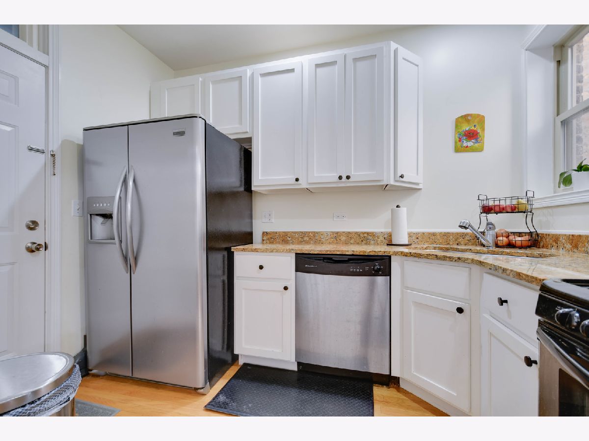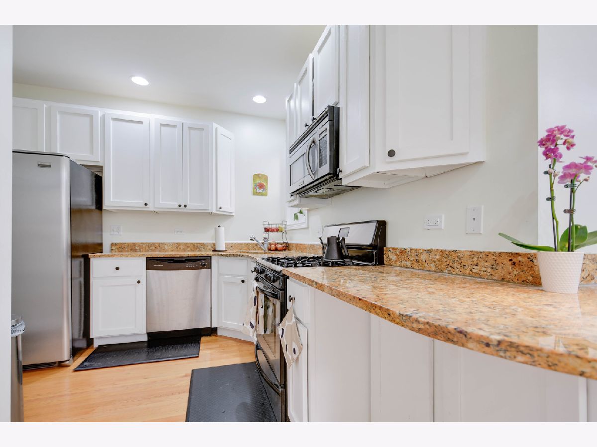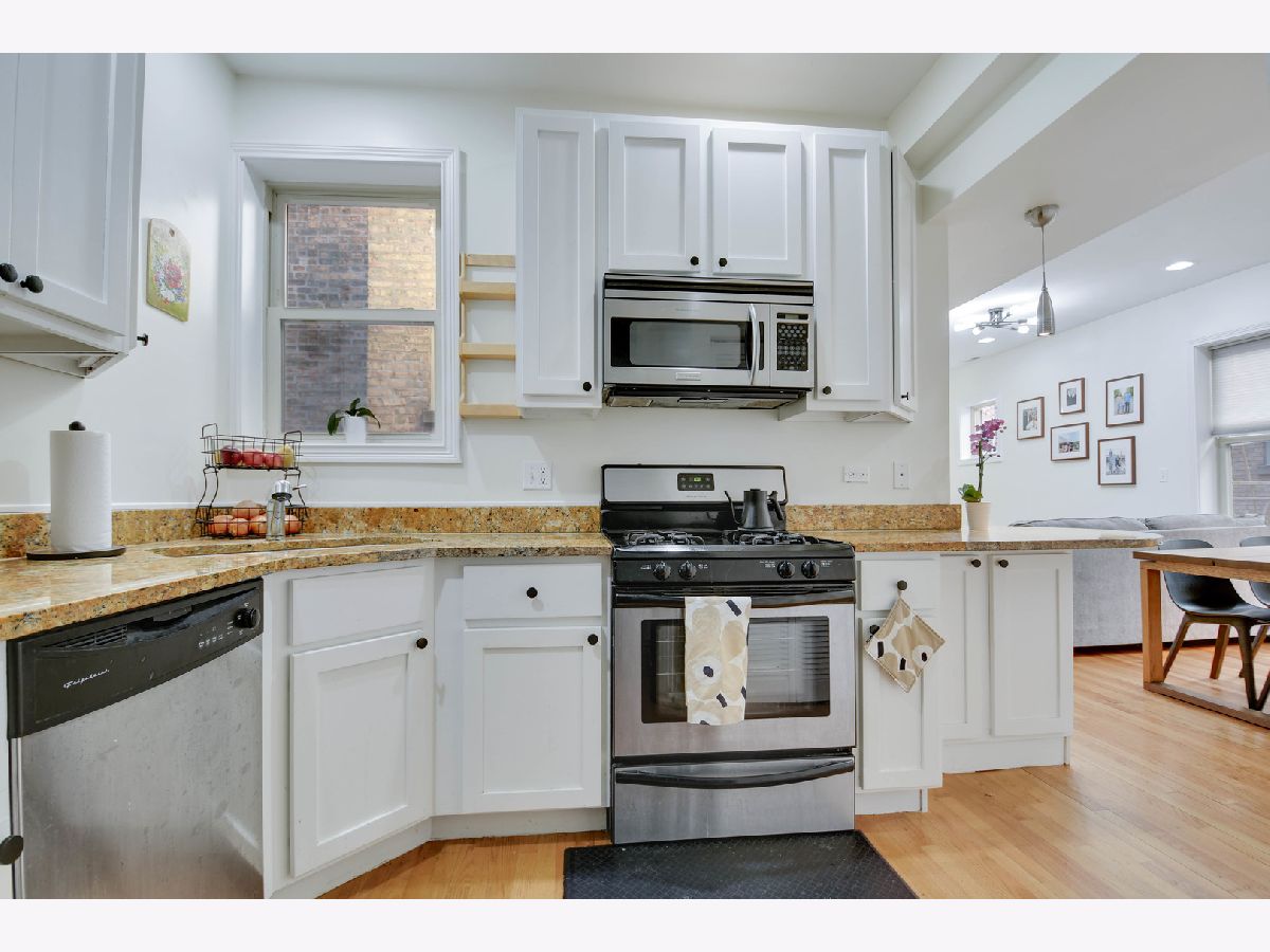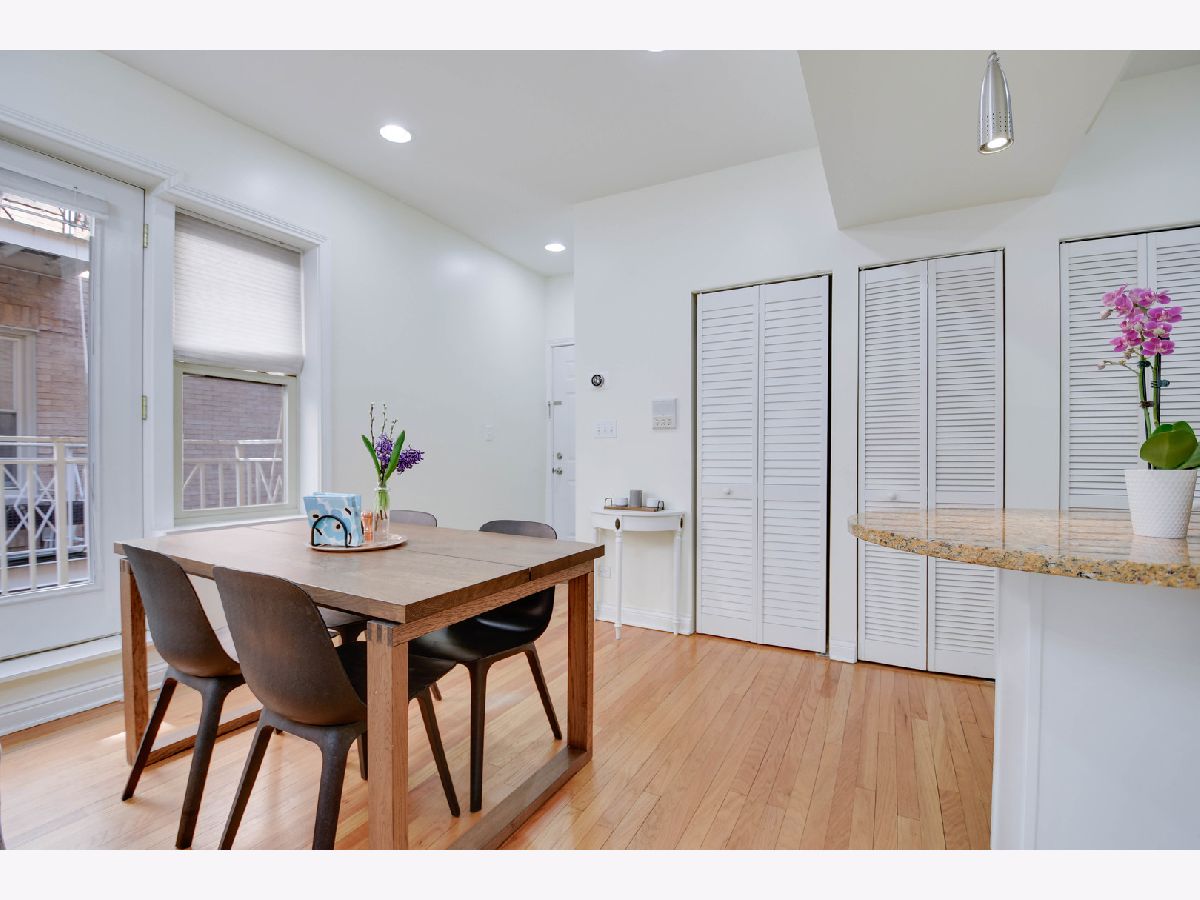 Located in the heart of Ukrainian Village/Wicker Park, this beautifully maintained condo offers a well-designed and efficient layout paired with a tastefully neutral interior featuring real oak hardwood floors, classic white trim and doors, and modern recessed lighting throughout. The stylish kitchen showcases 42" cabinets, quality granite countertops, stainless steel appliances, and a breakfast bar that opens seamlessly to the inviting living and dining room combination, complete with a fireplace and a door leading to a balcony overlooking a charming courtyard. Two generously sized bedrooms feature large windows that fill the space with natural light. Enjoy the convenience of in-unit laundry and a spacious storage closet located on the ground level. One deeded parking space is included and conveniently located directly behind the building. The building was redeveloped in 2007, and this well-managed association offers an affordable monthly fee. The unit also features a 5-year-old water heater and a 4-year-old furnace and central air system. Walk to everything - vibrant nightlife, popular restaurants, and convenient public transportation. Easy to see and even easier to buy, so schedule your showing while this opportunity lasts.