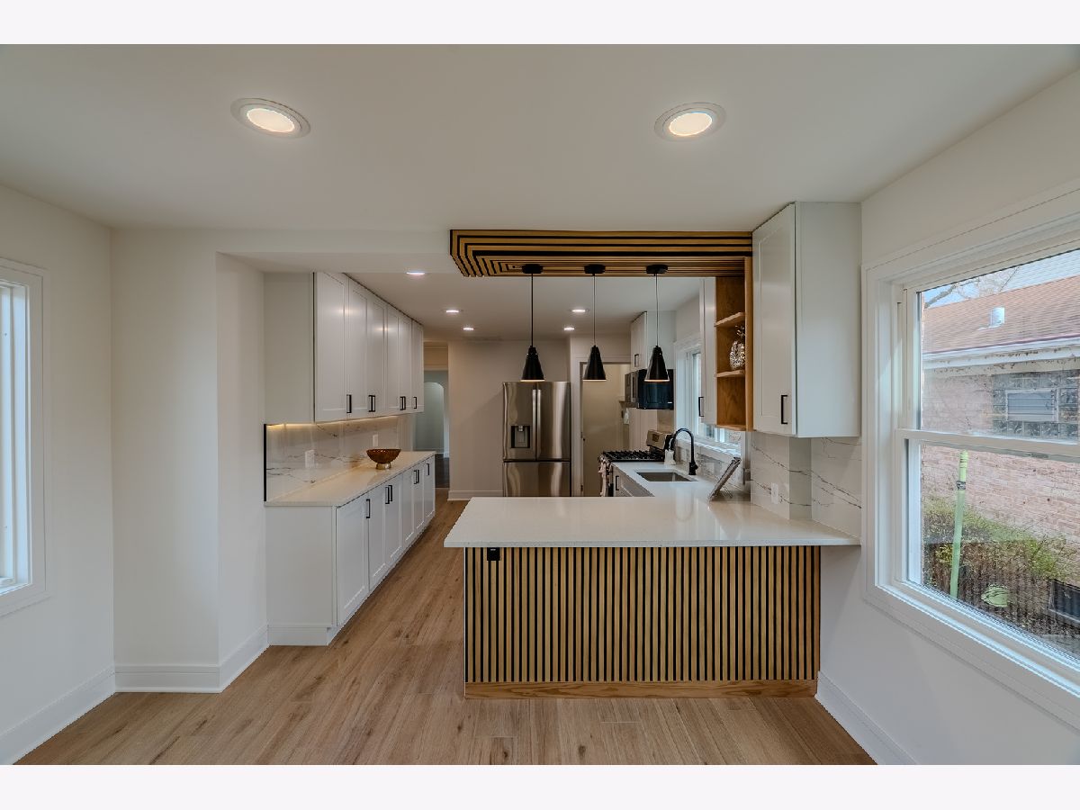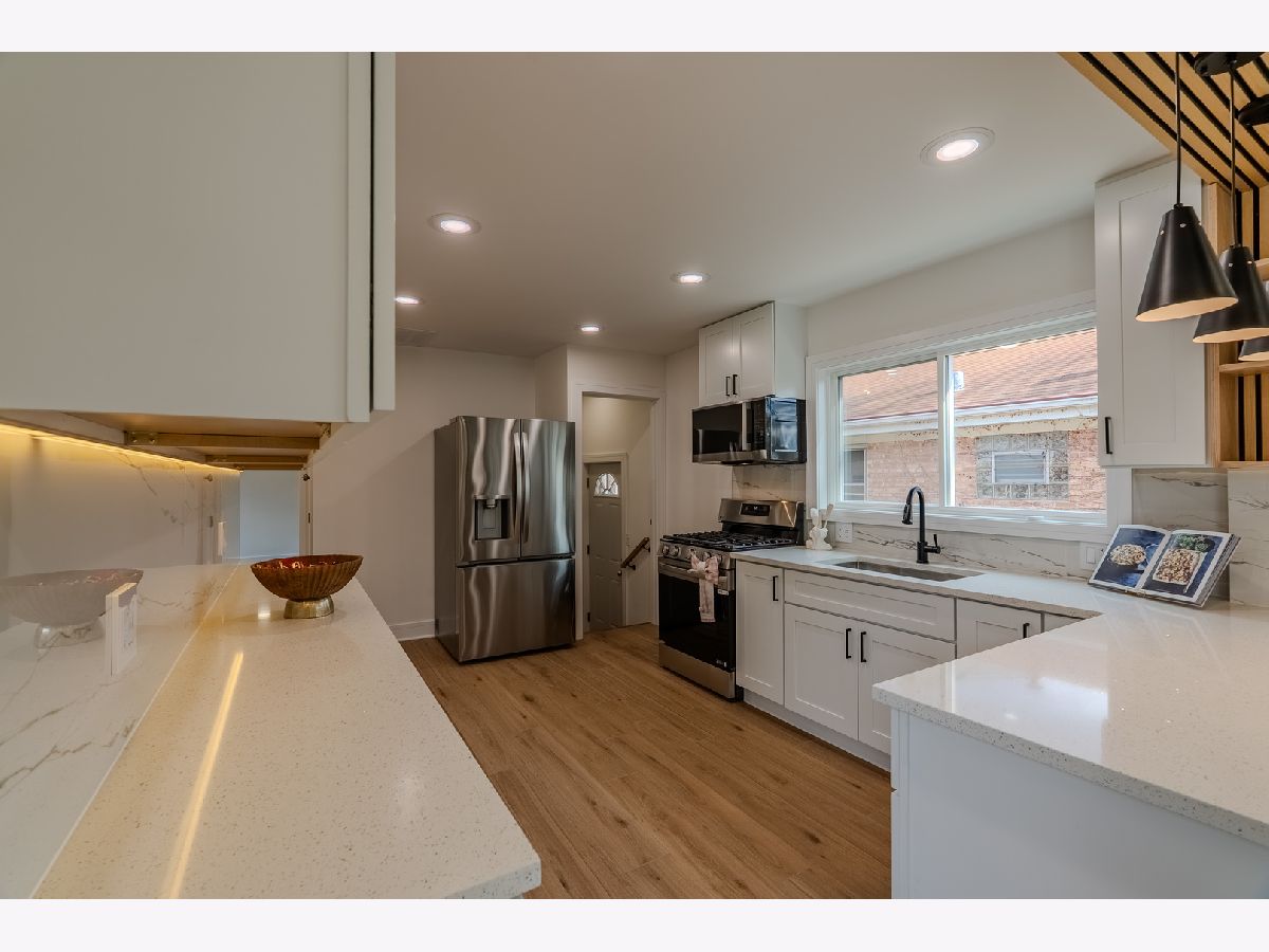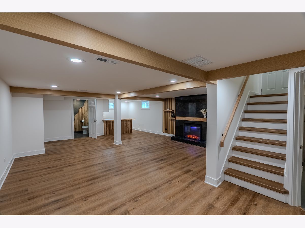 Welcome to this beautifully renovated all-brick home, where modern updates meet timeless charm. This property has been completely rehabbed from top to bottom, offering exceptional quality and thoughtful design throughout. The main level features a spacious layout with three bedrooms and two full bathrooms. A stunning wood-burning fireplace serves as the focal point of the living space, enhanced by elegant lighting and gorgeous hardwood floors that flow throughout the bedrooms and living room. The cozy kitchen is equipped with LG smart stainless steel appliances, controllable from your phone, along with Corian countertops and a comfortable seating area-perfect for everyday living and entertaining. The fully finished basement expands your living space with two additional rooms, a beautiful family room with a second fireplace, and a stylish wet bar/kitchenette complete with a wine cooler, sink, and dishwasher-ideal for hosting guests or creating a private retreat. This home also features: New electrical and copper plumbing New windows and interior doors Brand new HVAC system 50-gallon water heater The finished garage includes a large storage/attic area above, providing excellent additional space. Step outside to enjoy a cozy, fenced side yard with fresh sod and a dedicated barbecue area-perfect for relaxing or entertaining. Conveniently located near shopping, dining, and transportation, this home offers both comfort and accessibility. A true move-in-ready gem with custom millwork and high-end tile finishes throughout-don't miss this opportunity!