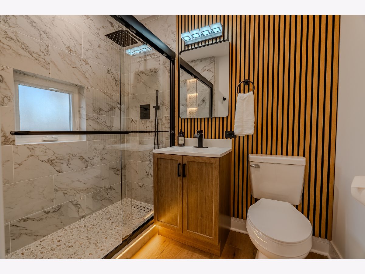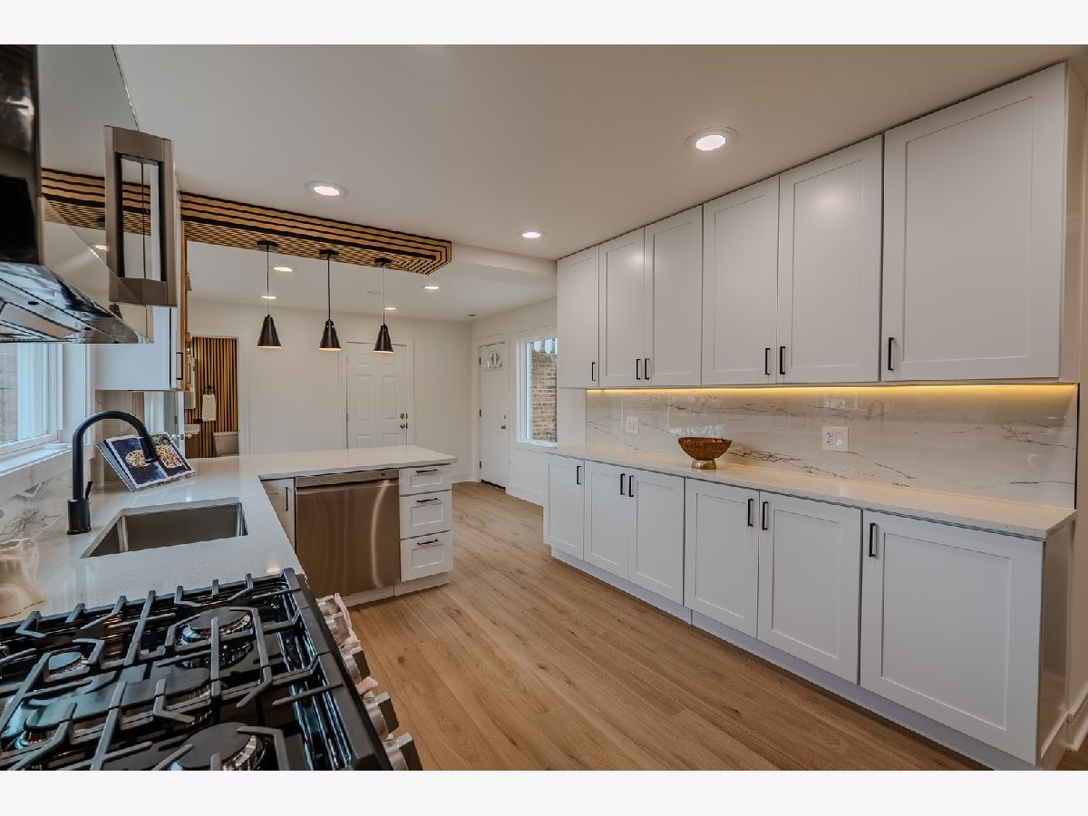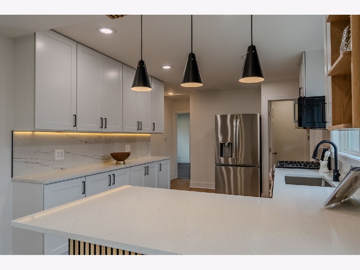 Welcome to this beautifully renovated all-brick home, where modern updates meet timeless charm. This property has been completely rehabbed from top to bottom, offering exceptional quality and thoughtful design throughout. The main level features a spacious layout with three bedrooms and two full bathrooms. A stunning wood-burning fireplace serves as the focal point of the living space, enhanced by elegant lighting and gorgeous hardwood floors that flow throughout the bedrooms and living room. The cozy kitchen is equipped with LG smart stainless steel appliances, controllable from your phone, along with Corian countertops and a comfortable seating area-perfect for everyday living and entertaining. The fully finished basement expands your living space with two additional rooms, a beautiful family room with a second fireplace, and a stylish wet bar/kitchenette complete with a wine cooler, sink, and dishwasher-ideal for hosting guests or creating a private retreat. This home also features: New electrical and copper plumbing New windows and interior doors Brand new HVAC system 50-gallon water heater The finished garage includes a large storage/attic area above, providing excellent additional space. Step outside to enjoy a cozy, fenced side yard with fresh sod and a dedicated barbecue area-perfect for relaxing or entertaining. Conveniently located near shopping, dining, and transportation, this home offers both comfort and accessibility. A true move-in-ready gem with custom millwork and high-end tile finishes throughout-don't miss this opportunity!