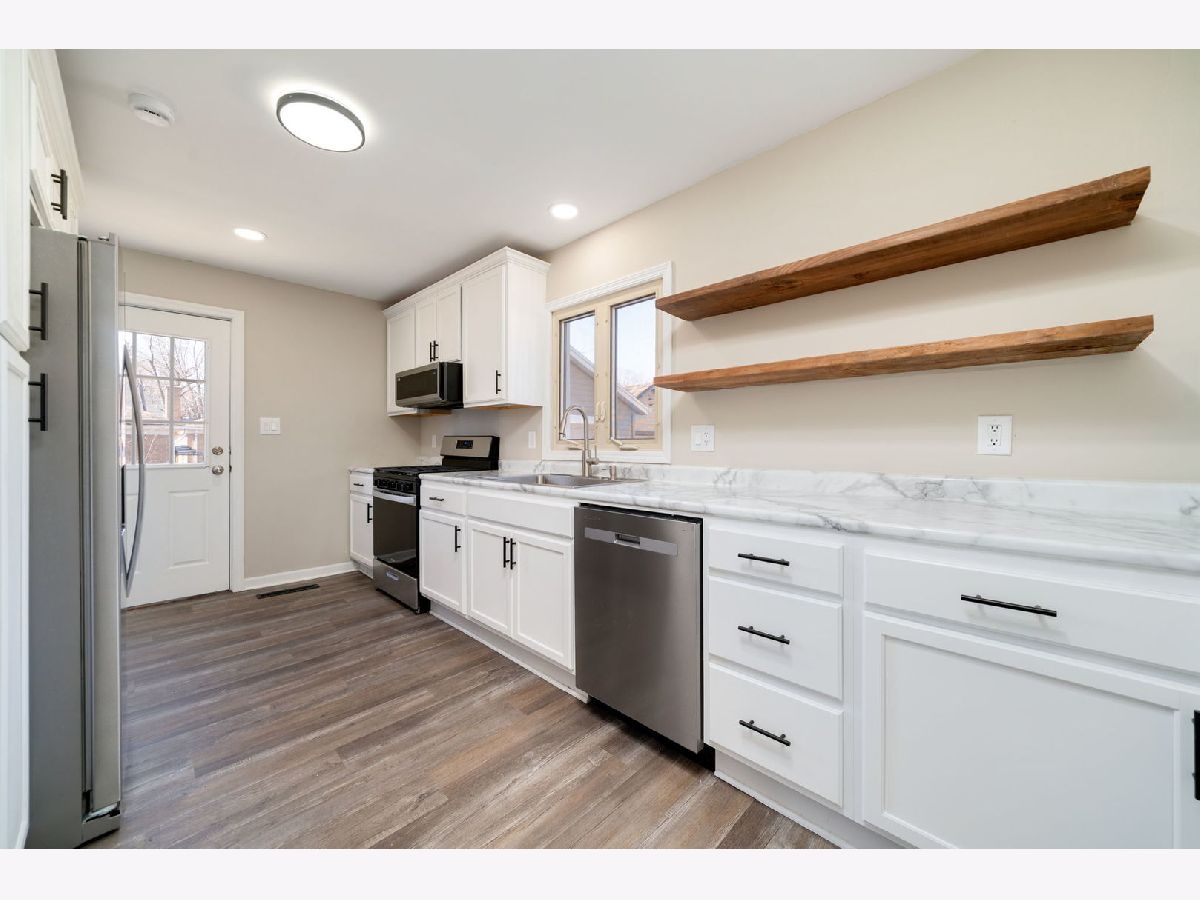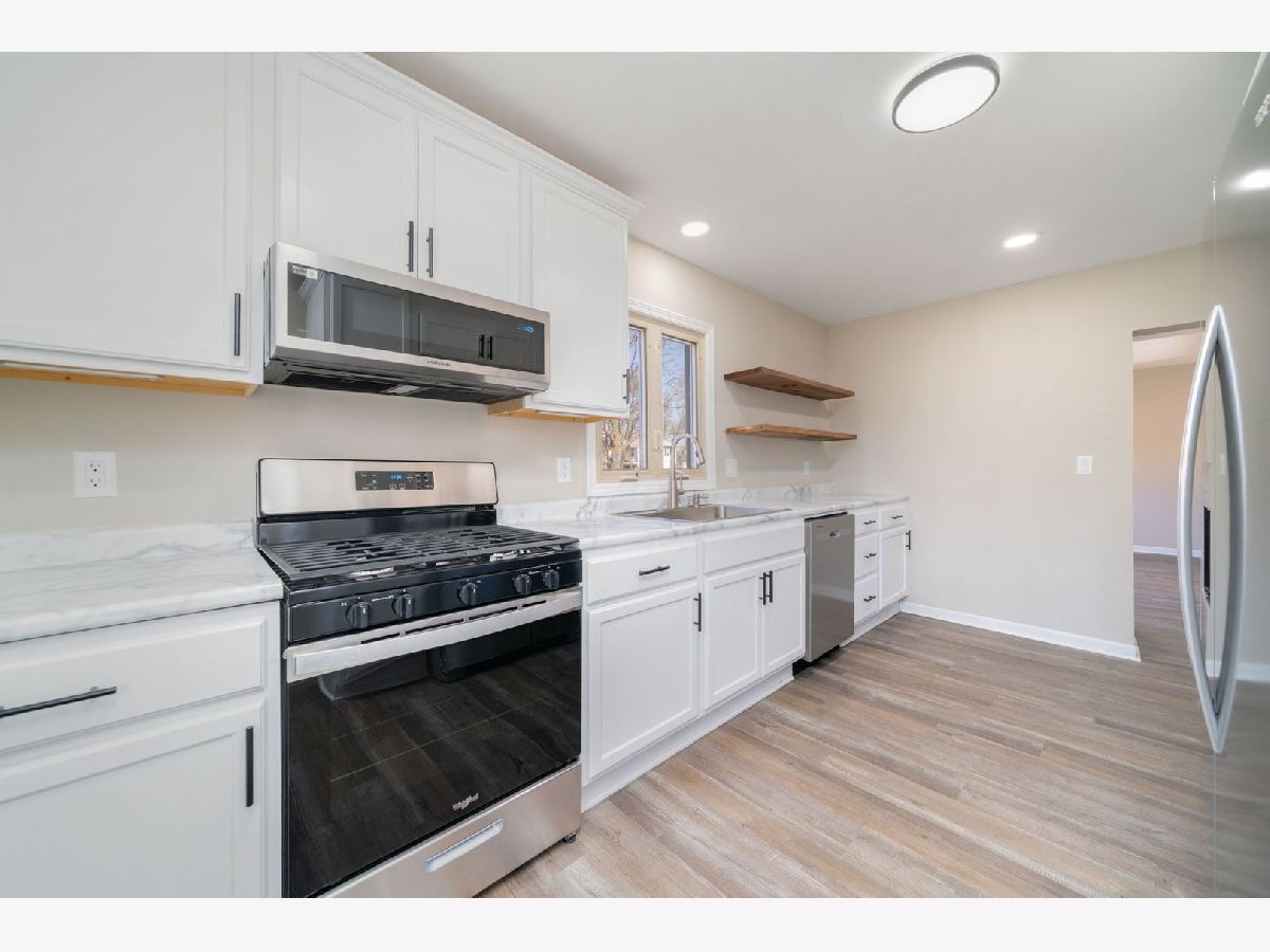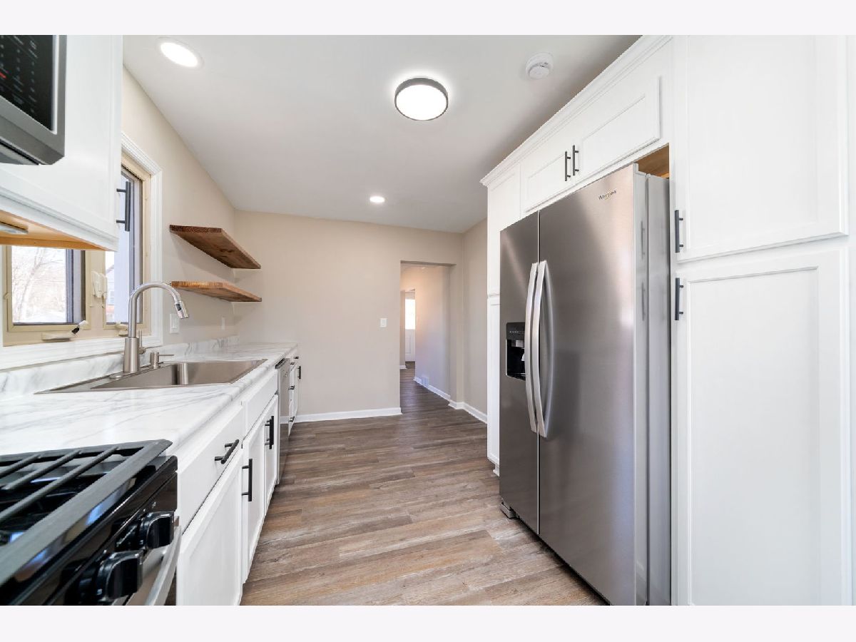 Completely renovated in 2025, this 3-bedroom, 1.5 -bath home in Belvidere is move-in ready and thoughtfully updated throughout. The main floor features a convenient primary bedroom, while two additional bedrooms and the full bath are located upstairs. You'll love the bright living room and the fully remodeled kitchen with new cabinetry and stainless steel appliances. Additional 2025 updates include new siding, gutters, fixtures and finishes, a new garage door and opener, and a brand-new deck-perfect for outdoor entertaining. The home also offers newer windows and a 2-car detached garage. Located within walking distance to schools, close to shopping, and with easy access to I-90 and I-39, this home combines modern updates with everyday convenience.