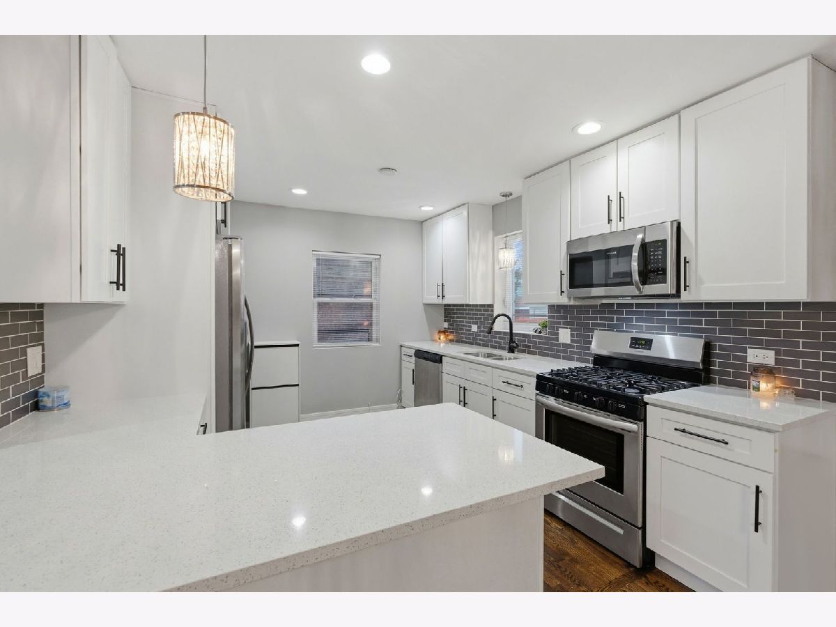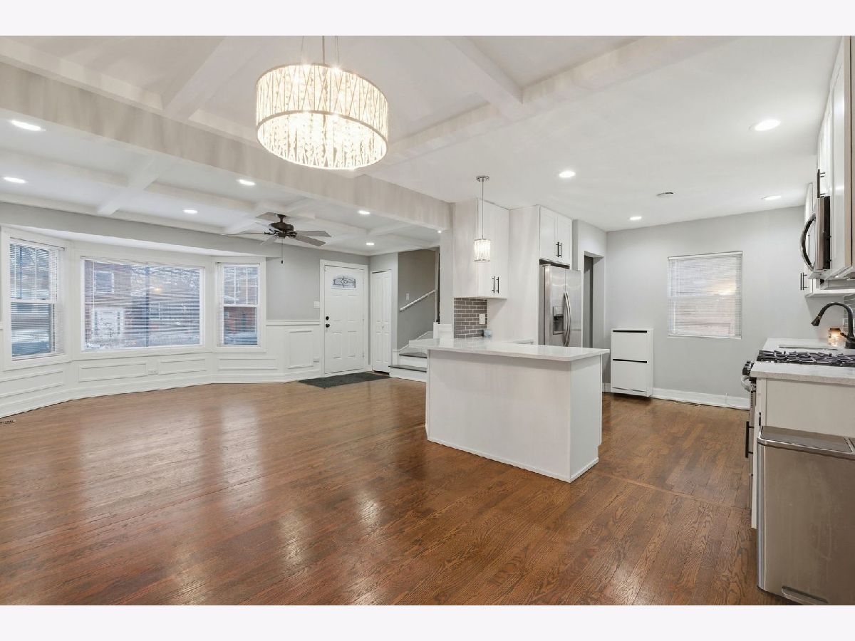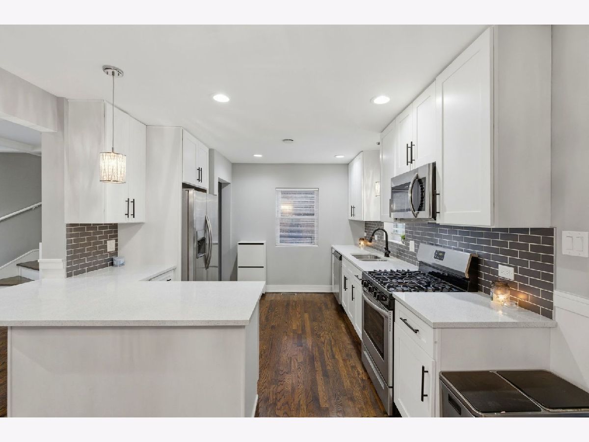A true must-see in Rosemoor This beautifully updated 3-bedroom, 2.5-bath home delivers space, style, and functionality at every turn. Step inside to an open-concept layout featuring rich and original hardwood floors, elegant tray ceilings, wainscoting throughout, modern fixtures, and an abundance of natural and recessed lighting-all freshly painted for a move-in-ready feel. The living and dining areas flow seamlessly into the kitchen, designed for both everyday living and entertaining, with stunning countertops, classic subway tile backsplash, 42" white shaker cabinetry, a large island, and brand-new stainless steel appliances. The main-level primary suite offers a full bath and added convenience, while the second level features two large additional bedrooms with hardwood flooring. Every bathroom showcases beautiful tile work and sleek, modern finishes. The fully finished basement expands your living space with a half bath and laundry room-ideal for entertaining, relaxing, or hosting family gatherings. Outside, enjoy a fenced-in yard and a detached two-car garage, completing this exceptional home.