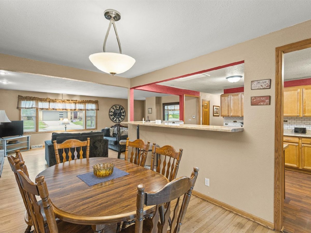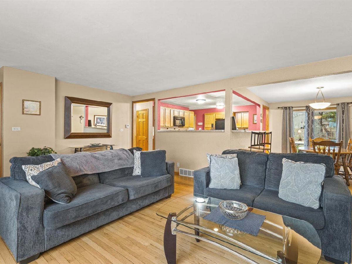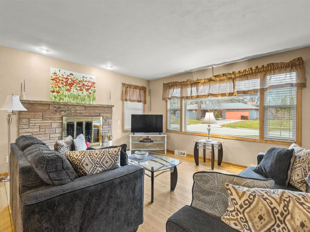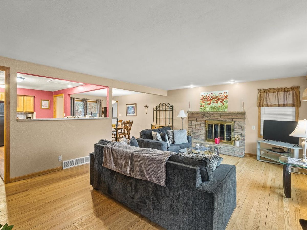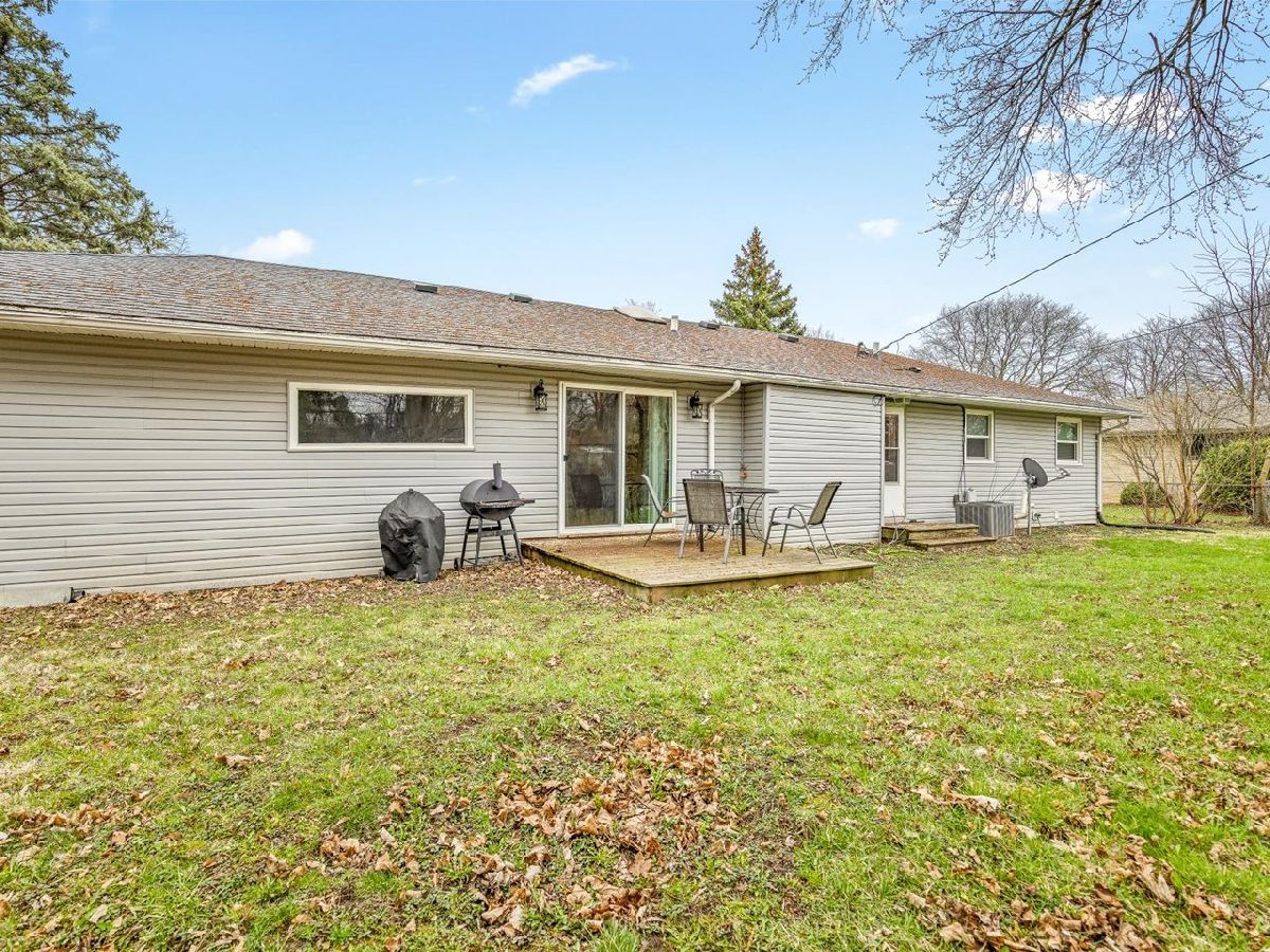 Located in northeast Rockford, this well-maintained and tastefully decorated ranch-style home offers comfortable, open-concept living. The bright and inviting living room features a wood-burning fireplace and a large picture window that fills the space with natural light. The kitchen provides abundant cabinet and counter space, along with a convenient breakfast bar that flows into the dining area. Sliding doors from the dining room lead to a deck overlooking the fenced backyard with mature trees-perfect for relaxing or entertaining. This home includes three spacious bedrooms and two full bathrooms, including a primary suite with its own private bathroom. The finished lower level offers a large rec room with an additional fireplace, creating even more space to unwind. A two-car attached garage completes the package.