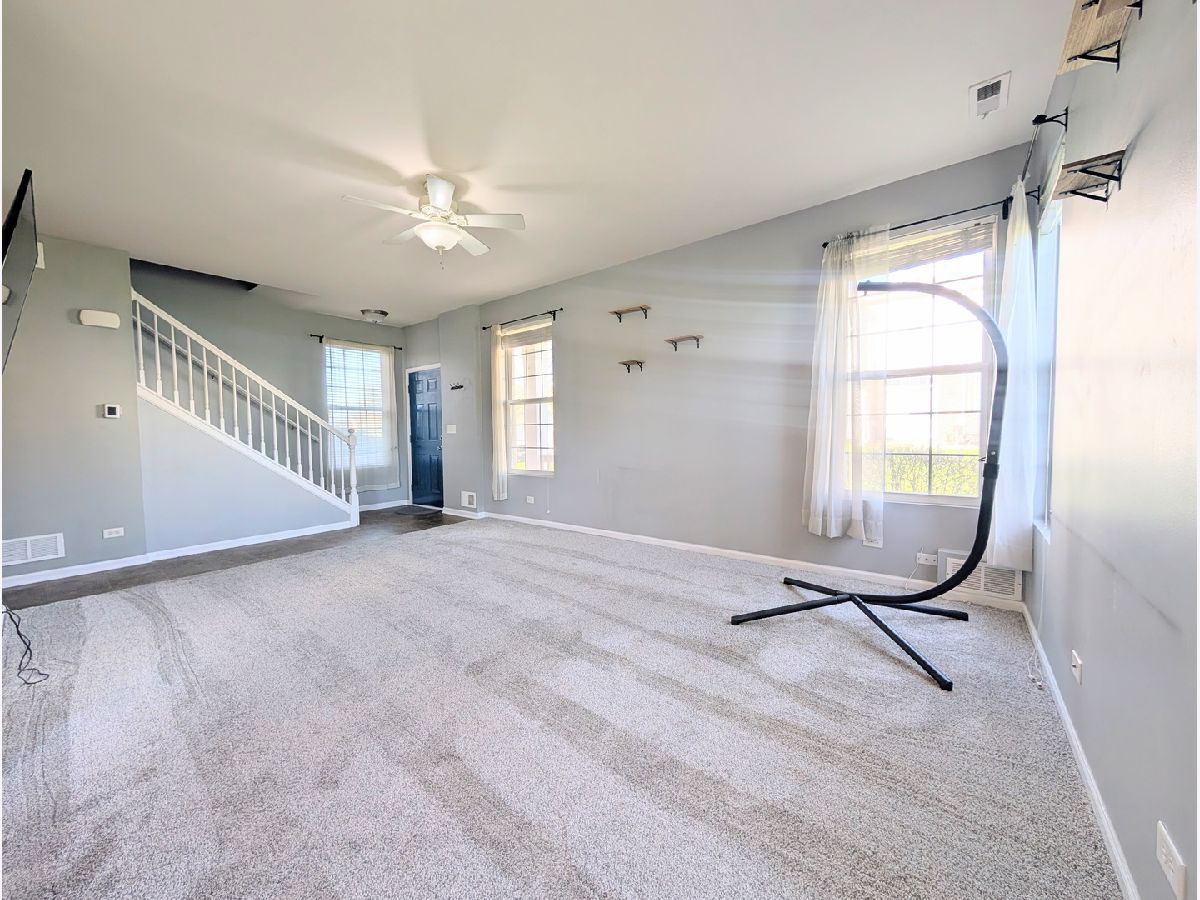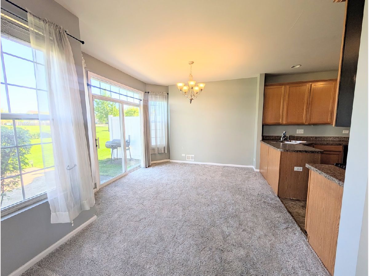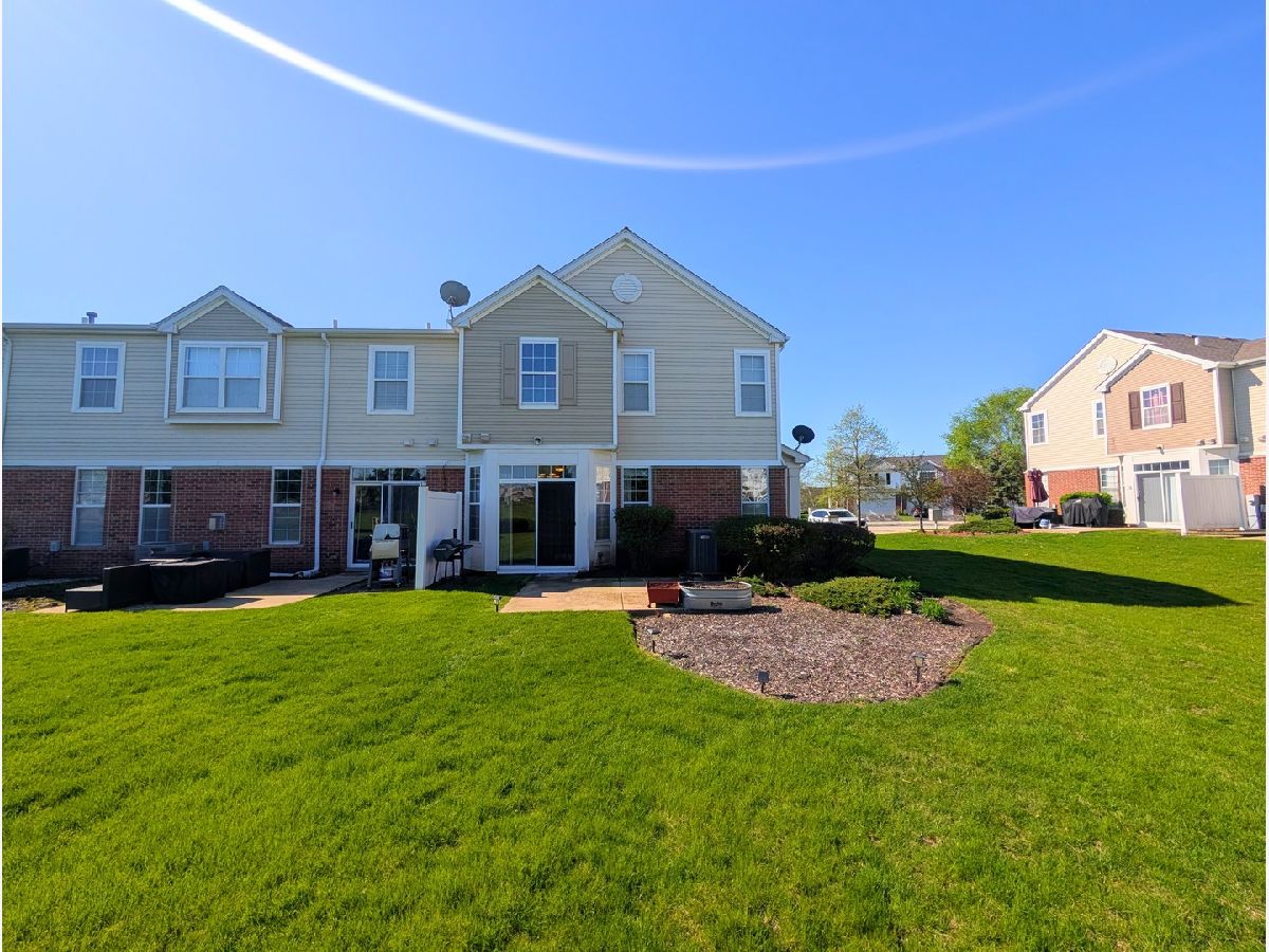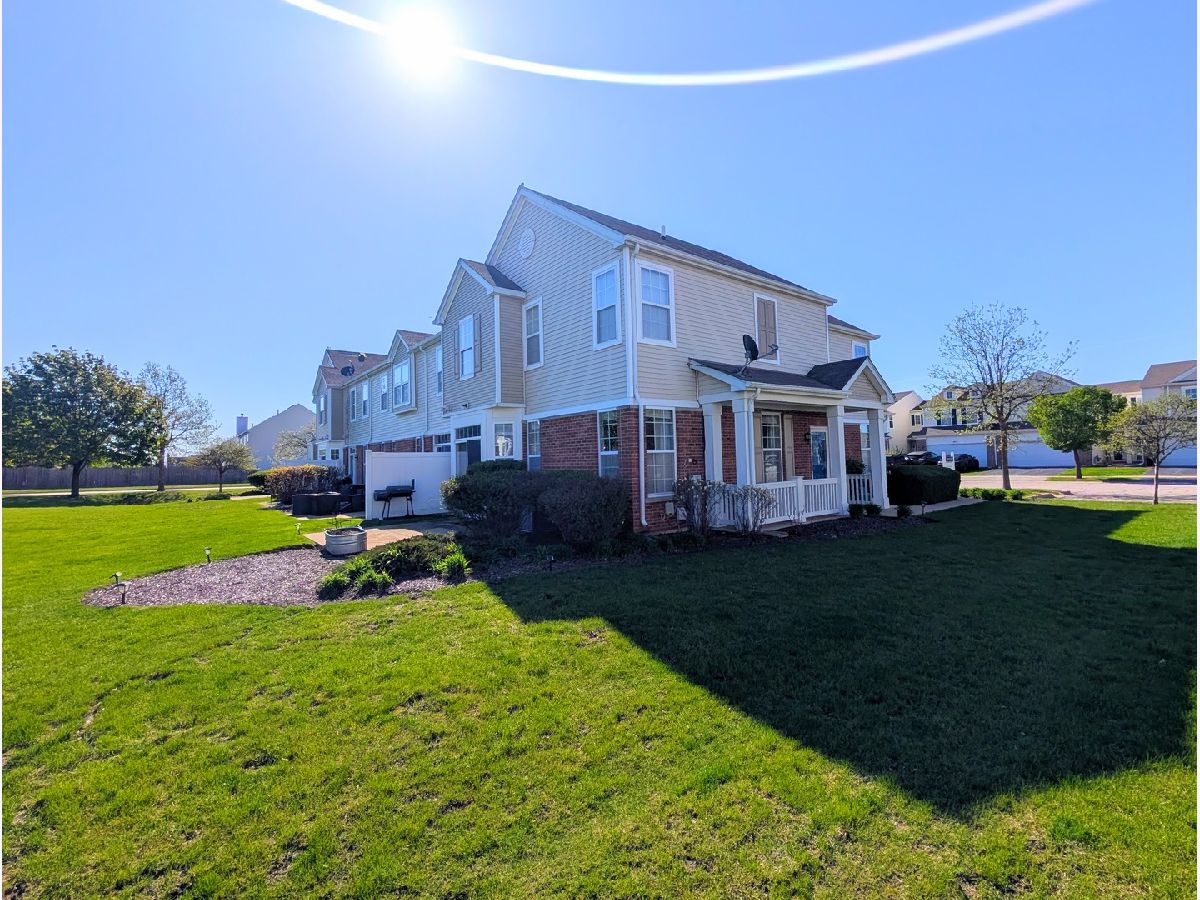 End-unit townhome positioned with open green space, offering added privacy with no direct rear neighbors. The main level showcases updates that include refrigerator (2024), carpet and padding (2020), Furnace (2017), WH (2017), a generous sized living room and a kitchen appointed with 42" cabinets and crown molding. The layout connects seamlessly to the dining area, which leads to the patio and backyard, ideal for everyday living and entertaining. Upstairs features a spacious primary suite with dual walk-in closets and a well-designed en-suite bath complete with a double vanity and oversized shower. Two additional generously sized bedrooms, a full bath and a conveniently located second-floor laundry room complete the upper level. Thoughtfully maintained with a highly functional layout that supports comfortable, everyday living. Residents enjoy access to a community pool, fitness center, sand volleyball and clubhouse, along with exterior maintenance including lawn care and snow removal. All within the Minooka School District. Rentable.