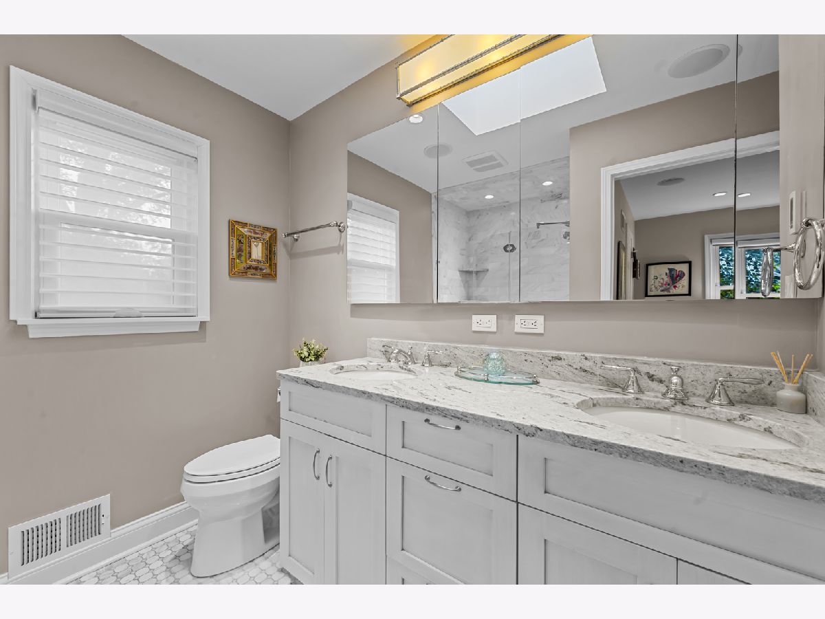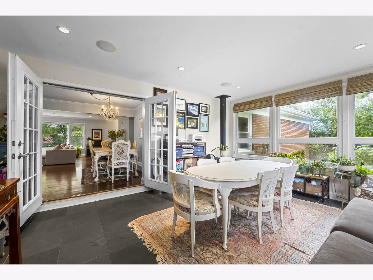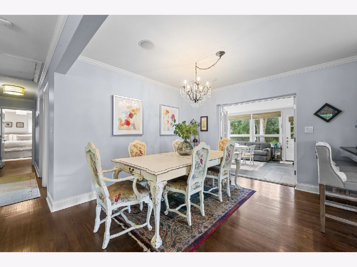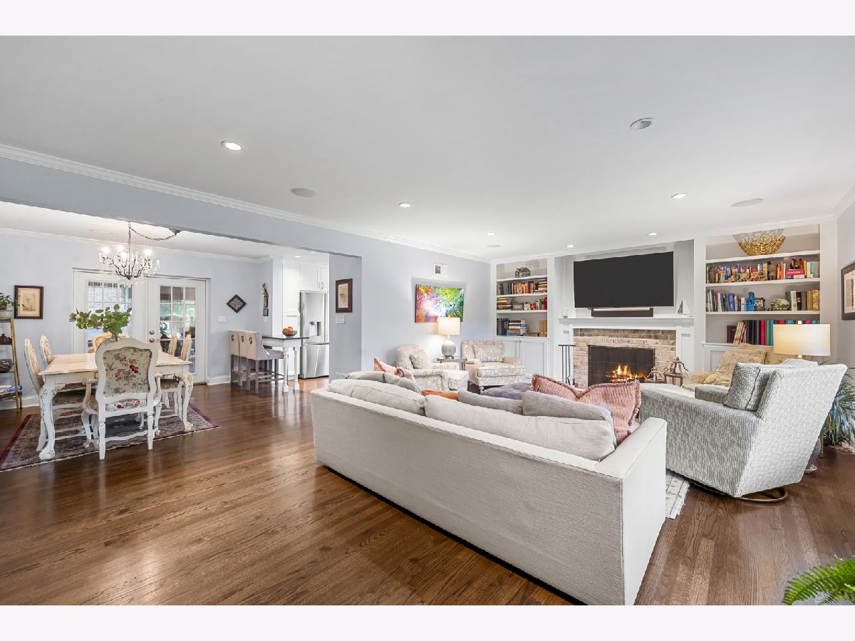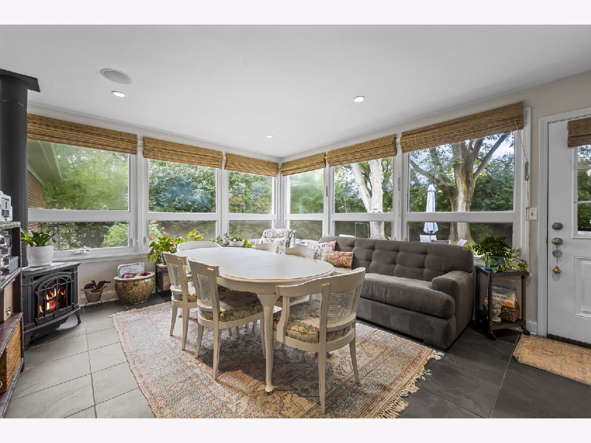 Experience the perfect blend of modern amenities and classic charm in this fully renovated ranch. As you enter, you'll be greeted by a light-filled interior featuring gleaming hardwood floors and a spacious open floor plan. The bright, white kitchen seamlessly flows into a large dining area, ideal for hosting gatherings or enjoying family dinners. An adjacent sunroom with heated stone floors, enhances the versatility of the space, easily serving as an office or additional gathering area. The expansive family room is a highlight, with a central fireplace, and custom built-ins. This home boasts three well-appointed bedrooms, including a master suite complete with a walk-in, cedar lined closet and en-suite bath. The full finished basement provides an abundance of extra living space, perfect for entertaining with its large recreation room with surround sound, another fireplace, wine cellar, and a full bath. Situated on a corner lot, the property features a large bluestone patio and fenced yard, offering an excellent space for outdoor enjoyment. Additional highlights include heated floors in all bathrooms, built-in speakers, an all-brick exterior, new driveway, first-floor laundry with new washer and dryer, all-new appliances and mechanicals, and an attached 2.5-car garage. Conveniently located near Northcroft Park, the Metra, and shopping, this home is move-in ready!