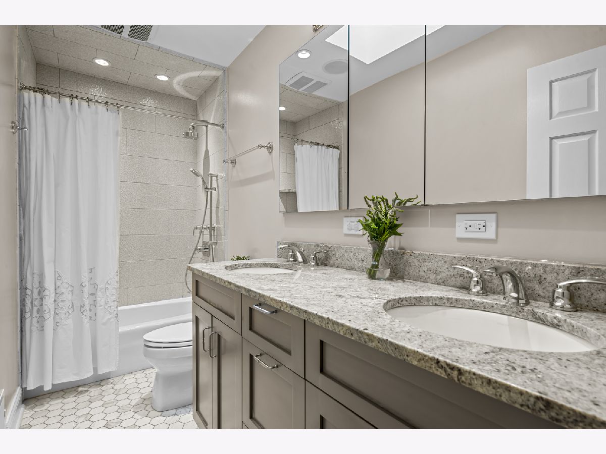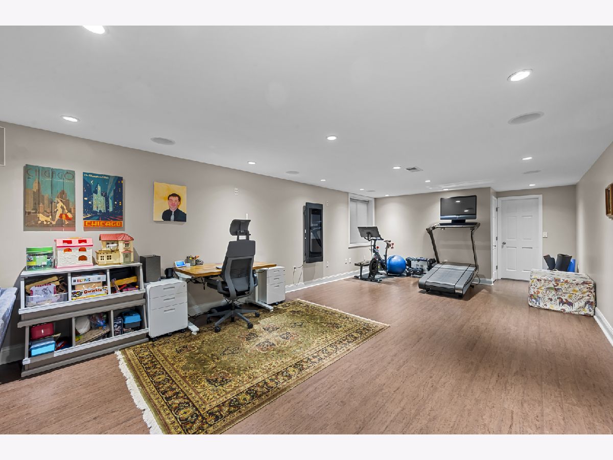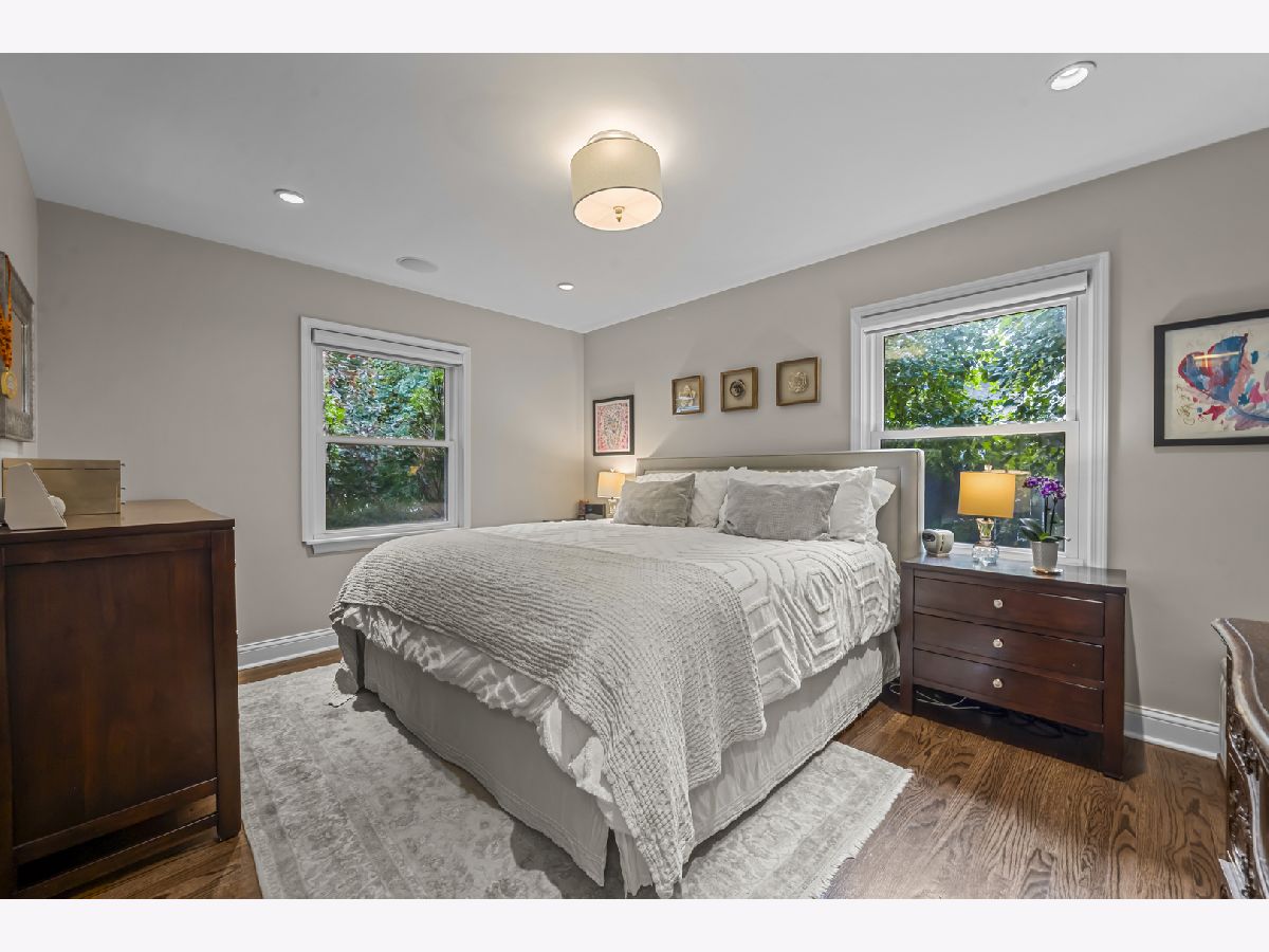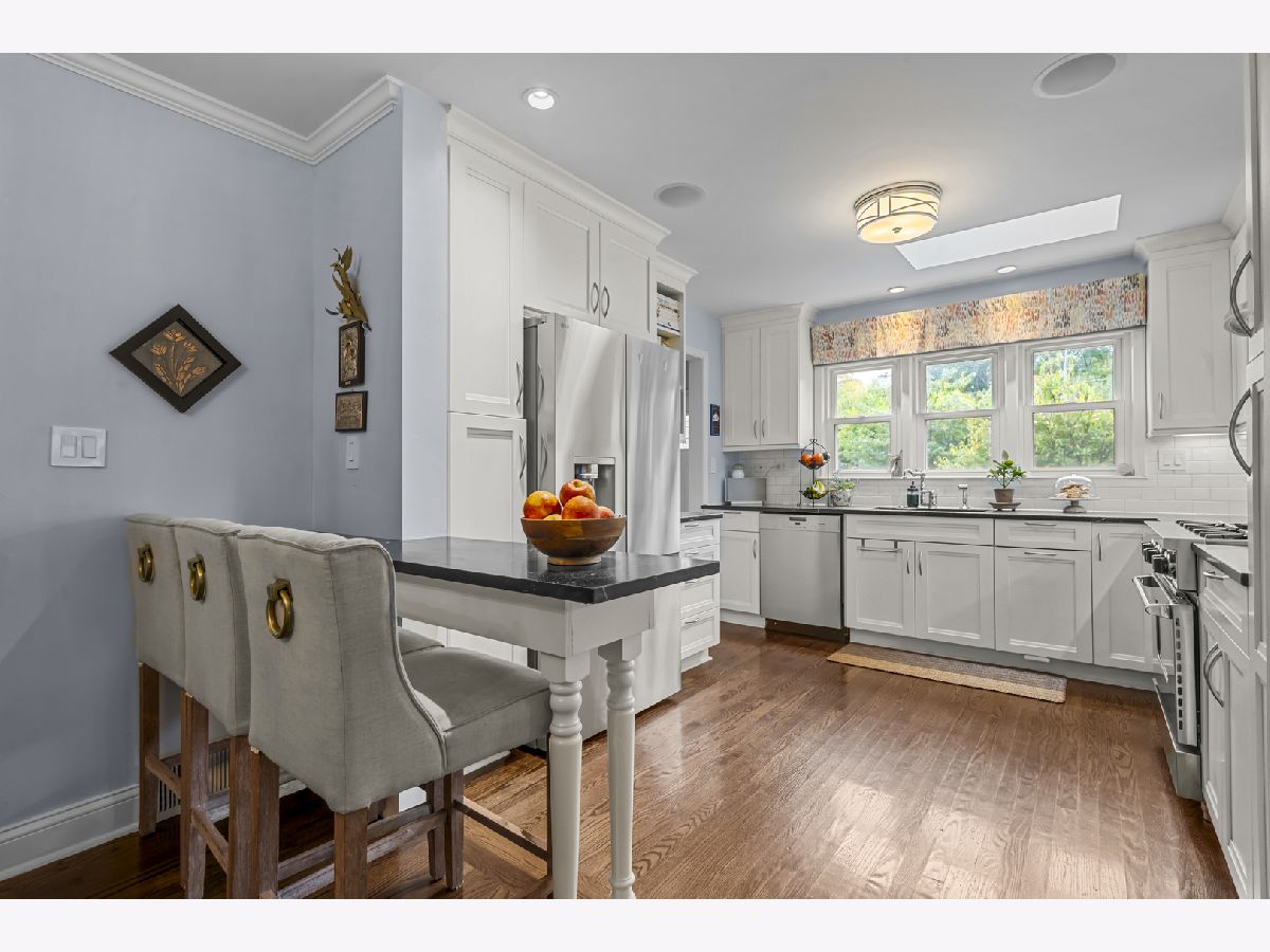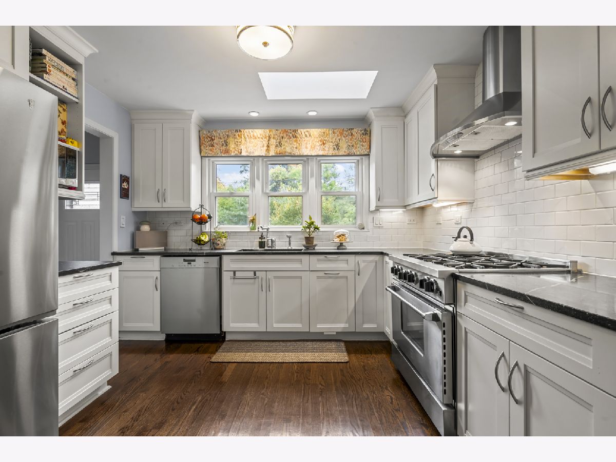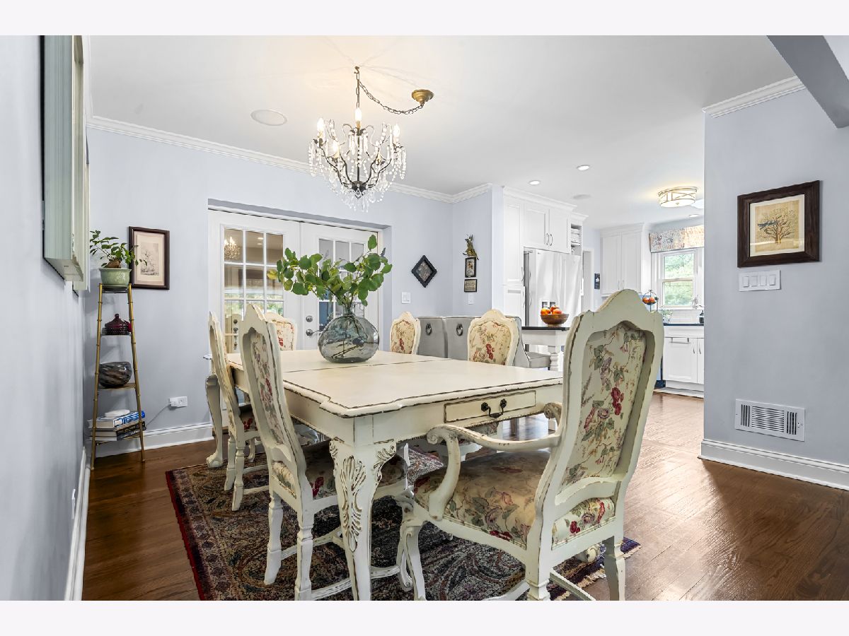 Experience the perfect blend of modern amenities and classic charm in this fully renovated ranch. As you enter, you'll be greeted by a light-filled interior featuring gleaming hardwood floors and a spacious open floor plan. The bright, white kitchen seamlessly flows into a large dining area, ideal for hosting gatherings or enjoying family dinners. An adjacent sunroom with heated stone floors, enhances the versatility of the space, easily serving as an office or additional gathering area. The expansive family room is a highlight, with a central fireplace, and custom built-ins. This home boasts three well-appointed bedrooms, including a master suite complete with a walk-in, cedar lined closet and en-suite bath. The full finished basement provides an abundance of extra living space, perfect for entertaining with its large recreation room with surround sound, another fireplace, wine cellar, and a full bath. Situated on a corner lot, the property features a large bluestone patio and fenced yard, offering an excellent space for outdoor enjoyment. Additional highlights include heated floors in all bathrooms, built-in speakers, an all-brick exterior, new driveway, first-floor laundry with new washer and dryer, all-new appliances and mechanicals, and an attached 2.5-car garage. Conveniently located near Northcroft Park, the Metra, and shopping, this home is move-in ready!