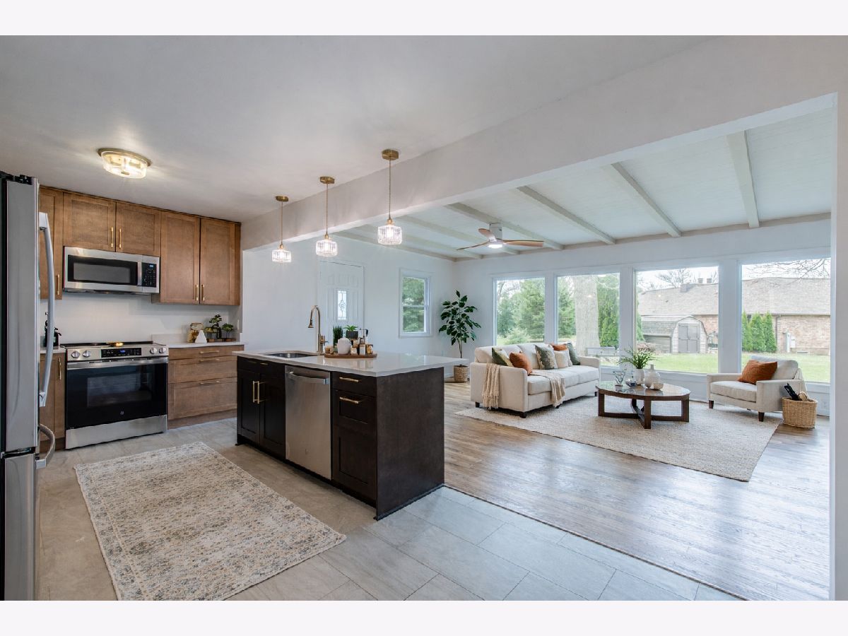 Welcome to the ranch that went from "meh" to "whoa" in record time-fully remodeled between December 2025 and March 2026, because waiting is overrated. Step inside and prepare to be personally greeted by light. Not just any light-brand new vinyl double-hung windows are working overtime to flood this place with sunshine like it's their full-time job. Sunglasses indoors? Optional, but understandable. The former galley kitchen has officially retired and made way for a stunning open-concept kitchen/family room that says, "Yes, you can host Thanksgiving this year." Featuring gorgeous birch cabinetry (soft-close, because slamming is so last decade), full-extension dovetail drawers, sleek Carrara Miksa quartz countertops, and shiny GE stainless steel appliances-this kitchen is ready for everything from gourmet meals to aggressively microwaving leftovers. This home offers 3 nicely sized bedrooms and 1.5 bathrooms, all updated so you won't have to wonder what decade the fixtures are from (hint: it's this one). New toilets, sinks, vanities, and faucets mean everything works exactly how you want it to-what a concept. Cozy up with not one, but two gas fireplaces-because sometimes one fire just isn't dramatic enough. You've got options: living room ambiance or family room vibes. Choose wisely... or don't choose at all. The flooring? Almost entirely brand new, except for the absolutely stunning pegged hardwood floors in the family room, which have been professionally refinished and are now showing off like they know they're the favorite. Major systems? Handled. New central air and furnace mean you can be cool in the summer, warm in the winter, and smug all year round. Outside, the freshly repainted exterior keeps things looking sharp, while the attached 3-car garage ensures there's room for vehicles, hobbies, or that collection you swear isn't getting out of hand. Located at the edge of Sunset Prairie, you get that perfect blend of peaceful surroundings and convenient living. In short: it's stylish, it's updated, it's functional-and it might just make your current place jealous. Broker owned.