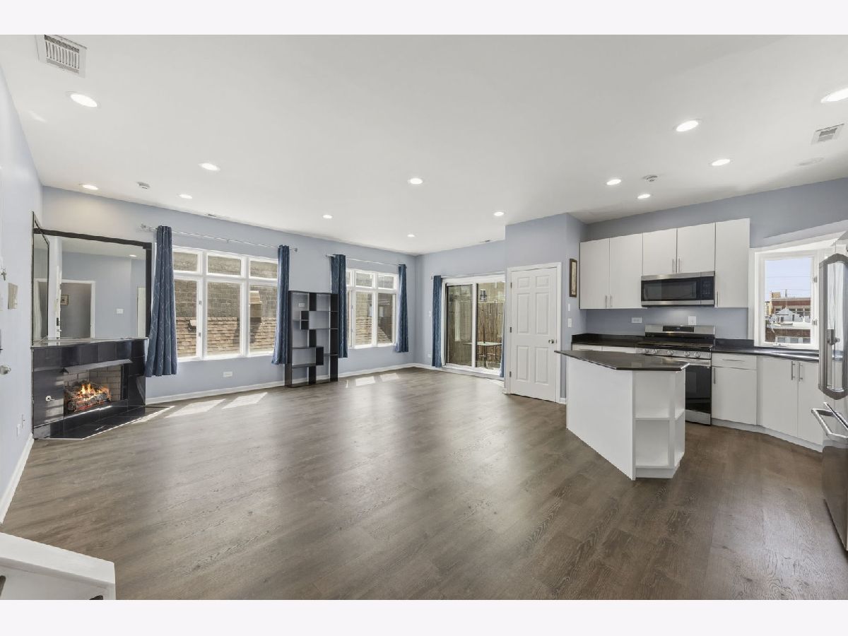 Beautiful 2 bed, 2.5 bath duplex up in the heart of East Ukrainian Village! This top floor home offers an open concept main level with hardwood floors, gas log fireplace, and a private deck perfect for grilling. The kitchen features an island layout and great natural light from west and north exposures. Upstairs, both bedrooms include private ensuite baths, high ceilings, and oversized windows. Additional features include in unit laundry hookup, central air, and a detached garage parking space. A standout feature of this home is the generous common rooftop deck, offering dramatic skyline views and an ideal setting for coffee, cocktails, or gatherings under the glow of Chicago's lights. Combined with its modern updates and premier rooftop access, this residence delivers a heightened living experience in a prime location. Petfriendly, selfmanaged HOA. Steps from Division Street's vibrant dining, shopping, and transit.