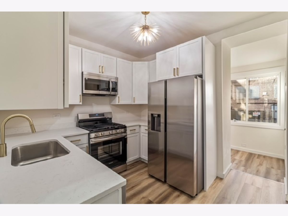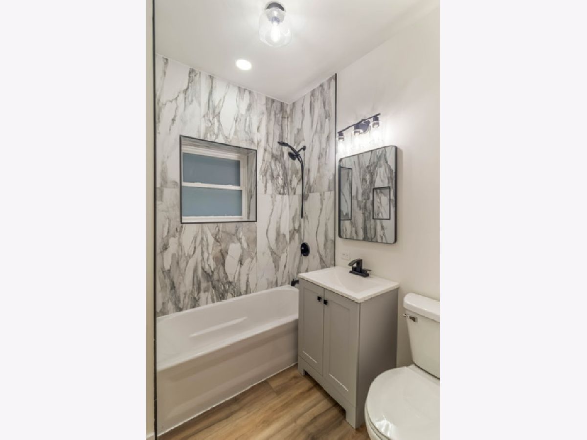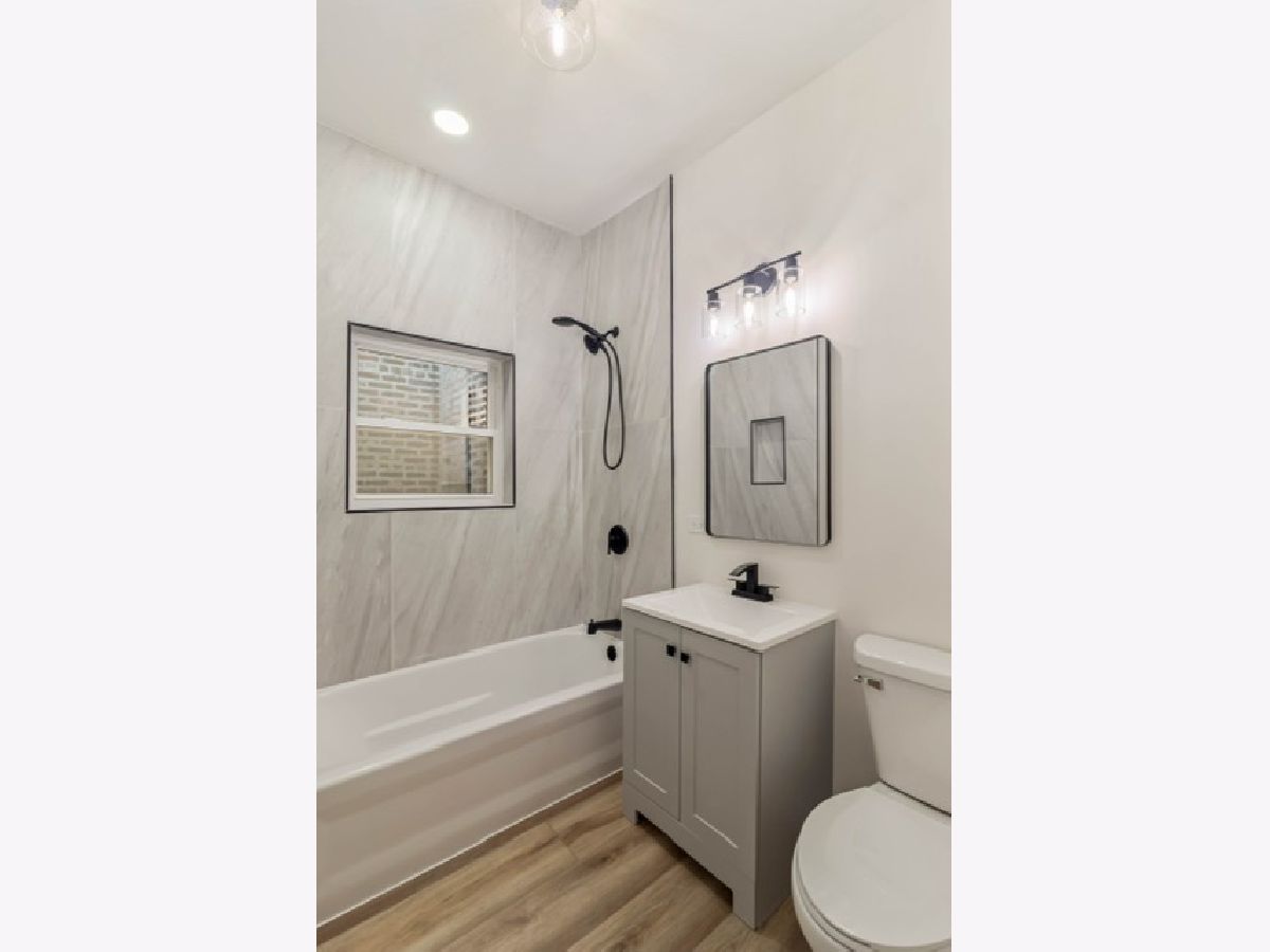 Recently renovated 2-flat offering flexible living and ownership options. The property features extensive updates and modern finishes throughout. The first-floor duplex (main level plus finished basement) includes 3 bedrooms and 2 full bathrooms, with open living and dining areas, wide-plank flooring, recessed lighting, and contemporary fixtures. The finished basement provides additional living space suitable for a variety of uses. A finished rear porch includes washer/dryer hookups. The second-floor unit offers 3 bedrooms and 1 full bathroom with a bright layout and generous natural light. The kitchen and bathroom have been updated with modern cabinetry, countertops, and fixtures. This unit also features a finished rear porch with washer/dryer hookups and a dedicated furnace. Recent improvements include updated kitchens with shaker-style cabinetry, quartz countertops, stainless steel appliances, updated bathrooms with contemporary tile and vanities, new lighting throughout, new concrete on exterior porches and gangway, and a 2.5-car garage concrete slab, currently used for parking (future build potential-buyer to verify). Located on a tree-lined street with convenient access to parks, public transportation, major roadways, and neighborhood amenities.