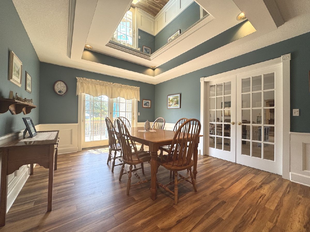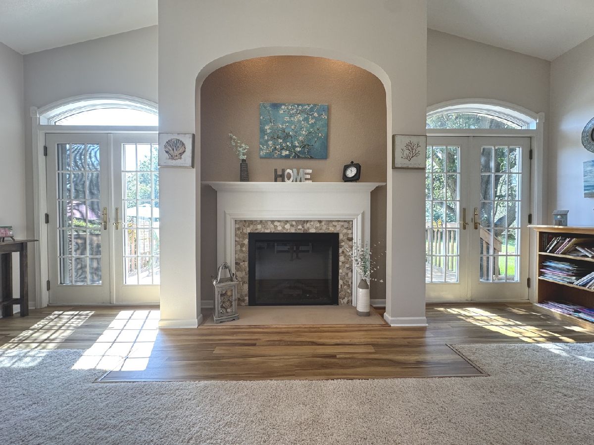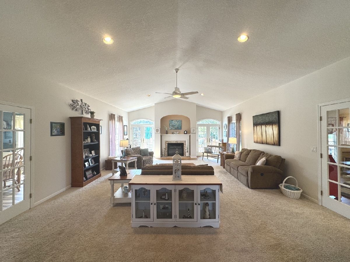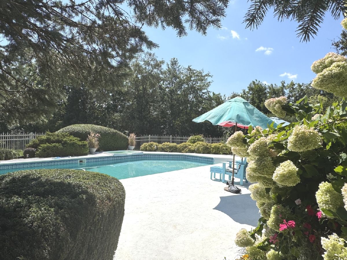 Riverside Country Estates sprawling Ranch of 3000 square feet. Enjoy the serenity of the Forest Preserve from the heated, in ground pool & built-in hot tub! Very private backyard with multilevel deck & sunroom. The spacious Foyer welcomes you in and offers a lovely view into the Formal Living room with updated Electric Fireplace, and French doors to the outdoor space as well as throughout the home. This Brick Ranch offers 3 Bedrooms on the main floor and a possible 4th bedroom in the finished basement including a large game room, pool table is included! Kitchen features a large island, prep sink, BI convection oven and gas range, Corian countertop, seating and perfect spot for a coffee station. The SS appliances were updated in 2023. Large primary ensuite Bedroom with tray ceiling, beautifully updated bath Quartz countertop w/double sinks, tiled shower w/glass doors and whirlpool tub. Relaxing Den w/wet bar and mini fridge. Property is near walking/bike trails and river. 2-zoned Furnaces & Central air units, 2x6 exterior walls. Sun Porch and 3 Cedar decks, plus a side patio for grilling and relaxing. Outdoor sprinkler system, reverse osmosis system & whirlpool tub. Pool Heater and Liner 2022, filter 2025, pool is 3'-9' deep with diving board. Heated 3 Car Garage with new garage doors 2025, drain in garage. Water purification and reverse osmosis, water softener. Well water serves outside faucets and is perfect watering and pool. Circulation hot water pump. Zoeller sump w/battery backup.