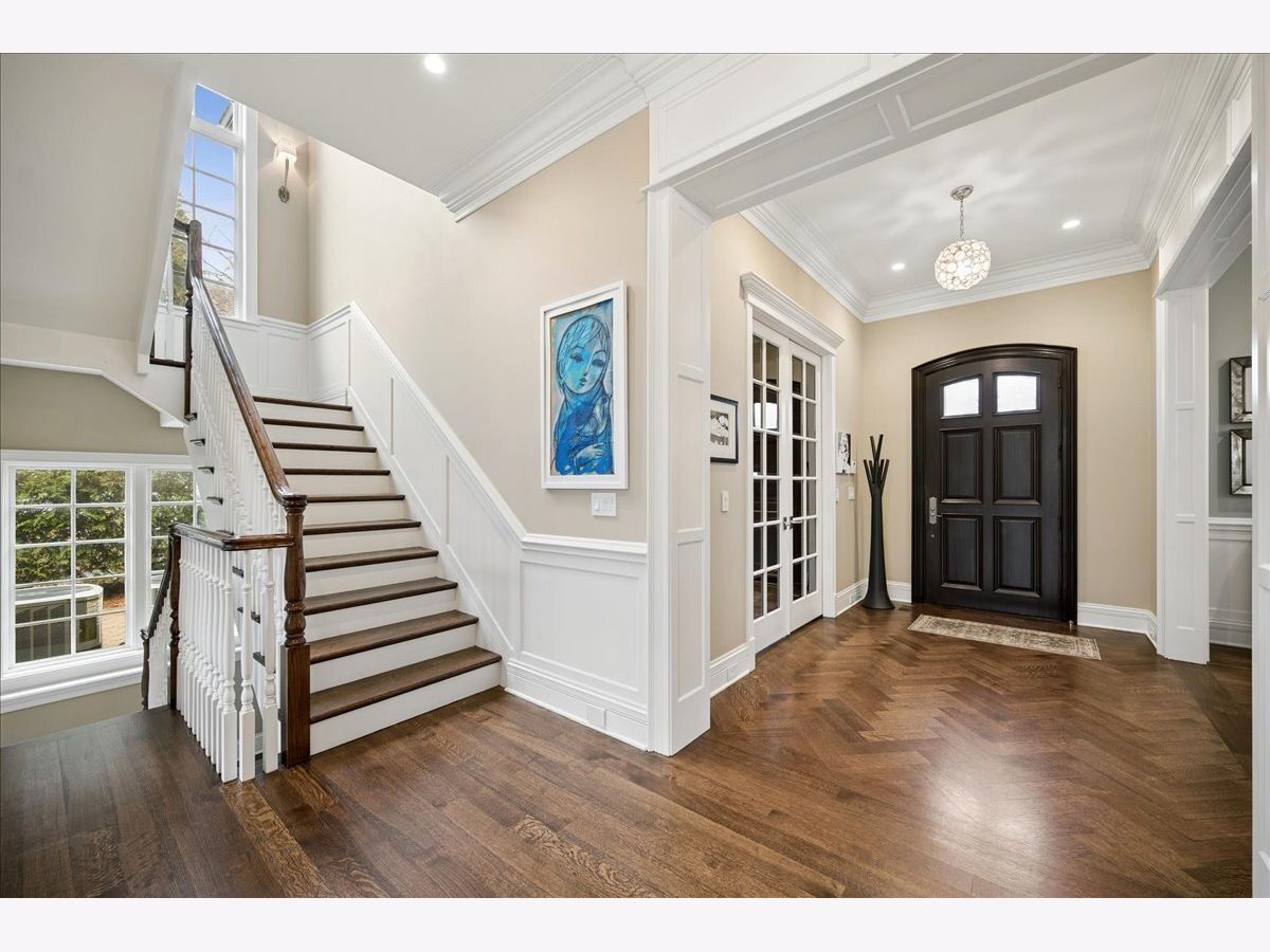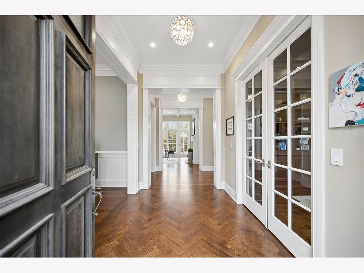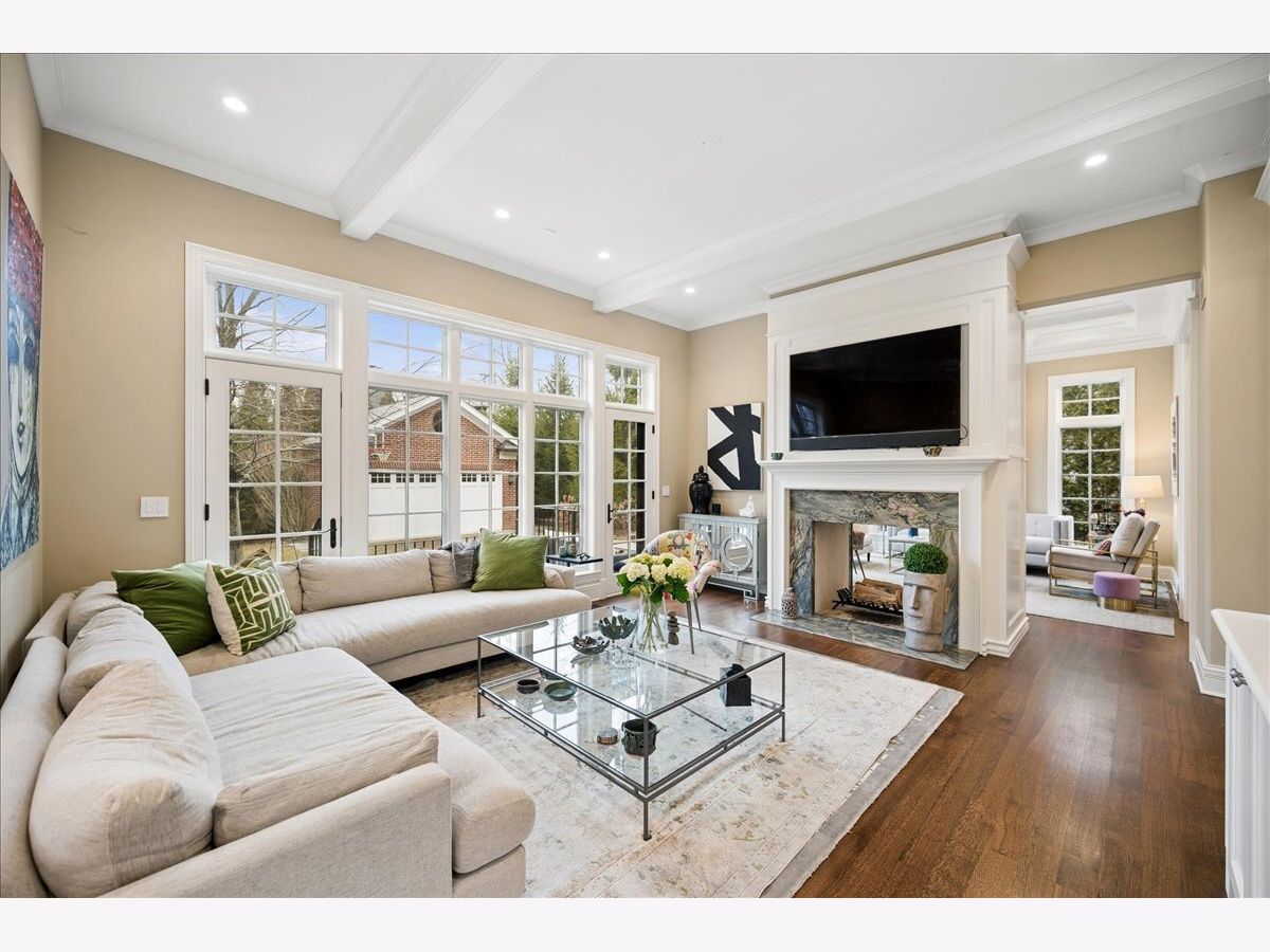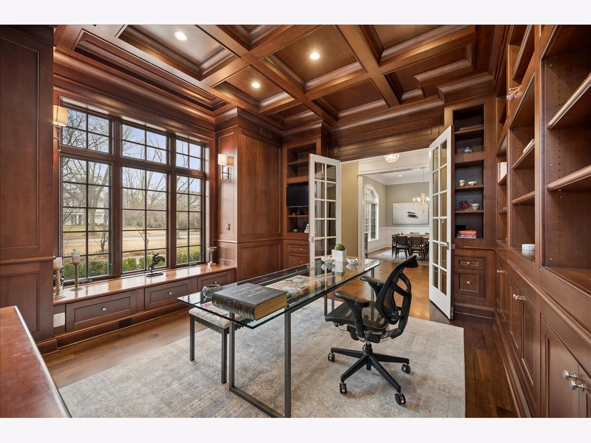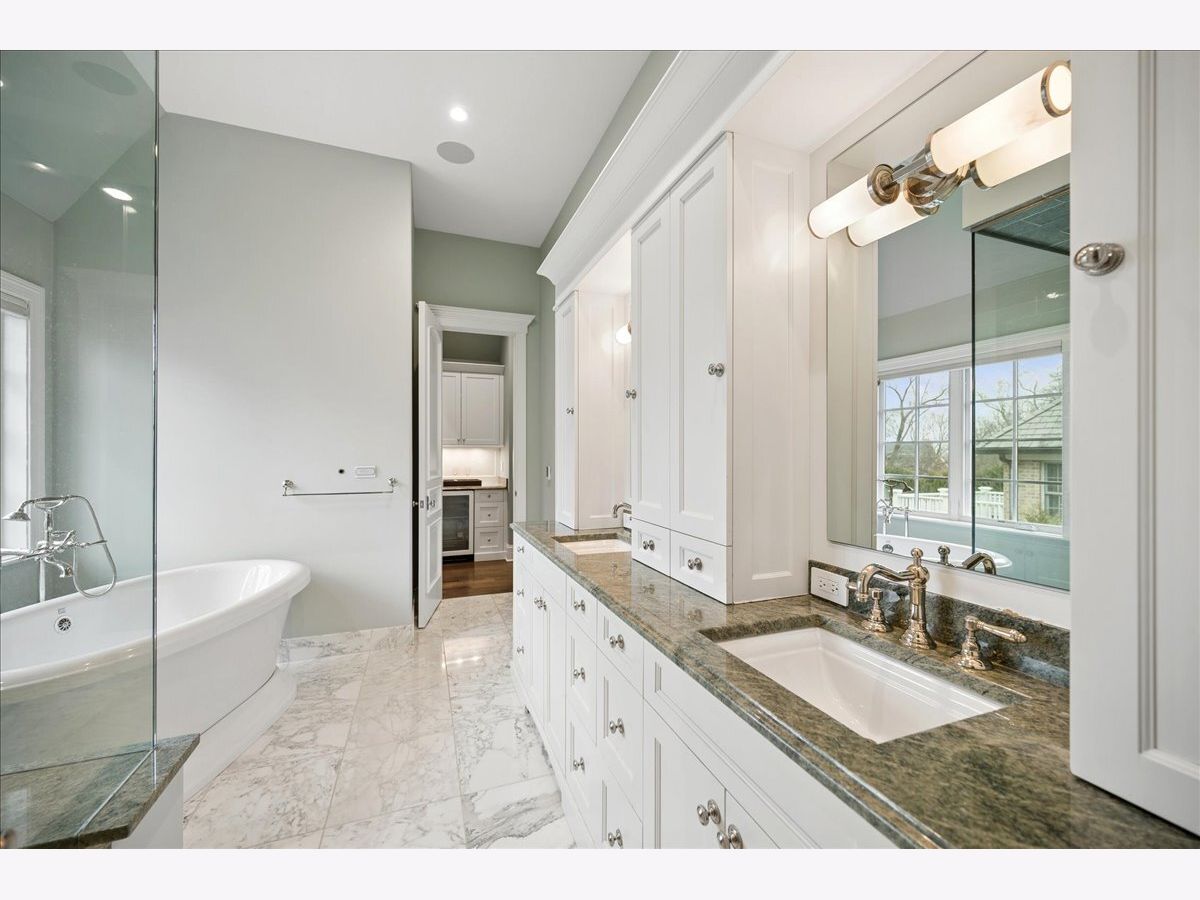 Such a peaceful setting for an exceptional newer brick and stone home (2014) combining classic architecture with modern transitional design on over 1/3 acre in a premier Glencoe location. Masterfully designed offering sophisticated comfort with all the finest materials and lots of life's luxuries: heated driveway leads to both the 2 car attached plus a 2 car detached garage. Grandly scaled rooms, lofty ceilings, an abundance of natural light, exquisite millwork, and a beautiful staircase create an oasis with the perfect balance of gracious gathering spaces. The gourmet chef's kitchen features top-tier appliances, a huge island, abundant custom cabinetry, a spacious breakfast area with views of the lush surroundings, seamlessly flows into the inviting family room which overlooks the professionally landscaped grounds. A handsome and functional see-through fireplace connects to the serene living room. A meandering bluestone patio can be enjoyed across all the rooms in the back of the home. The custom paneled library offers a refined private space, Adjacent to the kitchen, a perfectly-appointed butler's pantry to accommodate all your entertaining needs leads to the elegant dining room perfect for any size gathering. A well-designed and outfitted mudroom with washer and dryer provides access to the attached heated 2 car attached garage with EV charger and epoxy flooring. Upstairs, the primary suite is a luxurious retreat with a stunning fireplace, 2 large walk-in closets, and a luxe bath with a soaking tub, steam shower, and private commode. The second floor is complemented by three large additional en-suite bedrooms and a second-floor laundry room for added ease. The fully finished lower level is designed for entertainment and relaxation with hardwood floors and soaring ceilings featuring a large rec room with a full bar, a custom wine cellar, a fifth bedroom with ensuite bath, an exercise room or optional sixth bedroom or golf simulator room, plus an expansive media room complete with surround sound and theater seating. Outdoors, the private deep backyard with 3 seasons of beautiful blooms in the perennial gardens which frame the bluestone patios can be enjoyed by all with the built-in kitchen and plenty of space to gather and unwind. The utmost in luxurious living at the end of a one of Glencoe's prettiest streets.