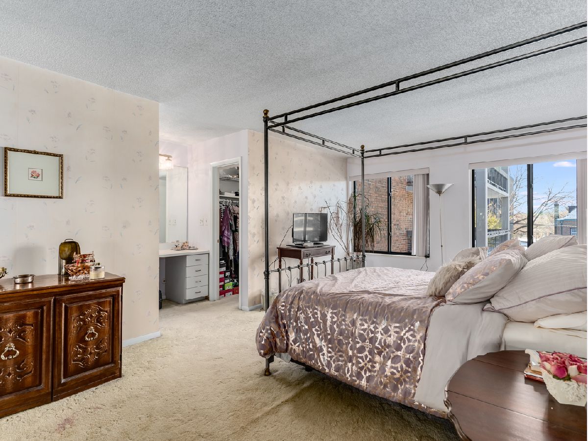 3 bedroom, 2 bath 3rd floor west facing condo located in Landers Home. Secured building with elevator, storage onsite and 2 assigned indoor parking spaces. Brick, 3rd floor quiet condo overlooks the courtyard. Windows & sliding glass doors replaced in 2025. Furnace 2011. Spacious 2,196sf unit with beautiful entryway that overlooks the living room and formal dining room. Lush, warm carpeting accents the neutral colors in LR/DR and overlooks the outdoor balcony to the unit. Galley styled kitchen has 32" oak cabinets/granite countertops/stainless steel appliances & tiled backsplash. Breakfast nook too! 20x12 primary bedroom has closets to the extreme. 2 walk-in closets plus bonus wall of sliding door closets for your personals. Private bath has double vanity sink & shower. Full sized utility room also includes the washer & dryer in the unit. Heated indoor garage for 2 cars.