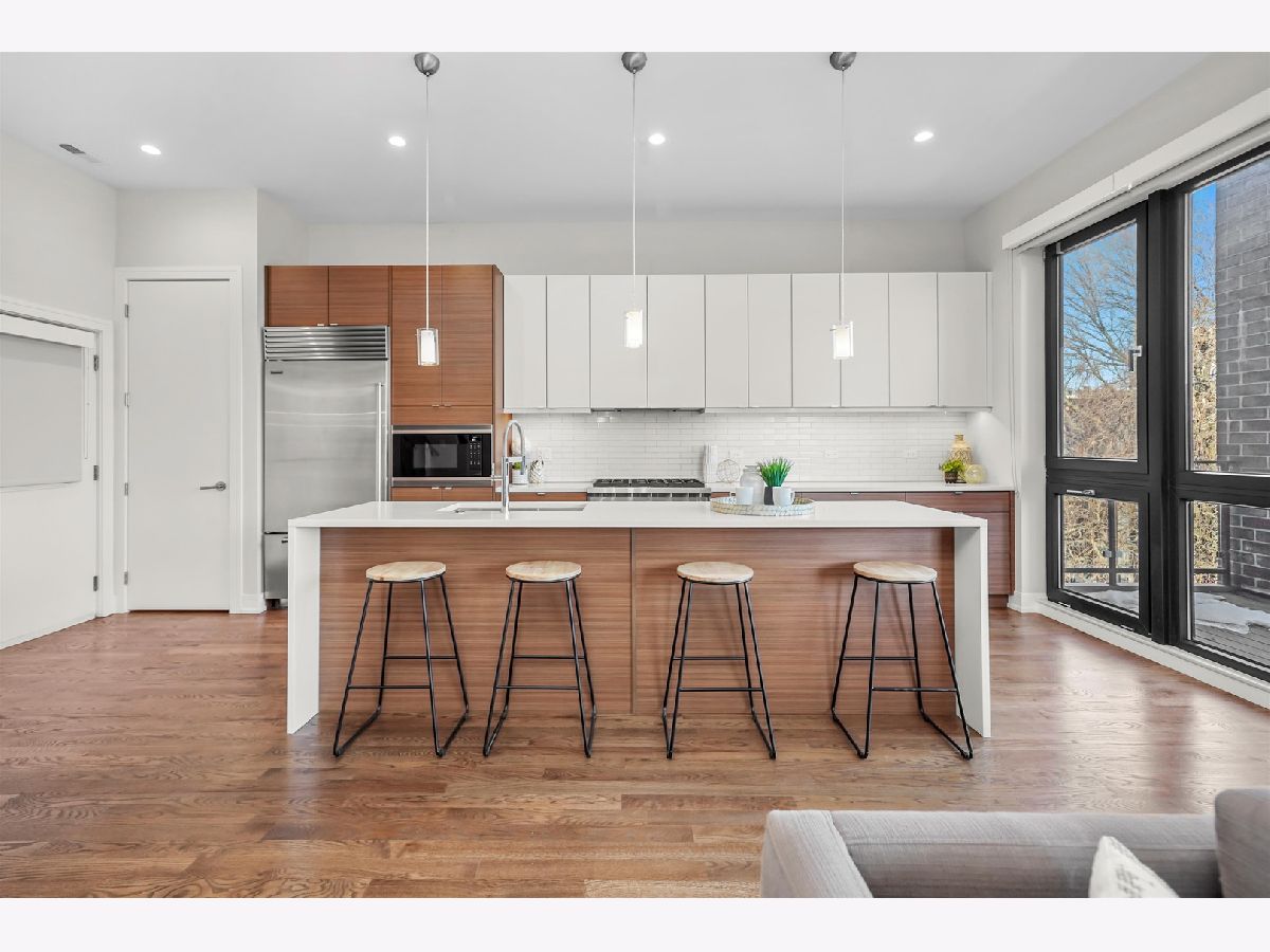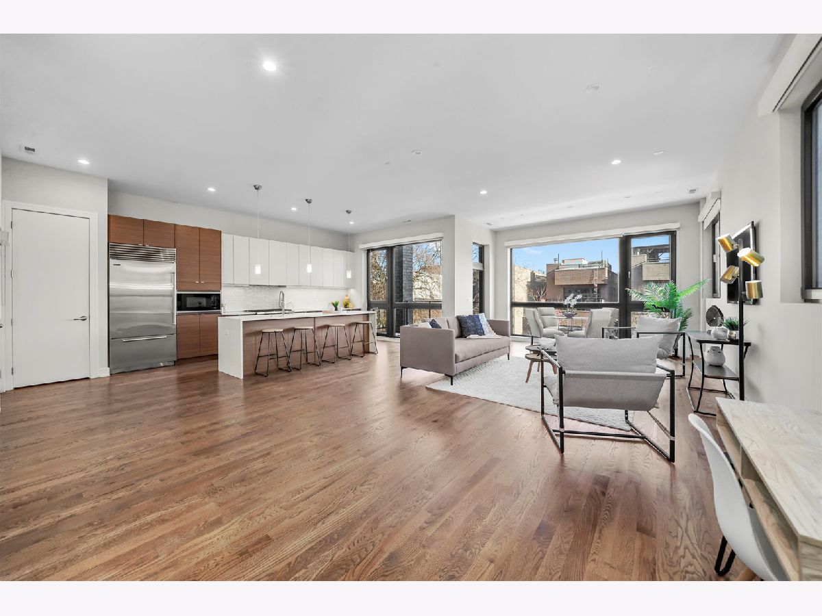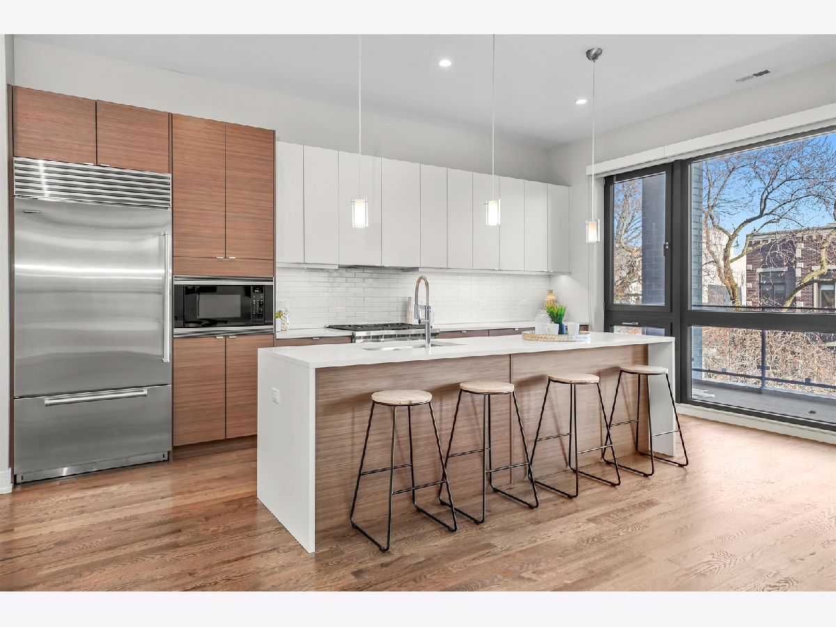 RARE newer construction built in 2016, this stunning 3-bedroom, 2-bath condo sits on an EXTRA WIDE 36' lot just steps from Division Street and seamlessly blends modern design with everyday comfort-plus multiple outdoor spaces, including a private roof deck. Step inside to a light-filled open floor plan designed for a bright, airy living experience. The modern kitchen features top-of-the-line Sub-Zero and Wolf appliances, sleek countertops, abundant storage, and a massive island with seating-perfect for hosting. The spacious living area is filled with natural light from oversized windows and offers direct access to a balcony, one of three outdoor spaces. The expansive primary suite is a true retreat, featuring a spa-like bathroom with a double vanity, steam shower, heated floors, and a walk-in closet. A private balcony off the primary bedroom adds an extra touch of luxury. Two additional bedrooms are generously sized and share a full hall bath. The showstopper of this home is the massive private roof deck-an entertainer's dream with skyline views and endless possibilities for outdoor living. All outdoor spaces feature Trex decking. Additional highlights include in-unit washer/dryer, garage parking, and ample storage throughout. Set in an excellent West Town location, this home truly offers the best of modern city living. Welcome home! Explore the property in 3D-click the 3D button to take a virtual tour and experience every detail.