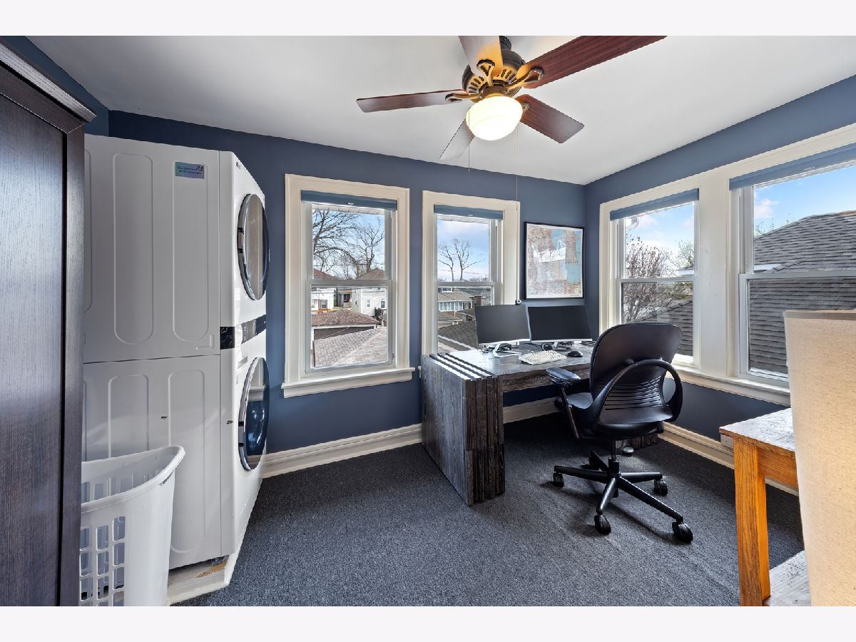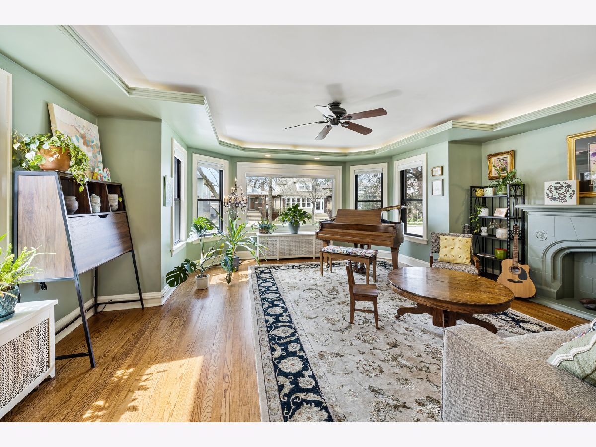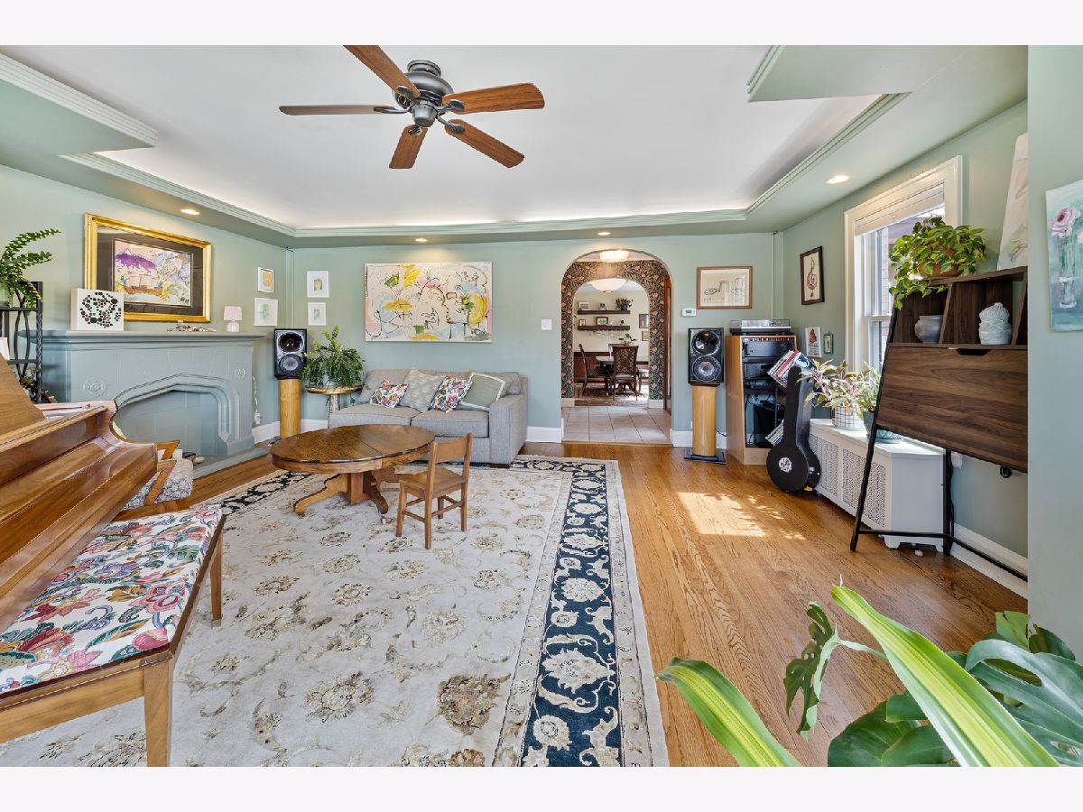 Incredible opportunity to make this all brick and all American Foursquare in northeast Oak Park your home. Proudly perched on a 30X125 lot with a side drive and double-entry two car garage, this 3 bedroom, 1.5 bath home has been lovingly maintained and updated over the course of its life, especially so by the current owners. Upon entry through the extra wide side entrance flanked by leaded glass panel windows, you arrive at a gracious foyer and begin to take in the rich characteristics of this well-built home. The expansive living room with a lighted tray ceiling and decorative stone fireplace is bathed in natural light by large bay windows. The perfectly proportioned dining room boasts a custom ceiling and light fixture, further punctuating the level of craftsmanship found throughout the home. The efficiently designed kitchen has been updated with quartz countertops and stainless appliances and connects to a heated sun room that can be used as a mudroom and/or additional space to enjoy breakfast while admiring the view of the newly refinished deck and yard. Upstairs you will find three generously sized bedrooms, an avant-garde full bathroom equipped with skylights and a renovated rear sleeping porch now serving as the upstairs laundry and home office. Passing through a cleverly positioned half bath on the main level as you make your way downstairs you will find a partially finished basement with sound studio, dedicated workshop and plenty of storage.