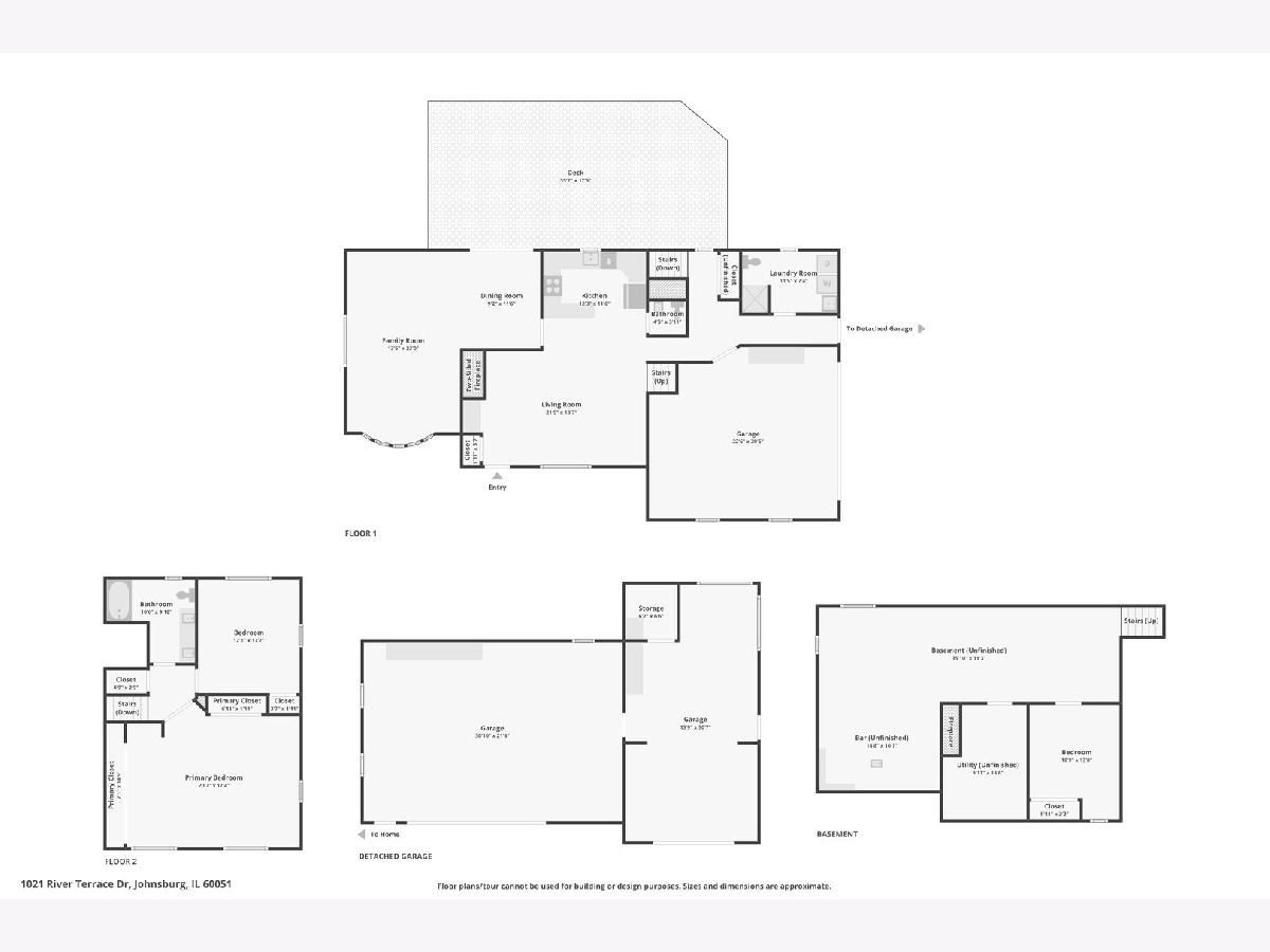 Spacious 2 bedroom, 2.5bath home offering approximately 3,104 sq ft of living space, set on a beautiful 1.29 acre lot in Johnsburg. The main level features a functional and inviting layout with a large family room, living room, dining room, kitchen, laundry room, and convenient powder room, ideal for everyday living and entertaining. Step outside to a huge 36x18 deck, perfect for hosting gatherings or enjoying the expansive property. Upstairs, you'll find a generous primary bedroom, an additional bedroom, and a full bathroom. The home includes a full unfinished basement with outstanding potential, featuring a bar area, utility room, a large 36x11 space ideal for future entertainment, and an 11x14 bonus room with a closet. A standout feature is the additional 3 car garage, complete with fully functioning heating and cooling, making it the perfect workshop or hobby space with year round comfort. Adding even more value, the property includes a .17acre riverfront lot located directly across the street, offering scenic views and extra outdoor enjoyment. With ample space, privacy, and endless customization potential, this property presents a fantastic opportunity for buyers looking to add value and make it their own. Home is being sold "As Is'