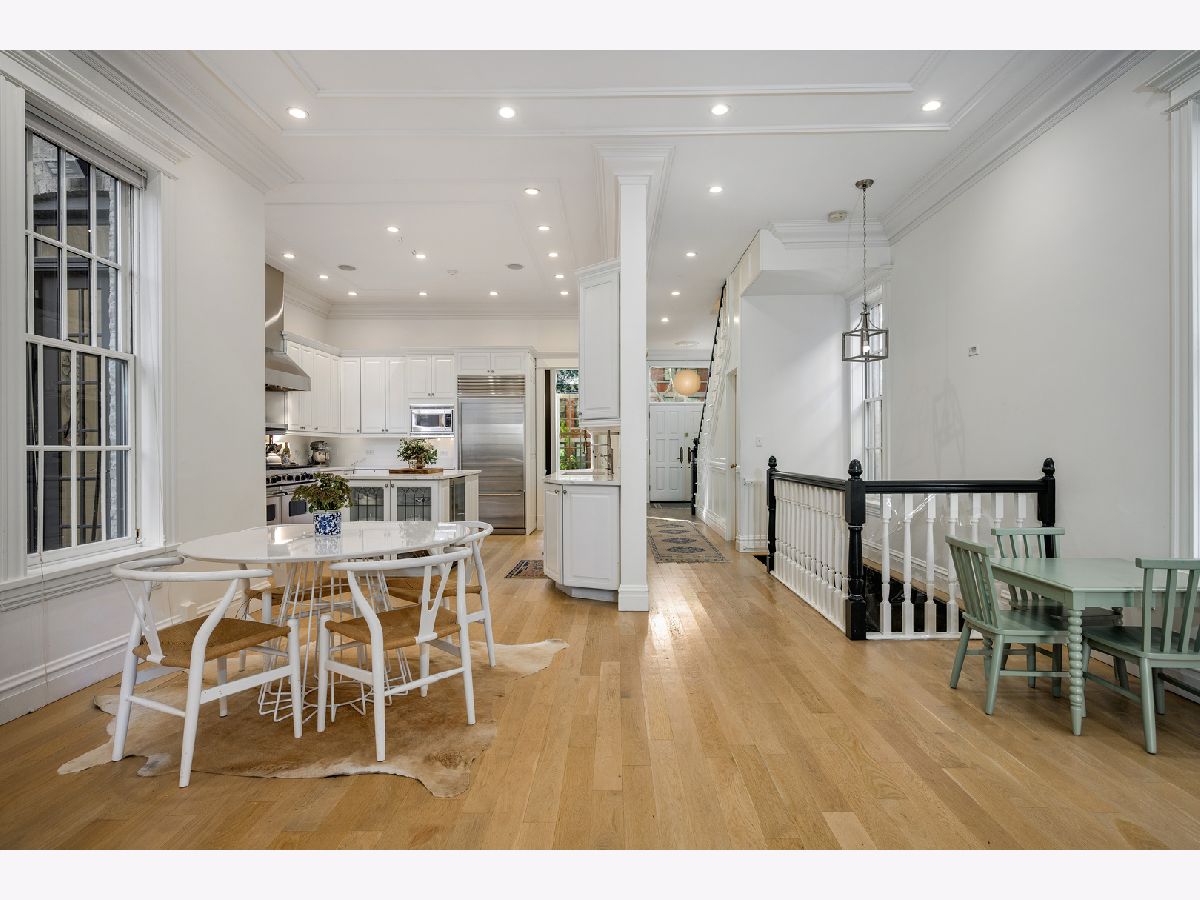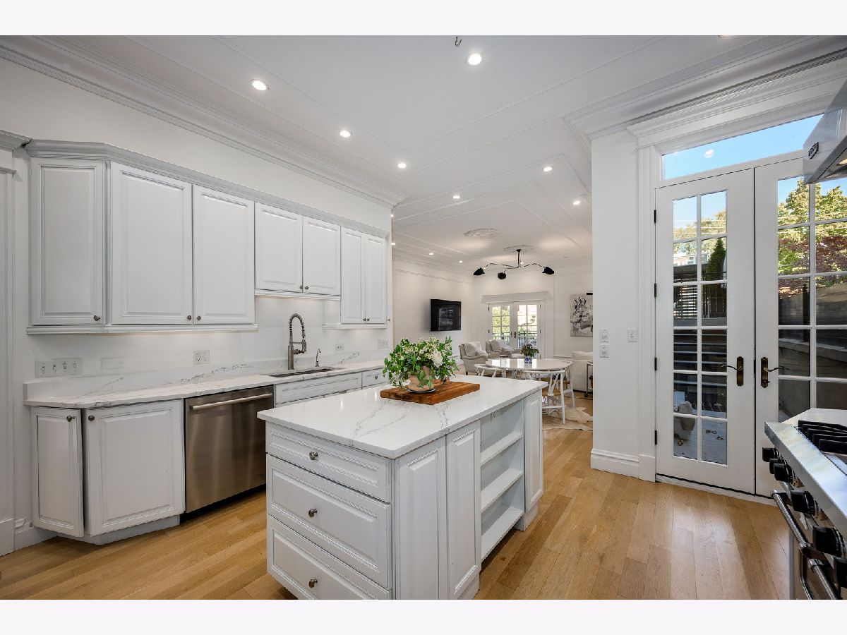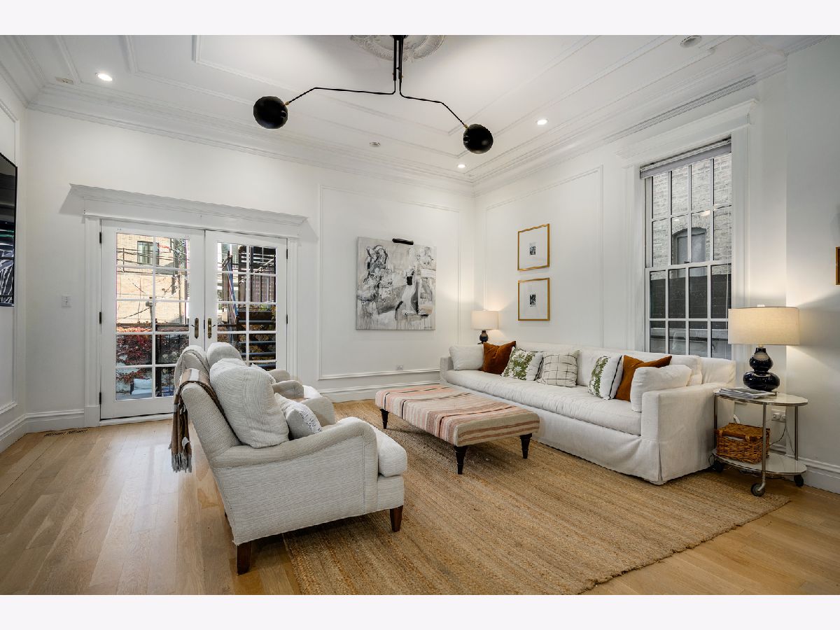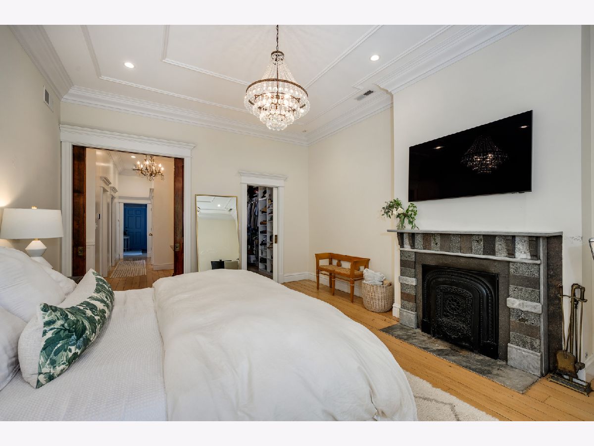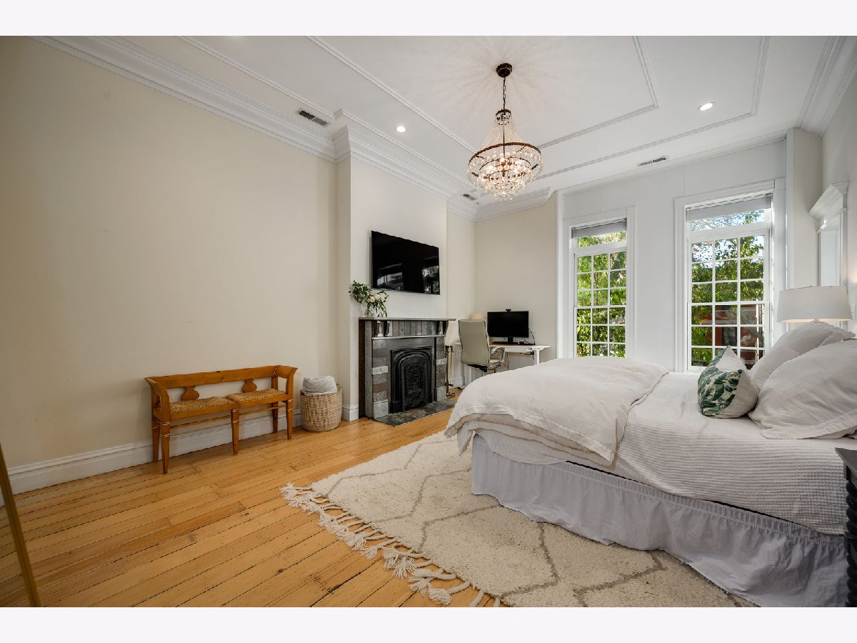 Presenting a picture-perfect Lincoln Park vintage row home on a rare 31'-wide lot, offering exceptional craftsmanship, historic charm, and modern luxury throughout. Originally built in 1878 and rehabbed in 2008, this extraordinary 4-bedroom home has been thoughtfully reimagined with custom antique woodwork, beautiful vintage doors, Marvin windows, and three fireplaces, creating a seamless blend of old-world character and contemporary amenities. Flooded with southern light, the gracious entry welcomes guests with a custom tile foyer and grand staircase. The spacious dining room with a beautiful fireplace provides the perfect entertaining area for friends and family. The chef's kitchen is both classic and functional, featuring white cabinetry, quartz countertops, and professional grade appliances with direct access via a new steel walkway to the custom attached garage roof deck. A large family room with tons of windows and natural light open to the kitchen makes a perfect family space. The second floor offers three bedrooms, including an expansive primary suite with fireplace, generous closet space, and large attached primary bathroom. Stunning original, wide plank hardwood floors, two additional spacious bedrooms, a hall bath and upstairs laundry round out the charming top floor. The lower level is designed for comfort and entertainment, featuring radiant heated floors, a large open family room with custom built-ins, another fireplace, two large storage rooms and an extra large bedroom with an ensuite full bathroom perfect for guests. Large double doors open directly to the backyard, creating more effortless indoor-outdoor living. Outdoor spaces abound, including a private, beautifully hardscaped backyard with ivy covered walls walls, and multi level above-garage custom deck with fire pit. An attached garage for one car, with lots of storage room for bikes and outdoor toys. Ideally located in the heart of Lincoln Park, just steps from DePaul University, Jonquil Park, Oscar Mayer School, public transportation, restaurants, shopping, and everything this vibrant neighborhood has to offer.