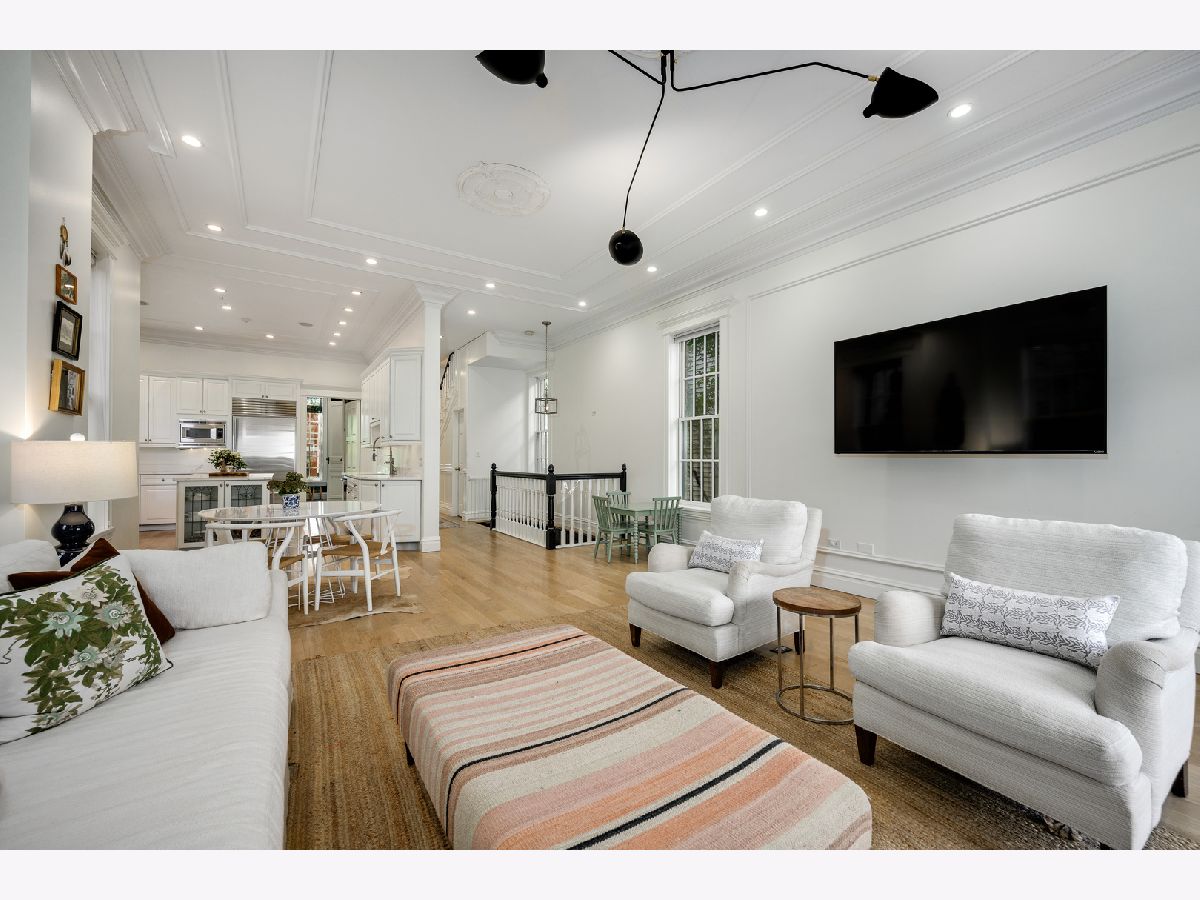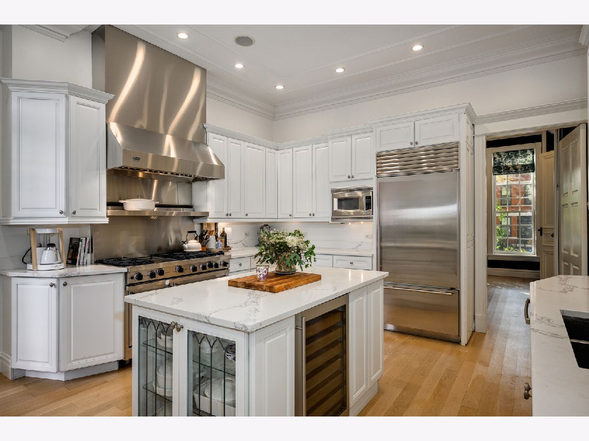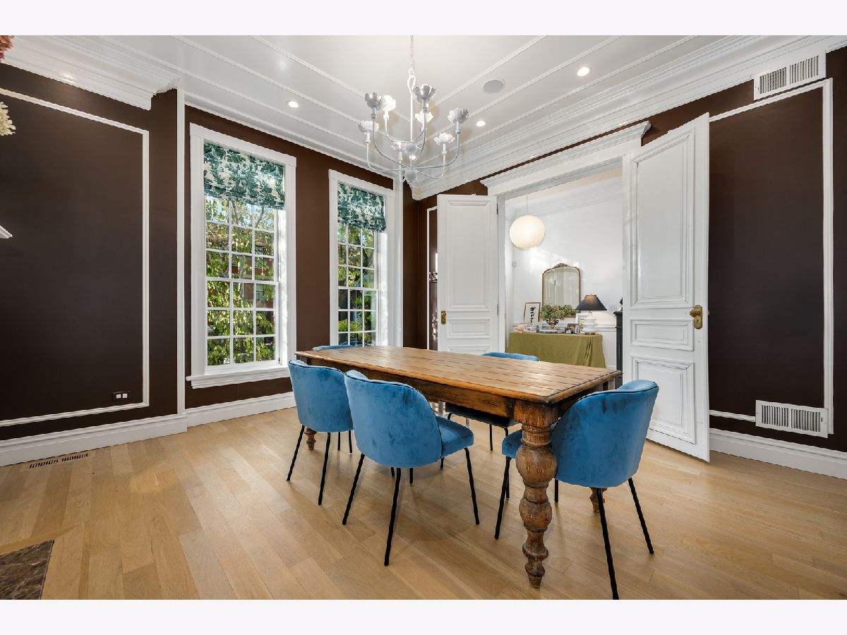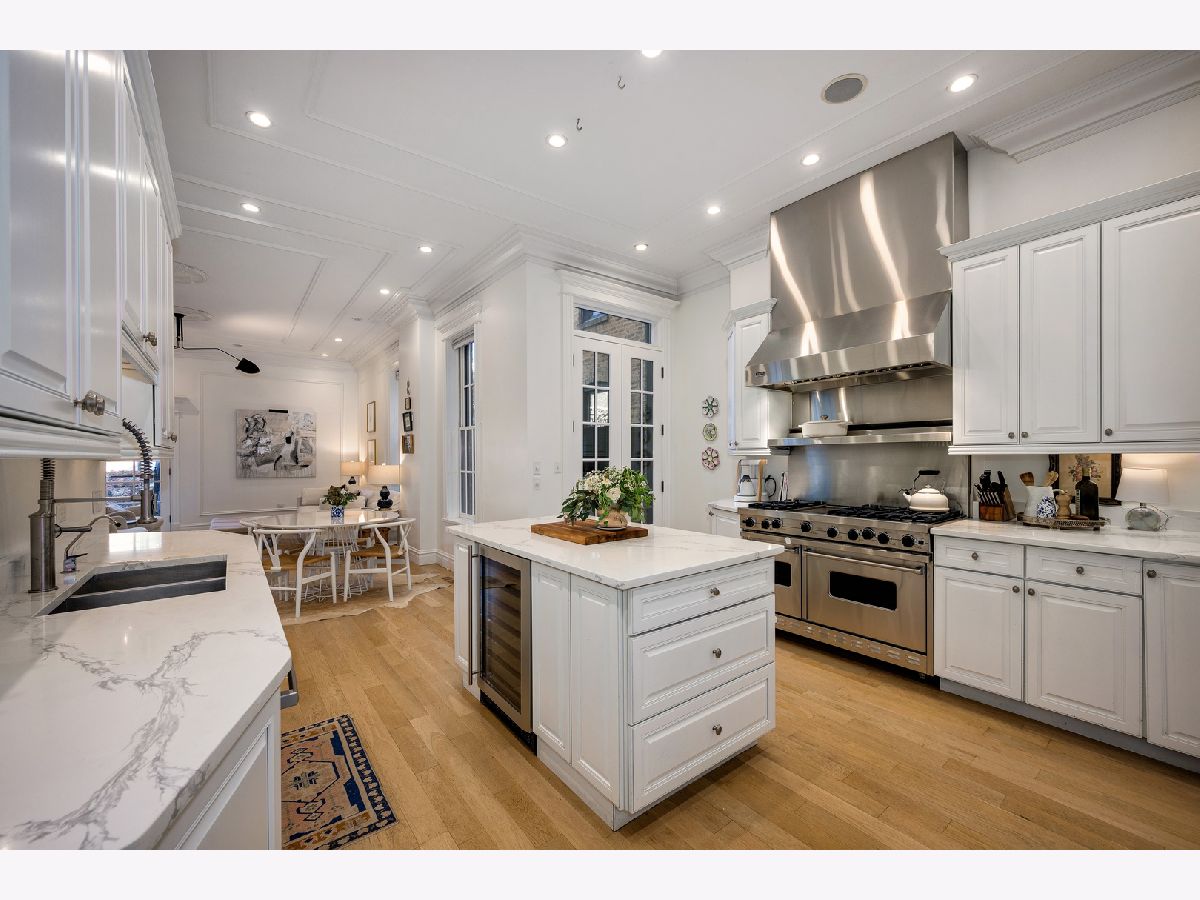 Presenting a picture-perfect Lincoln Park vintage row home on a rare 31'-wide lot, offering exceptional craftsmanship, historic charm, and modern luxury throughout. Originally built in 1878 and rehabbed in 2008, this extraordinary 4-bedroom home has been thoughtfully reimagined with custom antique woodwork, beautiful vintage doors, Marvin windows, and three fireplaces, creating a seamless blend of old-world character and contemporary amenities. Flooded with southern light, the gracious entry welcomes guests with a custom tile foyer and grand staircase. The spacious dining room with a beautiful fireplace provides the perfect entertaining area for friends and family. The chef's kitchen is both classic and functional, featuring white cabinetry, quartz countertops, and professional grade appliances with direct access via a new steel walkway to the custom attached garage roof deck. A large family room with tons of windows and natural light open to the kitchen makes a perfect family space. The second floor offers three bedrooms, including an expansive primary suite with fireplace, generous closet space, and large attached primary bathroom. Stunning original, wide plank hardwood floors, two additional spacious bedrooms, a hall bath and upstairs laundry round out the charming top floor. The lower level is designed for comfort and entertainment, featuring radiant heated floors, a large open family room with custom built-ins, another fireplace, two large storage rooms and an extra large bedroom with an ensuite full bathroom perfect for guests. Large double doors open directly to the backyard, creating more effortless indoor-outdoor living. Outdoor spaces abound, including a private, beautifully hardscaped backyard with ivy covered walls walls, and multi level above-garage custom deck with fire pit. An attached garage for one car, with lots of storage room for bikes and outdoor toys. Ideally located in the heart of Lincoln Park, just steps from DePaul University, Jonquil Park, Oscar Mayer School, public transportation, restaurants, shopping, and everything this vibrant neighborhood has to offer.