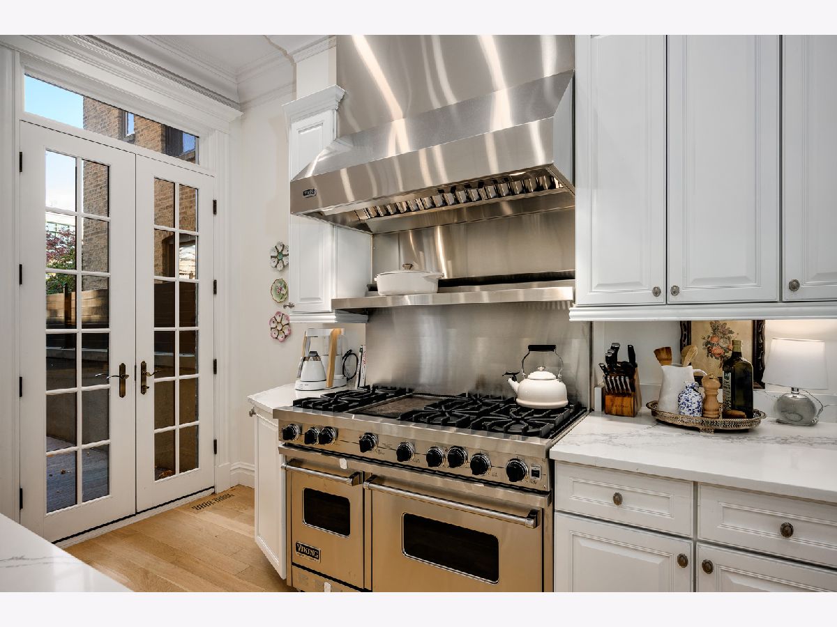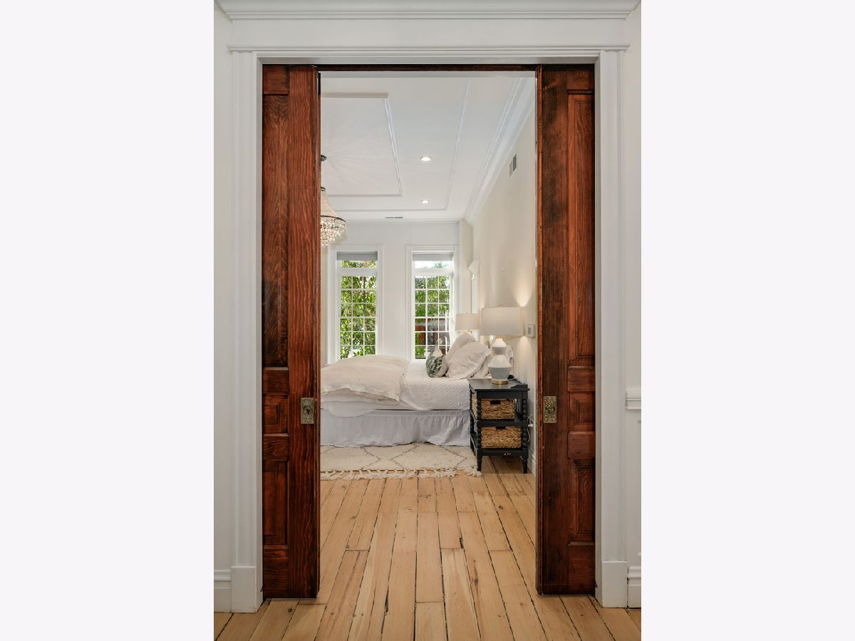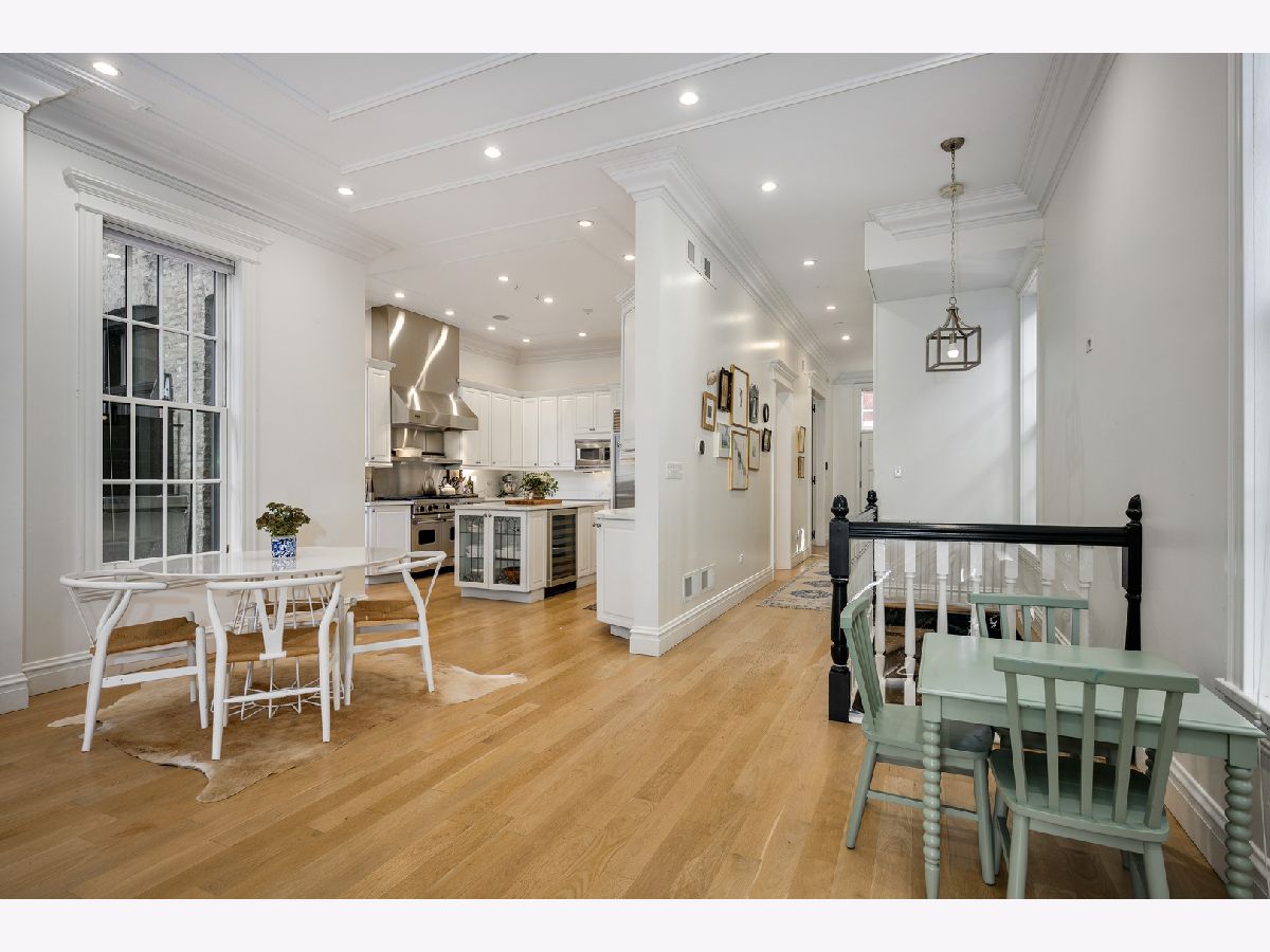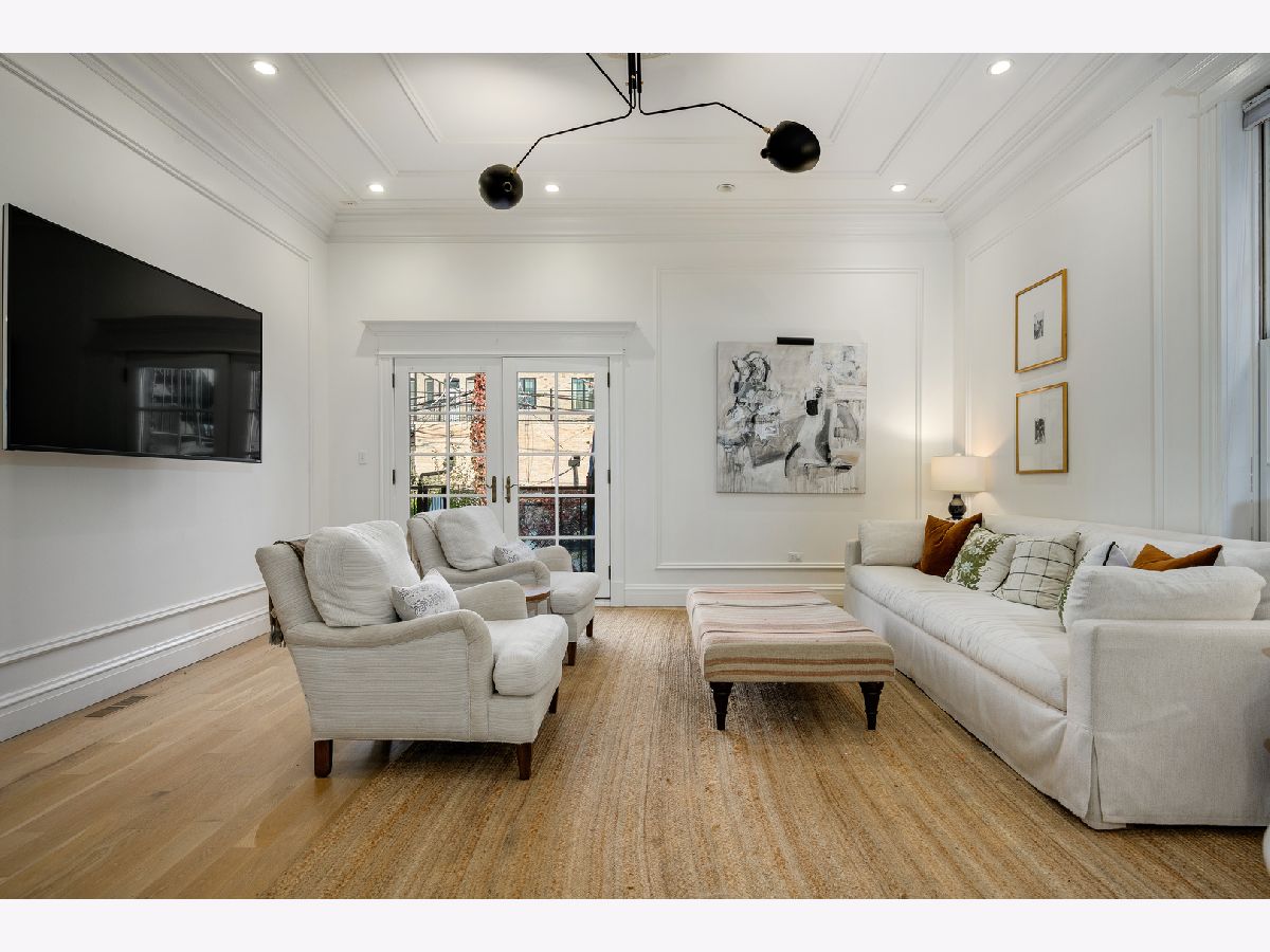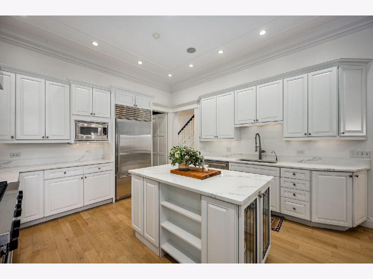 Presenting a picture-perfect Lincoln Park vintage row home on a rare 31'-wide lot, offering exceptional craftsmanship, historic charm, and modern luxury throughout. Originally built in 1878 and rehabbed in 2008, this extraordinary 4-bedroom home has been thoughtfully reimagined with custom antique woodwork, beautiful vintage doors, Marvin windows, and three fireplaces, creating a seamless blend of old-world character and contemporary amenities. Flooded with southern light, the gracious entry welcomes guests with a custom tile foyer and grand staircase. The spacious dining room with a beautiful fireplace provides the perfect entertaining area for friends and family. The chef's kitchen is both classic and functional, featuring white cabinetry, quartz countertops, and professional grade appliances with direct access via a new steel walkway to the custom attached garage roof deck. A large family room with tons of windows and natural light open to the kitchen makes a perfect family space. The second floor offers three bedrooms, including an expansive primary suite with fireplace, generous closet space, and large attached primary bathroom. Stunning original, wide plank hardwood floors, two additional spacious bedrooms, a hall bath and upstairs laundry round out the charming top floor. The lower level is designed for comfort and entertainment, featuring radiant heated floors, a large open family room with custom built-ins, another fireplace, two large storage rooms and an extra large bedroom with an ensuite full bathroom perfect for guests. Large double doors open directly to the backyard, creating more effortless indoor-outdoor living. Outdoor spaces abound, including a private, beautifully hardscaped backyard with ivy covered walls walls, and multi level above-garage custom deck with fire pit. An attached garage for one car, with lots of storage room for bikes and outdoor toys. Ideally located in the heart of Lincoln Park, just steps from DePaul University, Jonquil Park, Oscar Mayer School, public transportation, restaurants, shopping, and everything this vibrant neighborhood has to offer.