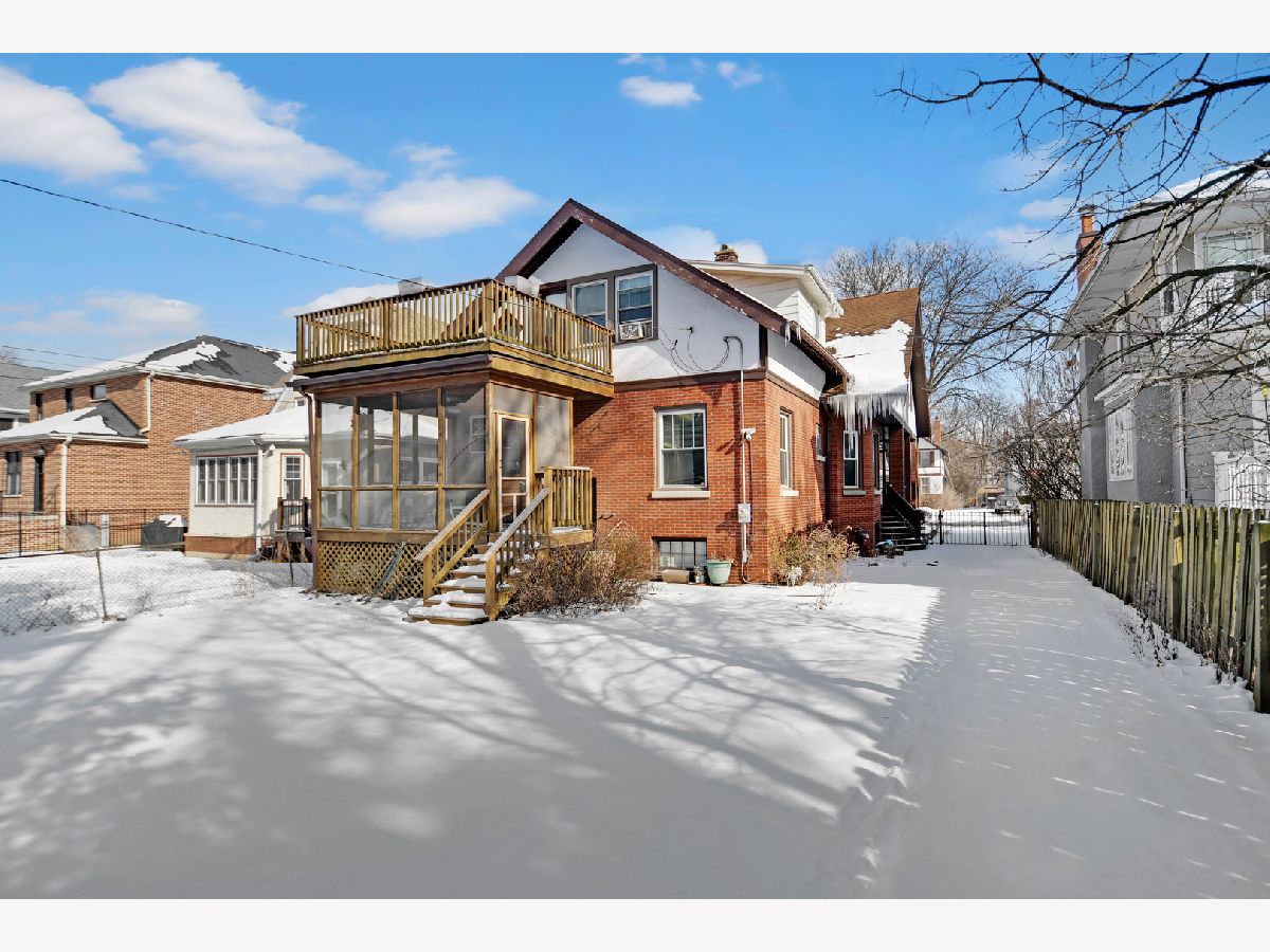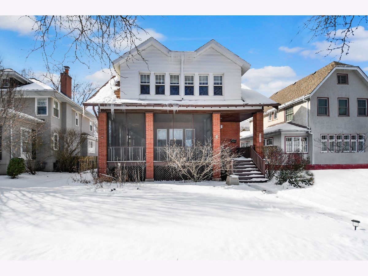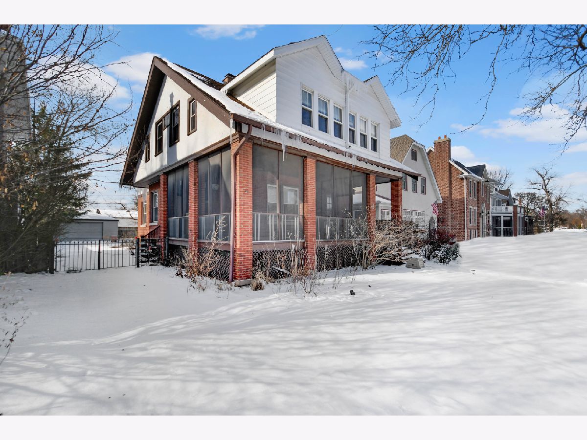 If you're looking for authentic yesteryear charm, you absolutely must see this thoughtfully crafted, Prairie-influenced Chicago American Foursquare set on an oversized lot with a side drive, nestled in a storybook-like, highly sought-after Beverly location. Brimming with charm and character, its inviting curb appeal welcomes you onto a gracious screened-in wraparound front porch. Step inside to discover a warm and inviting interior featuring classic hardwood floors, colonial white trim, and beautifully handcrafted moldings and doors throughout. The gracious living room offers a fireplace and built-in bookcases and flows seamlessly into an adjacent family room with bay windows and an additional door leading back to the wraparound porch. The efficiently designed galley kitchen provides ample cabinet and counter space and includes a stainless steel oven/range and dishwasher. Adjacent to the kitchen is a convenient dining room accented with classic wainscoting, along with a flexible fifth bedroom ideal for a home office or den. A delightful screened-in back porch just off the kitchen adds to the home's charm. Upstairs, you'll find all bedrooms, including a spacious front primary suite with beautiful windows and a walk-in closet, as well as a rear bedroom with access to a private balcony. Outside, enjoy a summer-ready, fully fenced backyard with a side drive leading to an oversized 2.5-car garage. A full basement provides excellent storage space. Winning charm at every turn-bring your favorite rocker and schedule your easy viewing today!