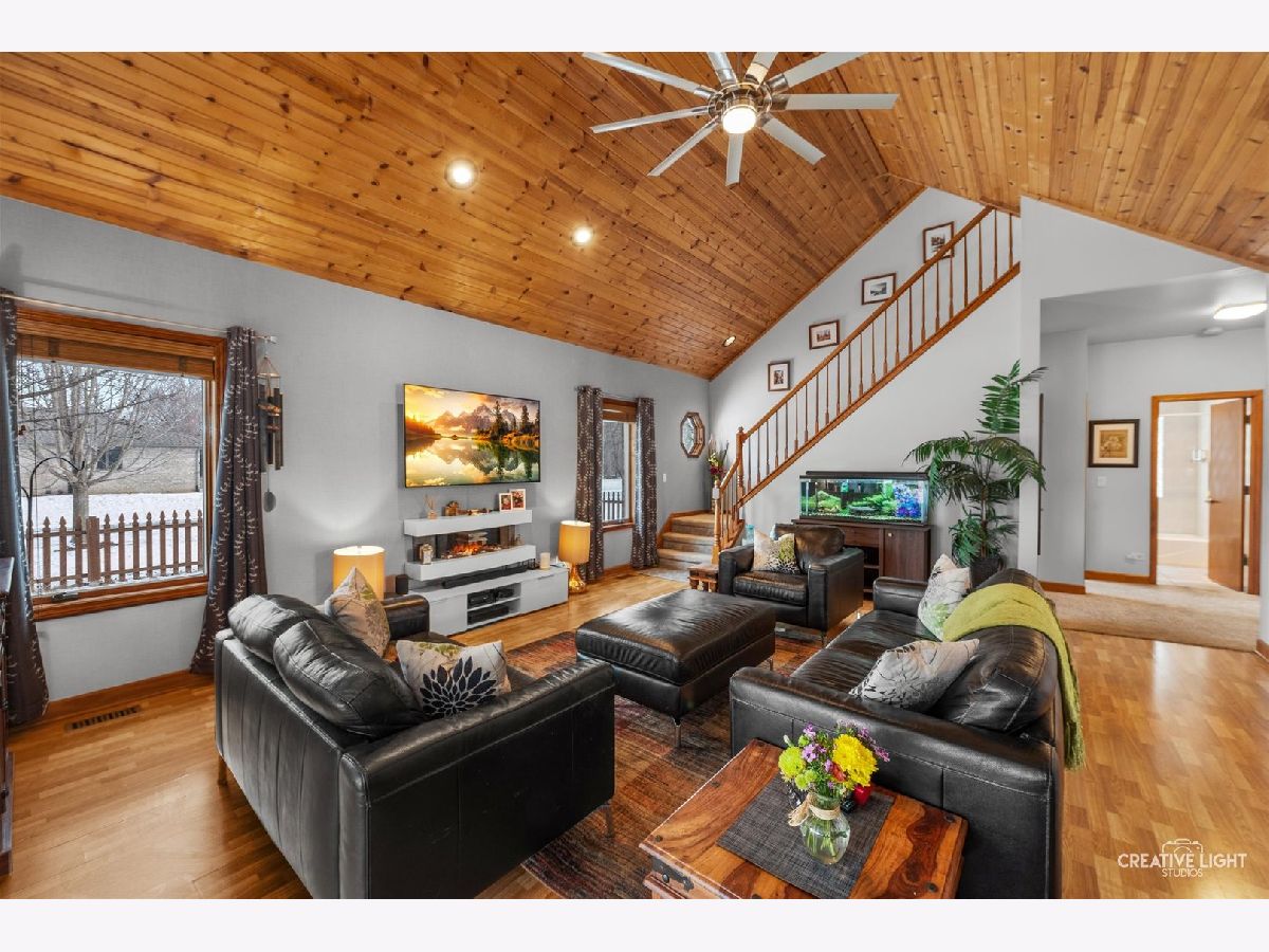 This custom-built home truly checks all the boxes! Featuring 4 bedrooms and 3 full baths, this beautifully maintained property is situated on a corner lot in the desirable Cimarron Subdivision of Yorkville. Thoughtful landscaping provides exceptional privacy while still offering convenient access to everything Yorkville has to offer. Step into a welcoming foyer that opens to a spacious living room with vaulted ceilings. The updated kitchen features solid-surface countertops, modern appliances, a walk-in pantry, and direct access to the garage (with the option to convert the pantry into a main-floor laundry). The dining area opens to a deck and fenced backyard, ideal for entertaining or relaxing. The yard extends beyond the fence line to mature pine trees on the east side and includes a storage shed. Three additional bedrooms and a full bath complete the main level. The second floor offers a private primary suite with a large walk-in closet and an en-suite bath featuring a separate tub and shower. The fully finished basement expands your living and entertaining space with a bar area, pool table room, family room, full bath, and a versatile flex space perfect for a home office, workout area, or hobby room, along with laundry and storage. Roof New in 2025. Solar Panels are paid in full and significantly reduce electric bill. A massive, heated 3.5 car garage with 200 amp service. One bay easily accommodates a full-size truck. Come see this exceptional home-you won't be disappointed!