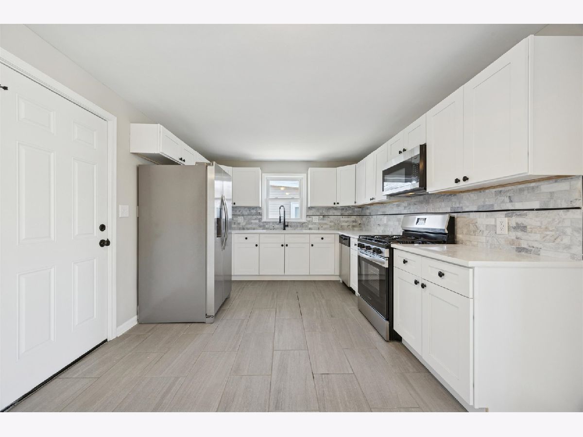 Fantastic opportunity to own this beautifully remodeled home offering over 2,000 square feet of finished living space, plus a finished recreation room in the basement. The home features gorgeous hardwood flooring throughout the living room and bedrooms. The entry leads to the living room with fireplace that is open to the kitchen. Enjoy a completely updated kitchen with white cabinetry, light and elegant quartz countertops, and new stainless-steel appliances, along with fully renovated bathrooms. The stunning family room showcases cathedral ceilings and a second fireplace, creating a bright and inviting space. Two sliding doors lead to a deck and fenced backyard, complete with a storage shed-perfect for outdoor enjoyment. Abundant natural light fills the home through thermal pane windows. Other major updates include all new lighting, carpeting, refinished hardwood flooring, a new furnace and air conditioning (2025) and a newer roof (2021). The basement also offers a large storage room for added convenience. Call today to schedule your private showing.