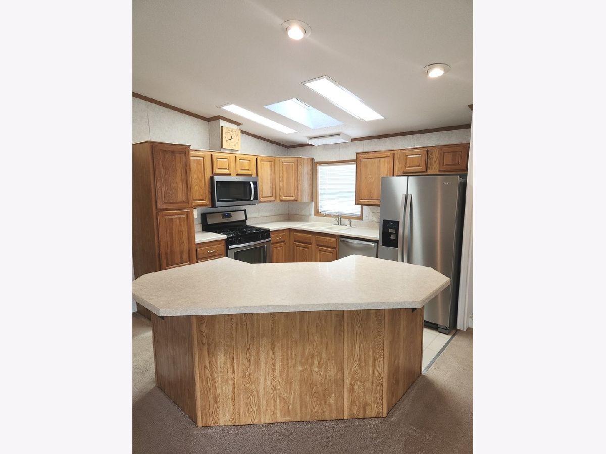 The Exclusive Oak Ridge Sun Community presents its finest manufactured home featuring 3 bedrooms and 2 full bathrooms. Spacious rooms throughout with oakwood cabinets in the kitchen along with a skylight for natural lighting. Built in breakfront with stain glass in the dining area, master bedroom suite and master bedroom bathroom with garden tub, separate shower and walk in closet. The home has vaulted ceilings throughout.. The appliances include a new refrigerator, microwave and disposal and a 2024 range/oven. The Washer is 2022 and the dryer is 2024. The roof was installed in 2020. The mechanicals including a newer AC unit and energy efficient furnace along with thermal pane windows create a comfortable atmosphere along with cost saving efficiency. There is a front porch accessible by sliding patio doors for outside relaxation. The 2 car garage is in excellent condition with a full side drive to pull up and unload your groceries or packages. The home has been professionally cleaned and is move in ready. Oak Ridge is an adult 55+ community with quiet tree lined streets.