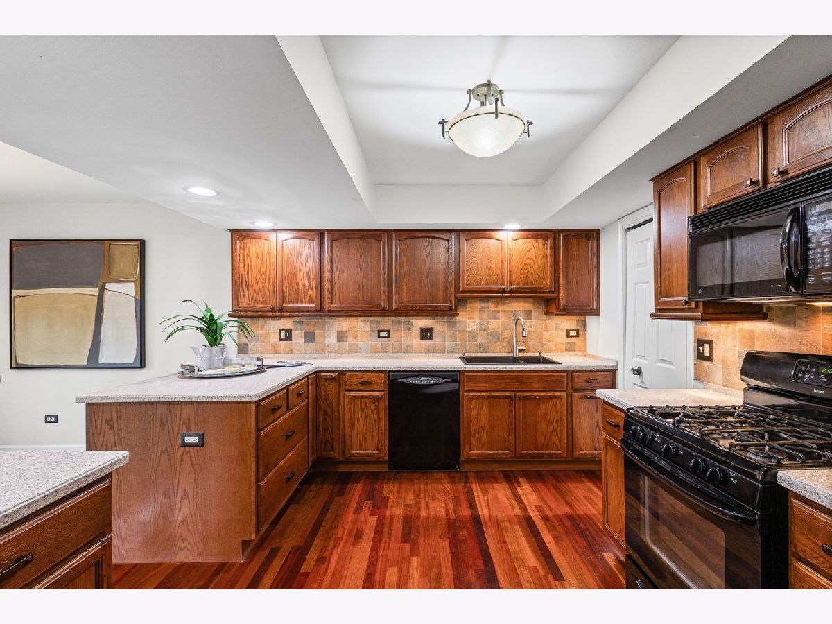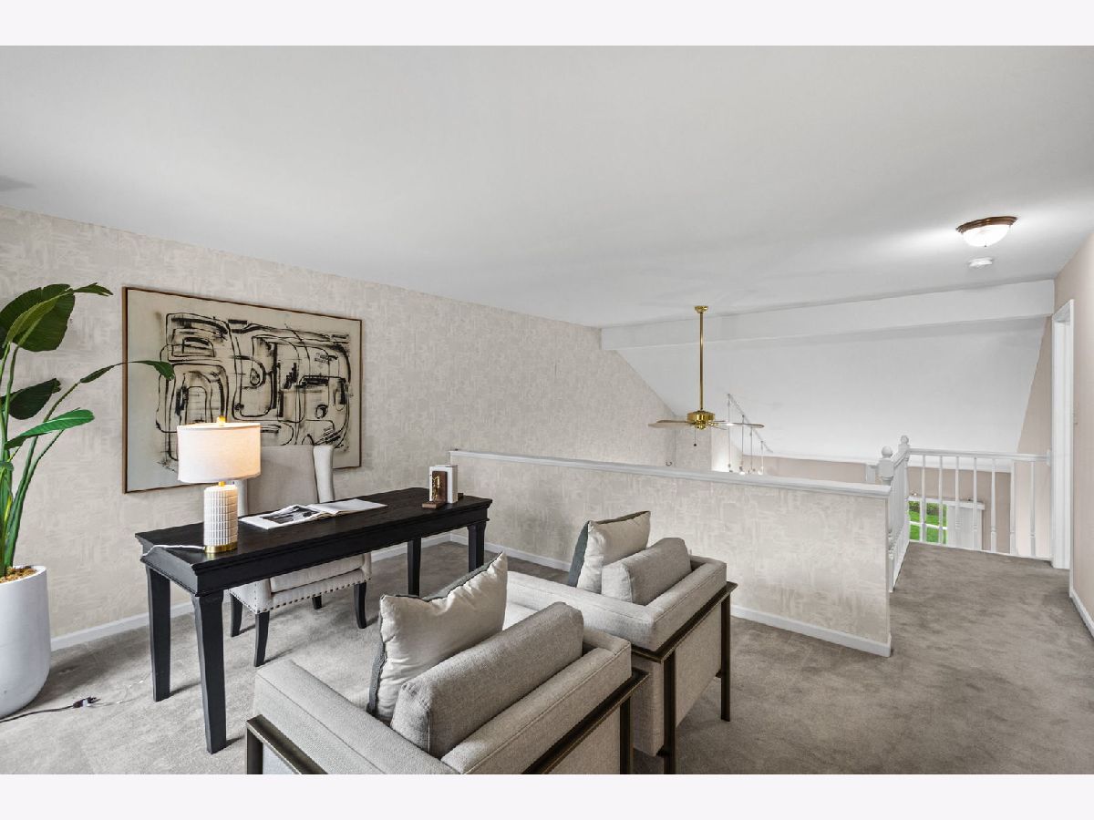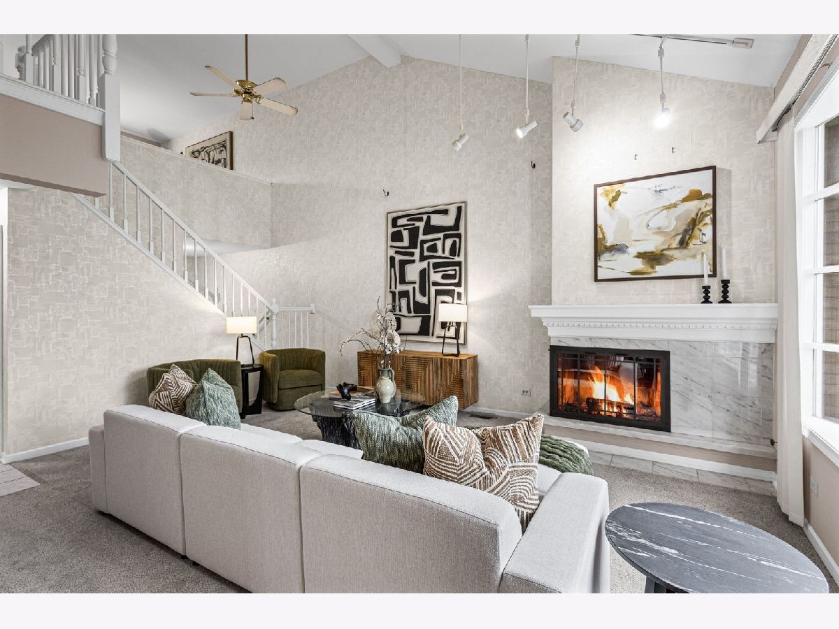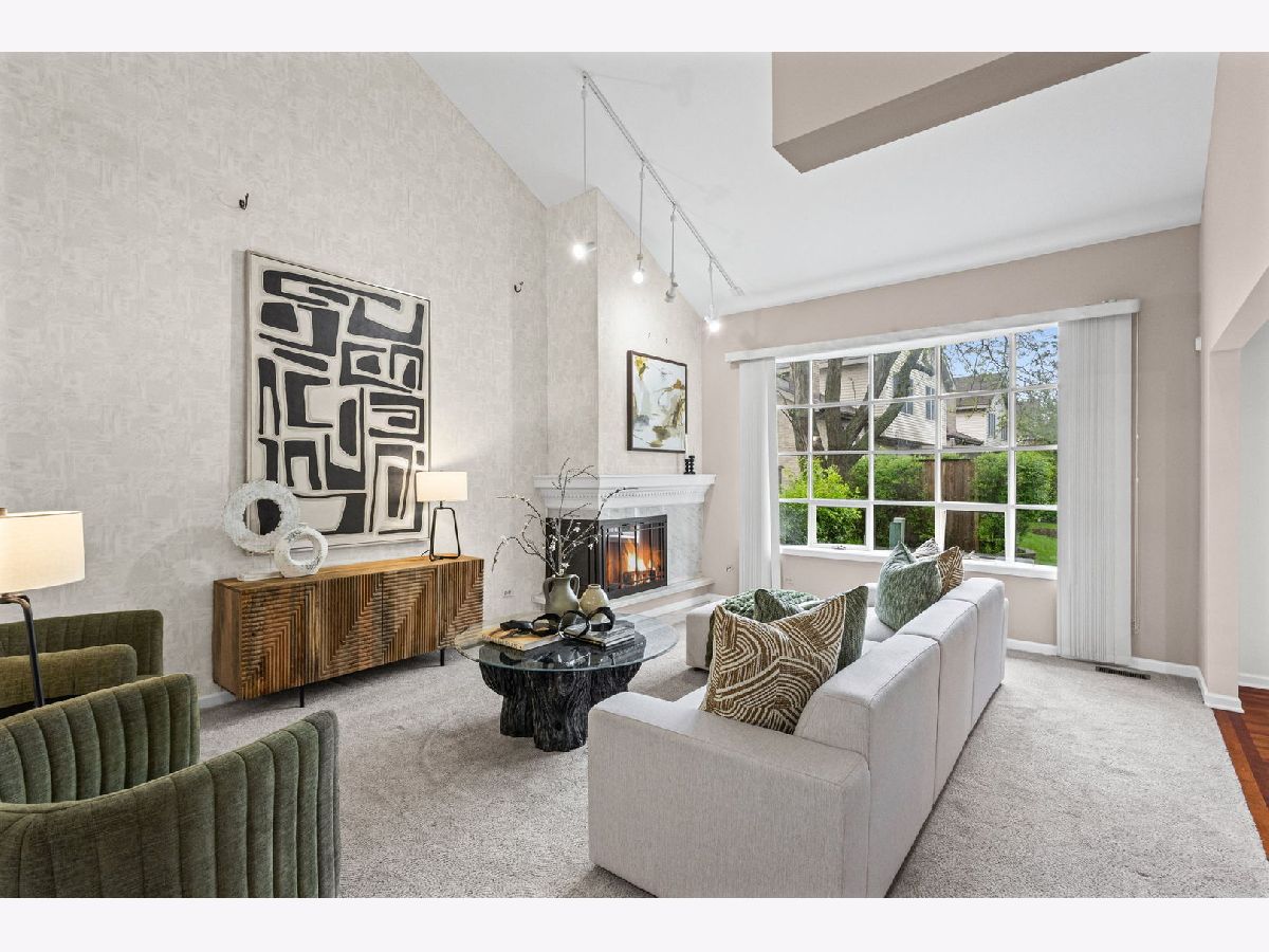 No maintenance living in a convenient location. Discover the perfect blend of comfort and convenience in this meticulously updated townhouse. Nestled in a quiet, leafy setting surrounded by mature trees, this home backs to expansive open green space, offering the tranquility of a backyard without the upkeep.The interior impresses with a dramatic two-story family room, anchored by a cozy fireplace and ample natural light. The layout features two spacious bedrooms plus a versatile loft, perfect for a home office. Recent premium upgrades include: updated primary bathroom; finished lower level with recreation room and additional bathroom; a no-maintenance composite deck; clean, epoxy-coated garage flooring. Located near 75th Street and Lemont Road, you are minutes from premier shopping, dining, and expressways. Experience low-maintenance luxury today.