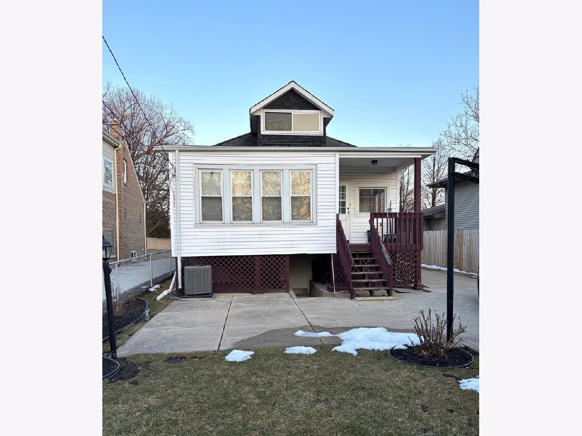 Mt. Greenwood value in a Great location! Charming one-and-a-half-story home situated on a spacious lot with cement side drive. Many improvements have been made over the years, including vinyl siding with aluminum fascia, soffits, gutters, and downspouts, as well as thermopane replacement windows. Enclosed front entry leads to formal foyer leading to living room and separate dining room. Two bedrooms on main level (one of them has been converted into family room off kitchen) and can be converted back easily. Main level also offers enclosed back porch conveniently used as an office. Second level offer two bedooms with spacious closets and a half bath. Unfinished walk-out basement leading to a fenced yard. HVAC replaced 12/2025. This is an estate sale being sold "as is".