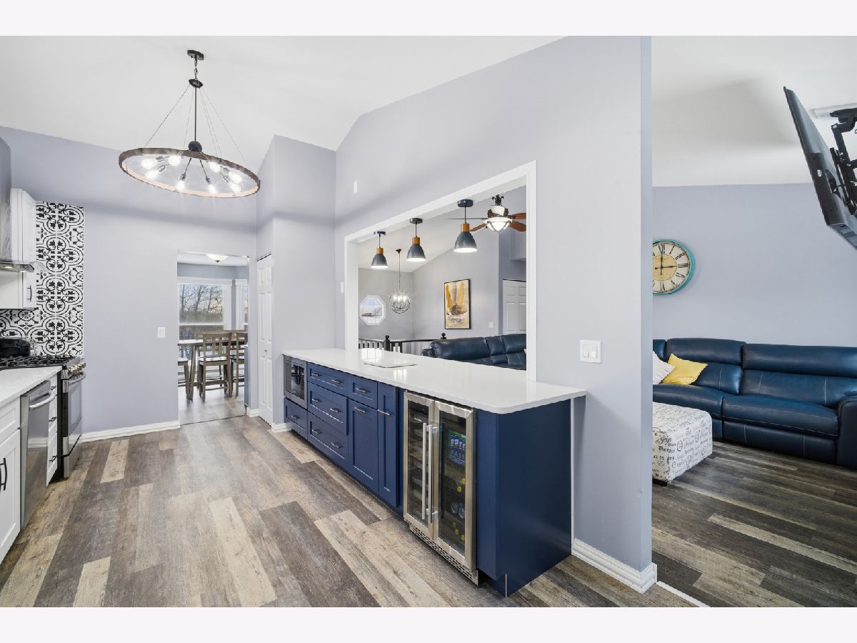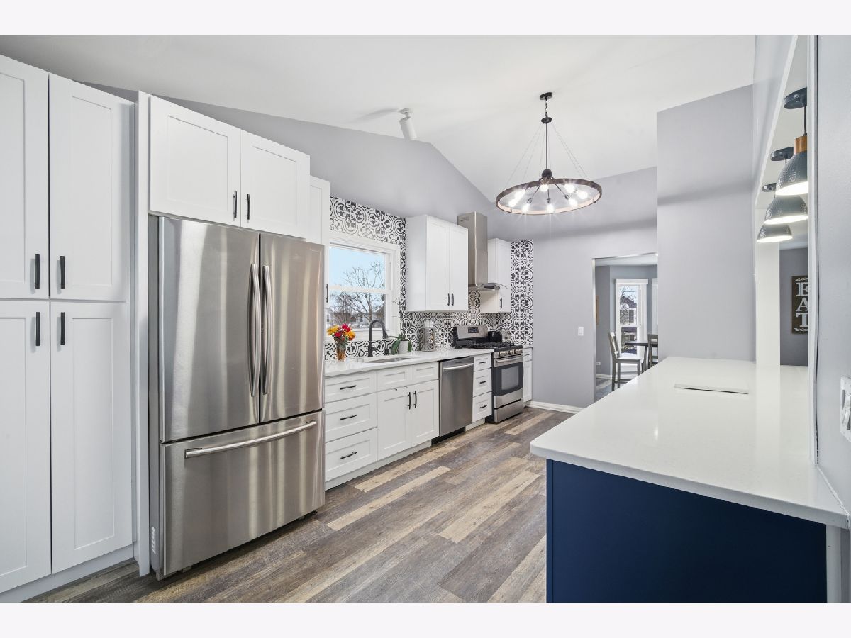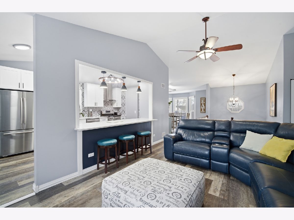 Beautifully updated 4 bedroom, 3 bath raised ranch is available now! This move-in ready home offers a fantastic layout and a large fenced yard perfect for relaxing, entertaining, or play. Step inside to find brand-new LVP flooring and fresh paint throughout the main level, creating a bright and welcoming feel. The gorgeous newly remodeled kitchen is open to the family room and boasts new cabinetry, quartz counters, stainless steel appliances, including a beverage fridge and bar stool seating. The newly remodeled bathrooms include a double sink in the master ensuite with beautiful glass enclosed shower. The main level includes 3 bedrooms and 2 full baths, plus vaulted ceilings in the family room, Kitchen and primary bedroom that add more space and natural light. The walkout lower level features a full bedroom and bath, ideal for guests, an in-law arrangement, or a private work-from-home space. Fantastic location only minutes away from shopping, coffee shops, parks, Metra Station, and more! Everything you need is here!