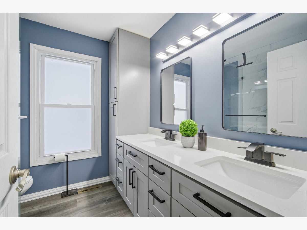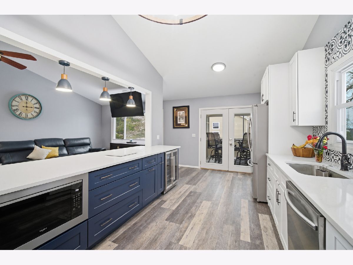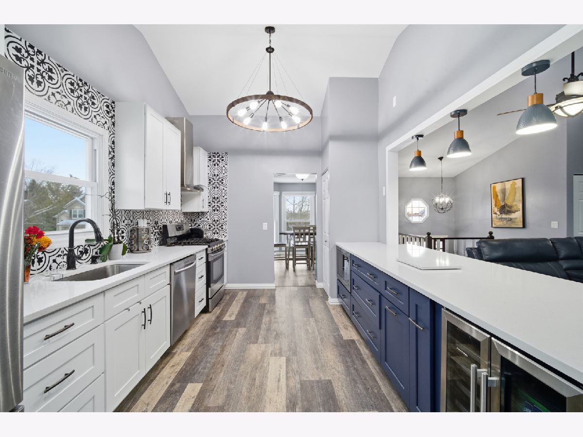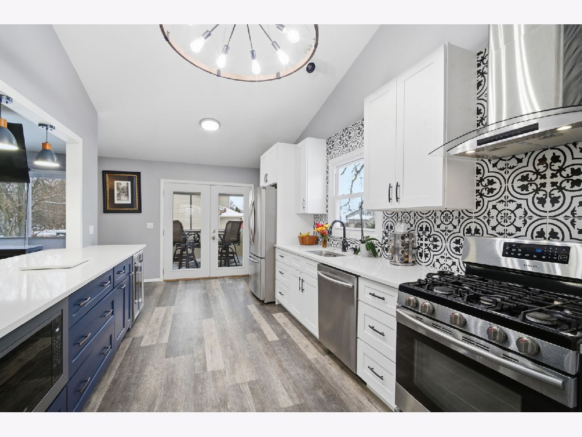 Beautifully updated 4 bedroom, 3 bath raised ranch is available now! This move-in ready home offers a fantastic layout and a large fenced yard perfect for relaxing, entertaining, or play. Step inside to find brand-new LVP flooring and fresh paint throughout the main level, creating a bright and welcoming feel. The gorgeous newly remodeled kitchen is open to the family room and boasts new cabinetry, quartz counters, stainless steel appliances, including a beverage fridge and bar stool seating. The newly remodeled bathrooms include a double sink in the master ensuite with beautiful glass enclosed shower. The main level includes 3 bedrooms and 2 full baths, plus vaulted ceilings in the family room, Kitchen and primary bedroom that add more space and natural light. The walkout lower level features a full bedroom and bath, ideal for guests, an in-law arrangement, or a private work-from-home space. Fantastic location only minutes away from shopping, coffee shops, parks, Metra Station, and more! Everything you need is here!