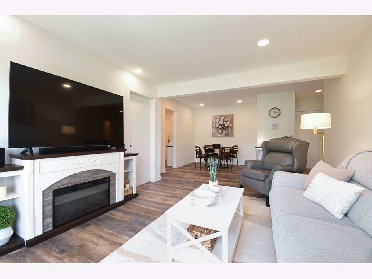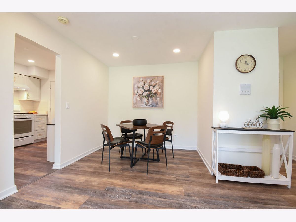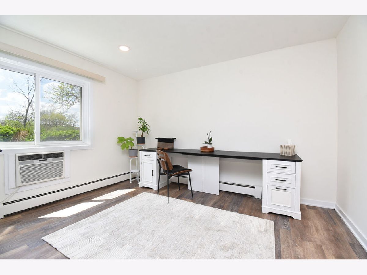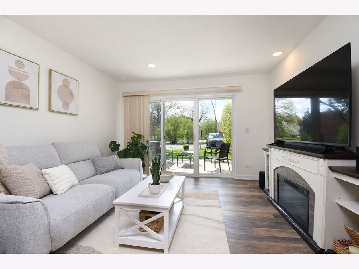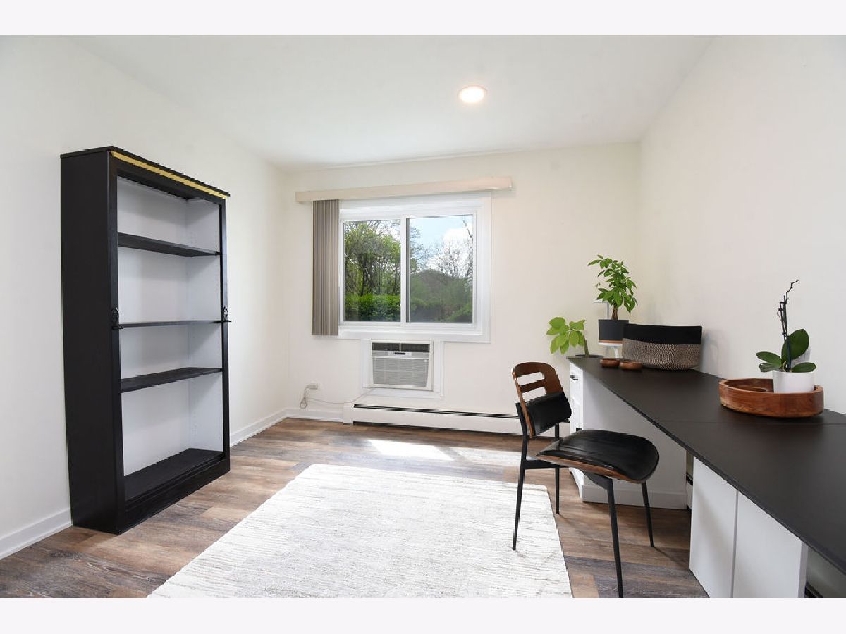 Beautifully updated 1-bedroom, 1-bath first floor Glenview condo with private office space, perfect for working from home! Kitchen and bathroom beautifully renovated in 2024 with updated appliances, flooring, kitchen cabinets, and quartz countertops. Oversized bedroom with plenty of closet space and room for extra storage. Step outside to your private patio and take advantage of the community's inviting outdoor amenities conveniently located just around the corner from your unit, including outdoor pool, basketball court, and extensive green space perfect for relaxing or entertaining. Unit includes 2 parking spaces and designated storage unit. Conveniently located near I-294, high-end shopping, scenic nature parks, and top rated schools, including Glenbrook South High School!