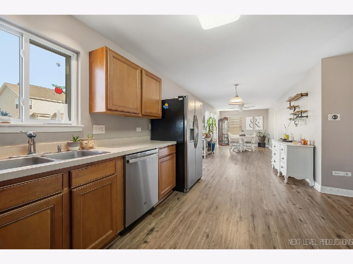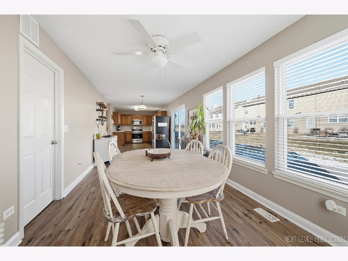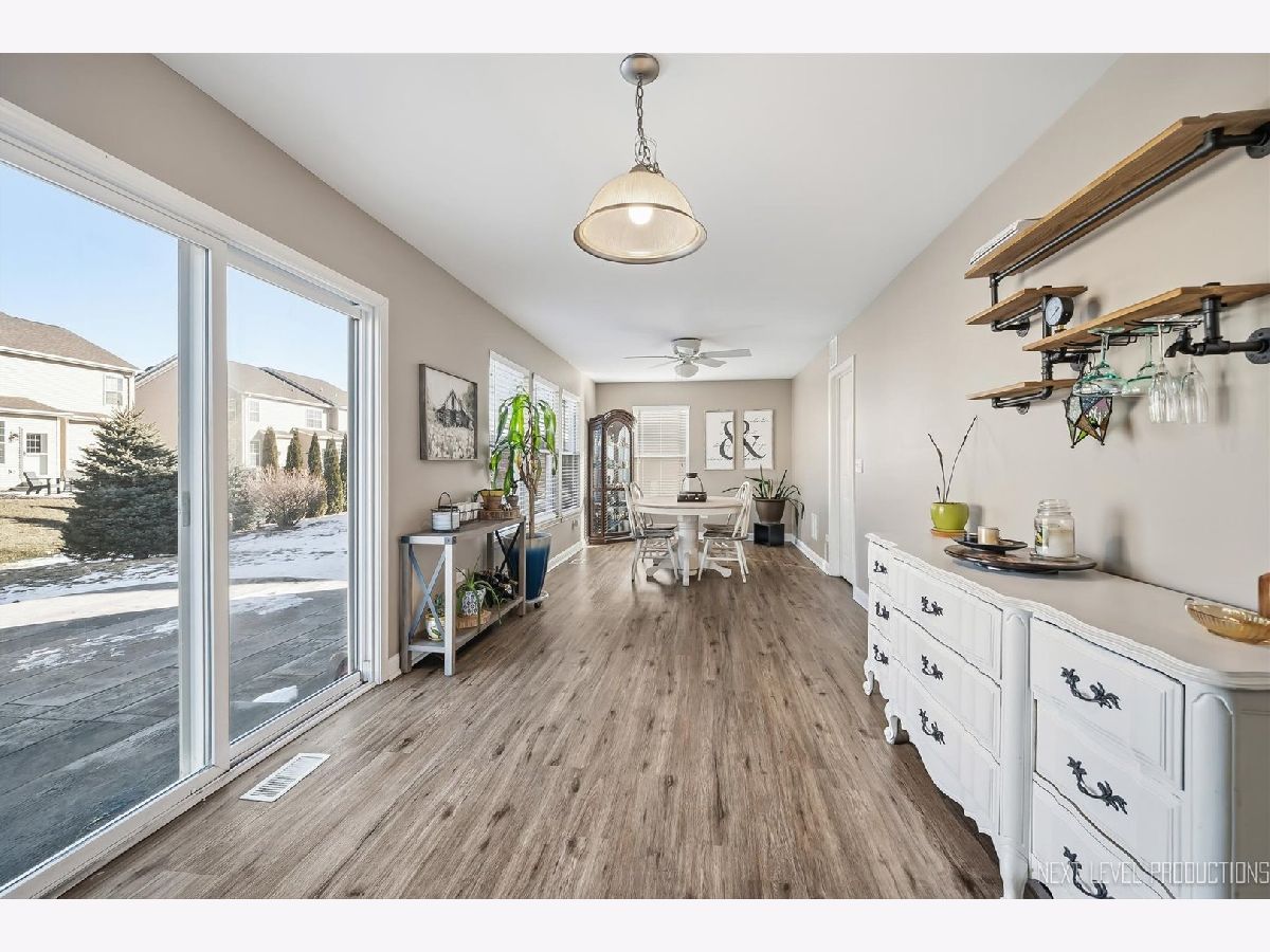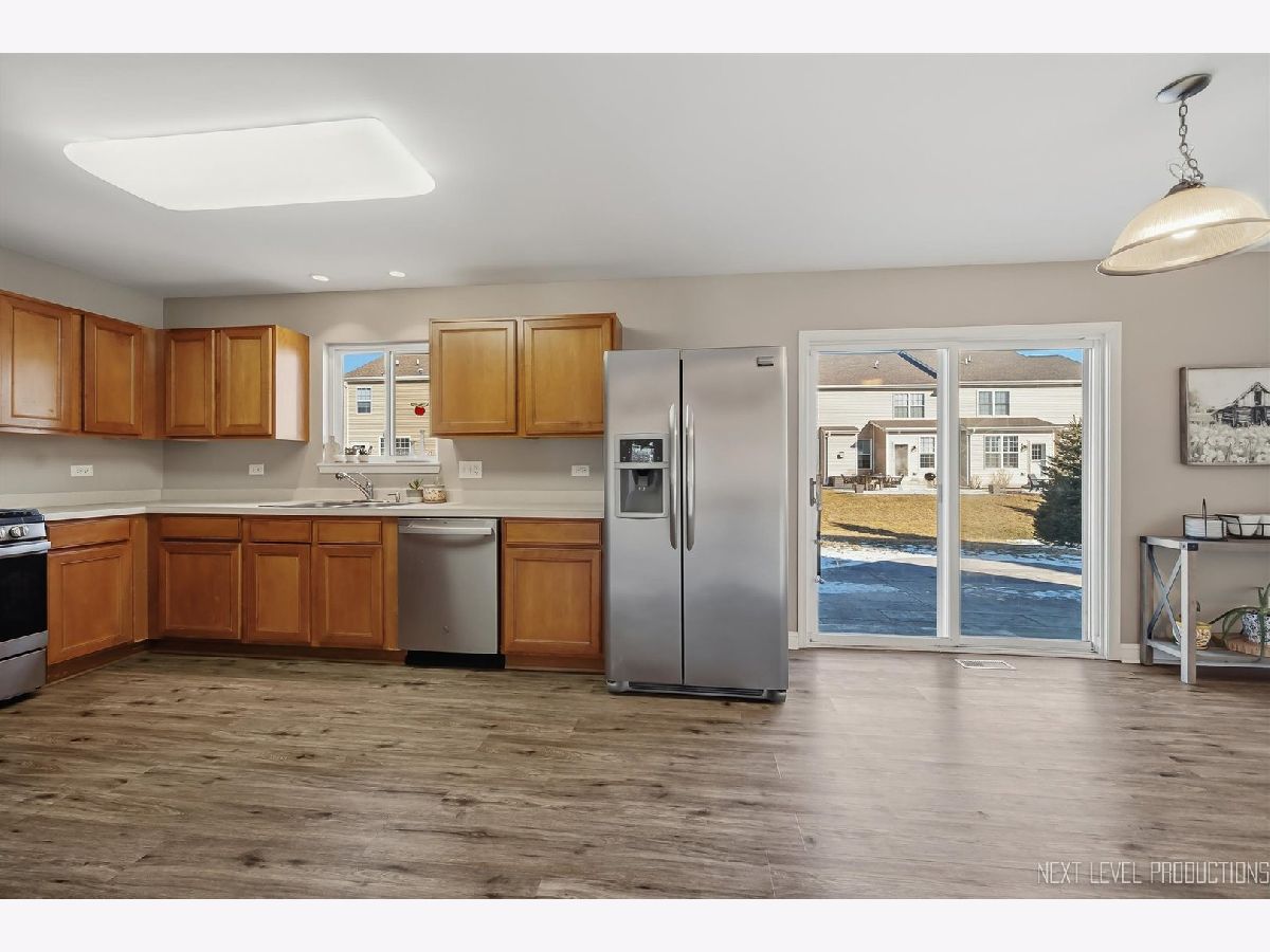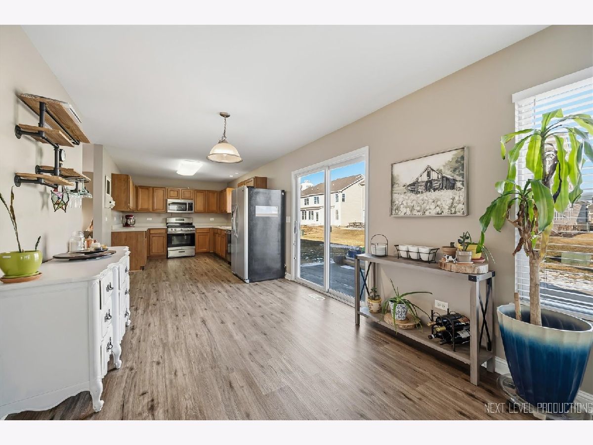 One of the best locations in Blackberry Creek! Just a few blocks from Kaneland Blackberry Creek Elementary School and across the street from open space! You will love the versatile open floor plan with great room (living/dining room combination), stunning luxury vinyl floors, and spacious room sizes! The living/dining room combination leads back to the eat-in kitchen and family room. The kitchen has maple cabinetry, stainless steel appliances and a sliding glass door that leads out to a gorgeous stamped concrete patio! The family room has plenty of windows that let in so much light! The main floor laundry room is off the kitchen and has shelves, washer/dryer and access to garage. The upstairs features a versatile 16x13 bonus room loft with walk-in closet. The primary suite boasts the same beautiful flooring as main level and has a big walk-in closet and private bath with shiplap wall, dual sink vanity, storage vanity and shower/tub combo. The 2 secondary bedrooms both have walk-in closets. The full hall bath offers a shower/tub combo too. Two car attached garage. Nice size lot with stamped concrete patio overlooking deep yard. Close to pond and park and minutes from the Metra Train!