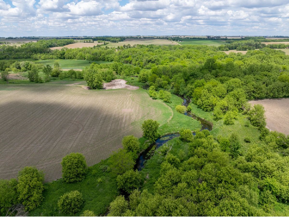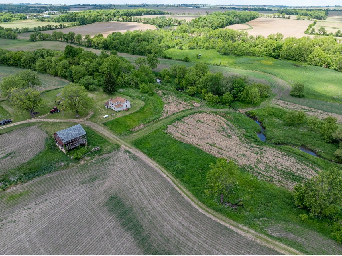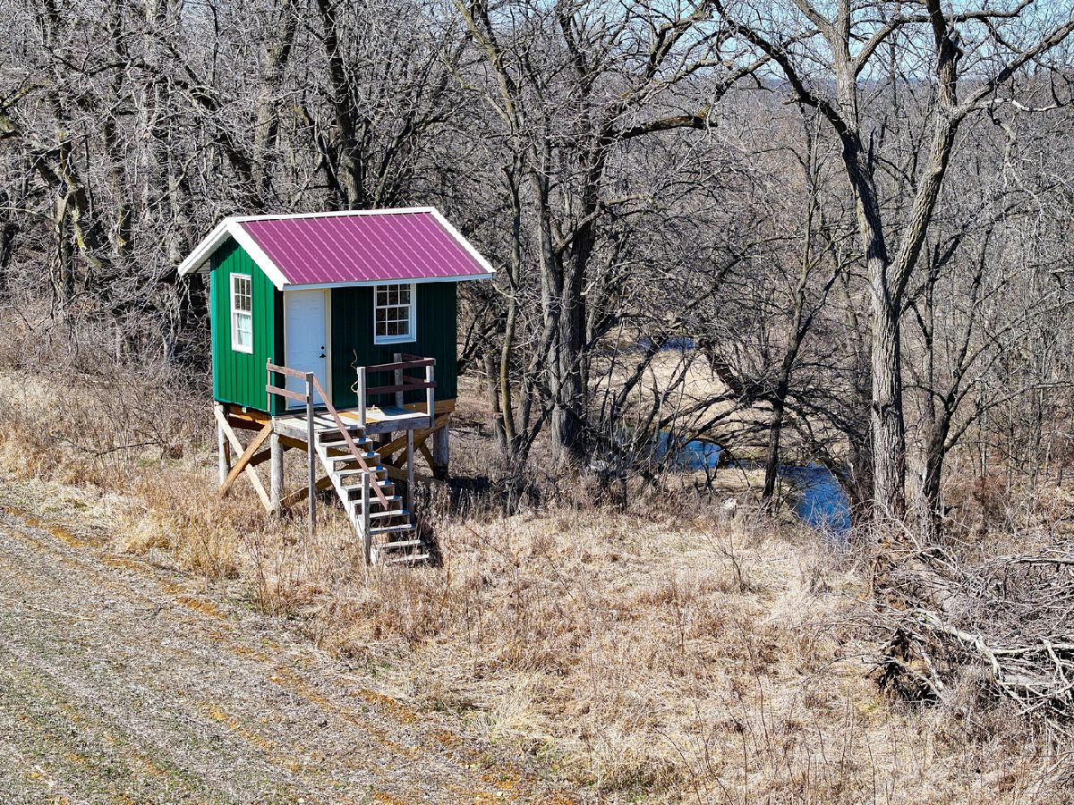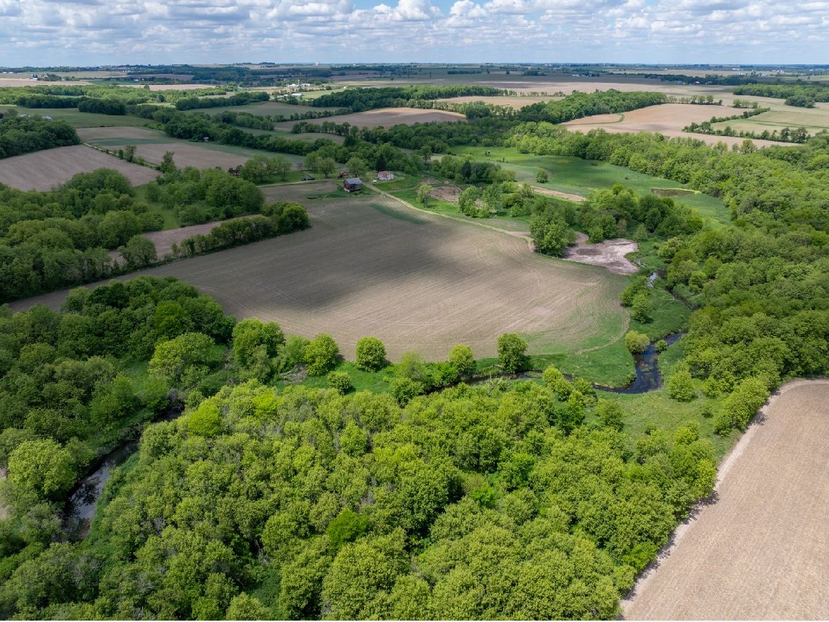 Located over a half mile off the road this property provides privacy and versatility with crop ground, timber, creek, house, and outbuilding. As you come down the gravel drive the road takes you by rolling hills with timber and ag fields leading you to the hunting cabin sitting on the ridge. The 36 x 54 outbuilding has a concrete floor, power, and an overhead door perfect for storage of UTV's, tractors, and gear. The rustic home has good bones and perfect space for a weekend away. The main floor has a good-sized kitchen that flows into the family room. Two good-sized bedrooms and a full bathroom/laundry room. Upstairs there is more room for guests with a loft and two more bedrooms. The property is the perfect mix for all types of recreation plus the farm ground gives a rare opportunity for a stable income stream. Multiple branches of the Mud Creek converge on this property with no shortage of water and crossings. The west side of the property has a large tillable field on the top side of the ridge with a corner that has an open area with potential for habitat improvement. Sitting up on the ridge is a newly built blind that allows for hunting opportunities on the ag field coming off the timber to the south as well as a vantage point to the lower ag fields to the north, a perfect spot just down from the house to slip into with young hunters. The lane coming off the building area takes you to the heart of the farm. The east provides areas prime for food plots and additional blind locations off of the large ag field. As you travel through Mud Creek to the north you have access to the tillable on the western side of the property as well as the prairie and wetland areas. The interior of this property has great potential for additional whitetail or waterfowl improvements. Continuing along the trails you have a good stand of timber on the north and eastern sections of the farm with multiple stand locations. The southern ag field is cradled in between the timber and creek on the eastern side of the property giving it a great appeal for food plots and habitat improvements. Surrounded by timber and agriculture there is no doubt that the strong history of deer and turkey hunting will continue. The 35 acres of tillable ground being farmed could be converted into food plots and habitat or the owner would rent it giving you a built-in tenant. Whether you're looking for a hunting cabin, a weekend getaway, or a perfect building site this property has something for everyone.