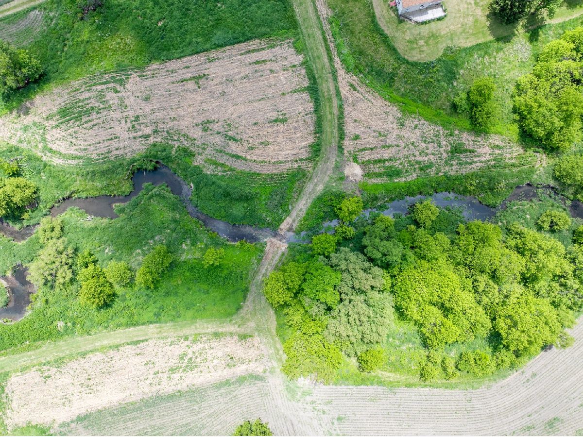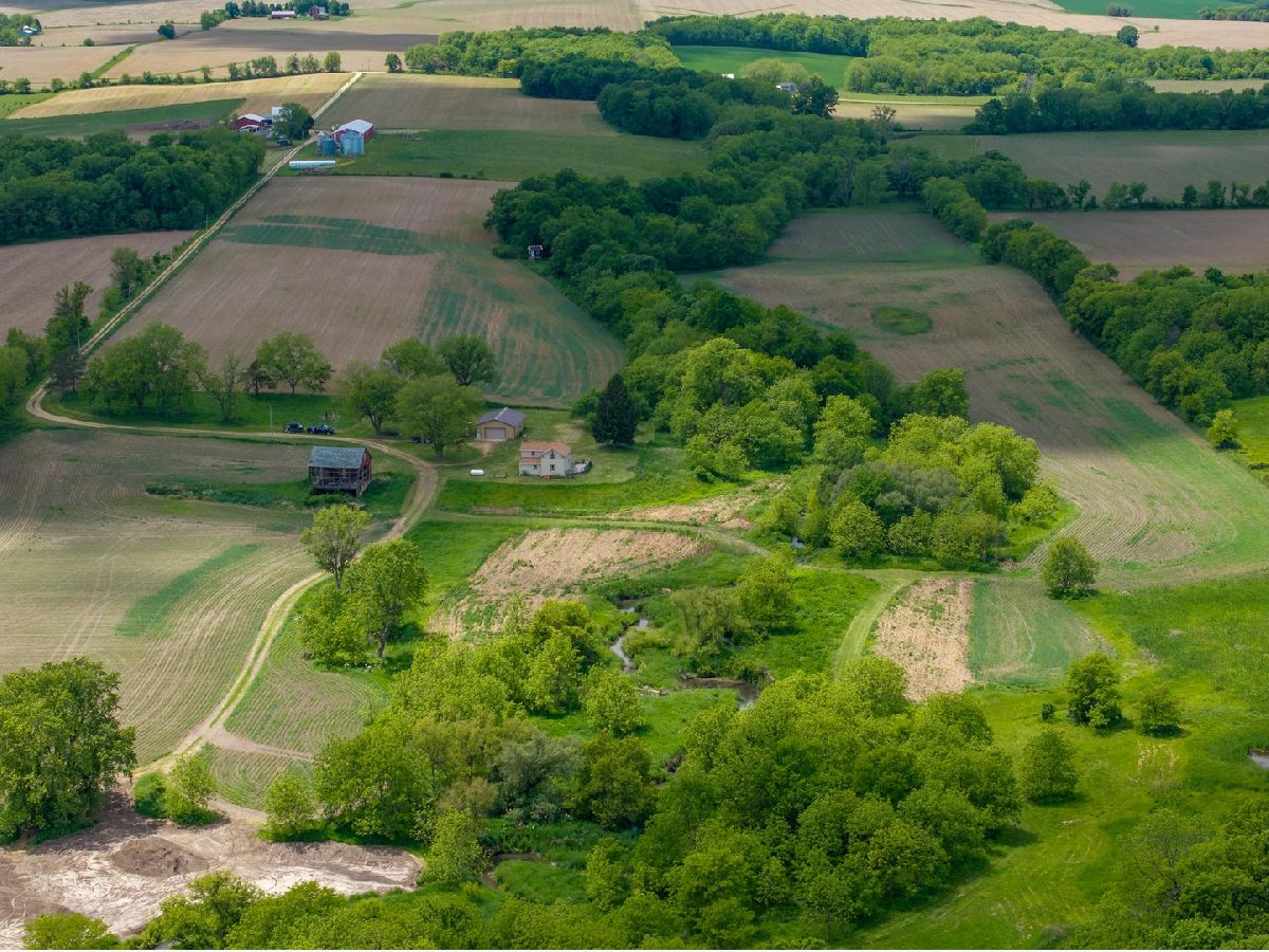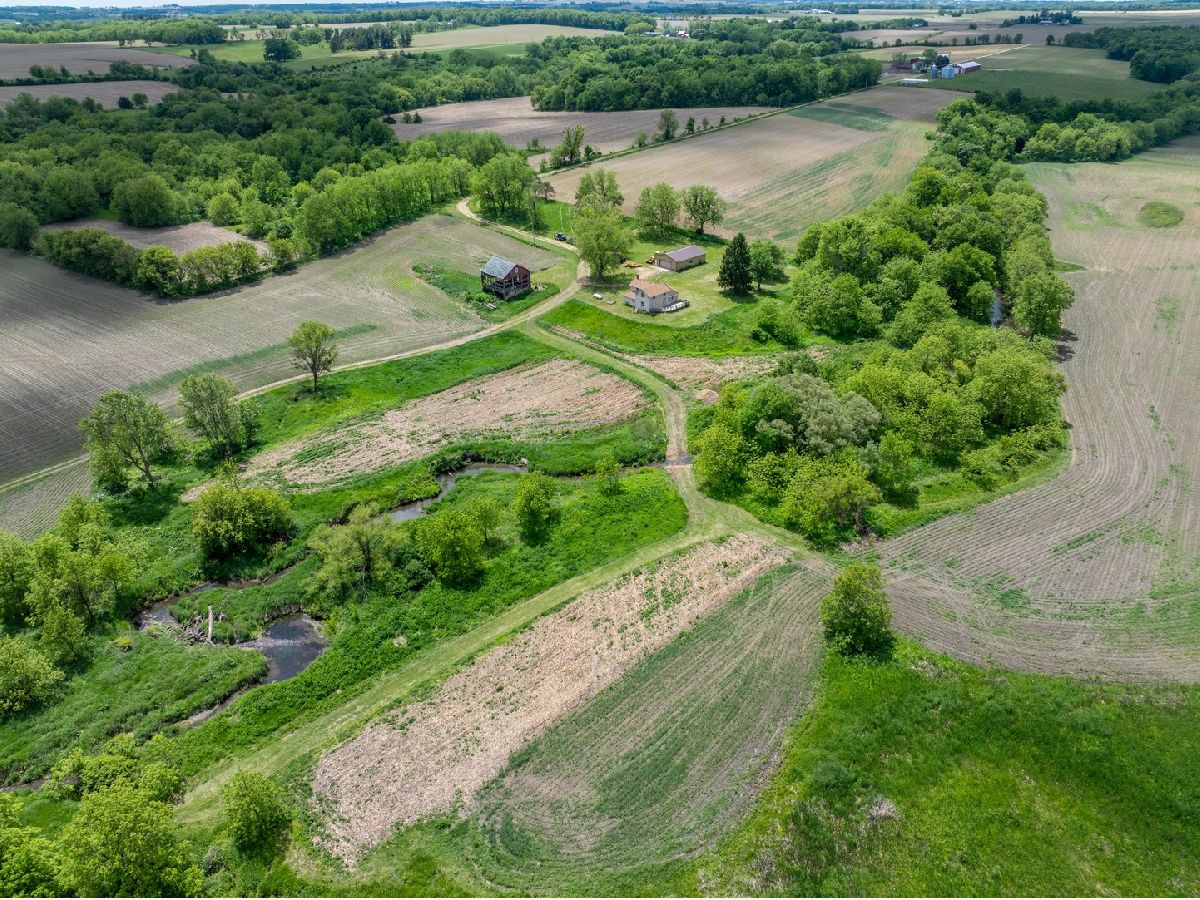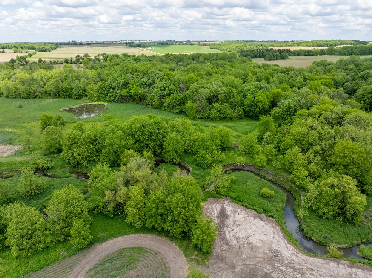Located over a half mile off the road this property provides privacy and versatility with crop ground, timber, creek, house, and outbuilding. As you come down the gravel drive the road takes you by rolling hills with timber and ag fields leading you to the hunting cabin sitting on the ridge. The 36 x 54 outbuilding has a concrete floor, power, and an overhead door perfect for storage of UTV's, tractors, and gear. The rustic home has good bones and perfect space for a weekend away. The main floor has a good-sized kitchen that flows into the family room. Two good-sized bedrooms and a full bathroom/laundry room. Upstairs there is more room for guests with a loft and two more bedrooms. The property is the perfect mix for all types of recreation plus the farm ground gives a rare opportunity for a stable income stream. Multiple branches of the Mud Creek converge on this property with no shortage of water and crossings. The west side of the property has a large tillable field on the top side of the ridge with a corner that has an open area with potential for habitat improvement. Sitting up on the ridge is a newly built blind that allows for hunting opportunities on the ag field coming off the timber to the south as well as a vantage point to the lower ag fields to the north, a perfect spot just down from the house to slip into with young hunters. The lane coming off the building area takes you to the heart of the farm. The east provides areas prime for food plots and additional blind locations off of the large ag field. As you travel through Mud Creek to the north you have access to the tillable on the western side of the property as well as the prairie and wetland areas. The interior of this property has great potential for additional whitetail or waterfowl improvements. Continuing along the trails you have a good stand of timber on the north and eastern sections of the farm with multiple stand locations. The southern ag field is cradled in between the timber and creek on the eastern side of the property giving it a great appeal for food plots and habitat improvements. Surrounded by timber and agriculture there is no doubt that the strong history of deer and turkey hunting will continue. The 35 acres of tillable ground being farmed could be converted into food plots and habitat or the owner would rent it giving you a built-in tenant. Whether you're looking for a hunting cabin, a weekend getaway, or a perfect building site this property has something for everyone.